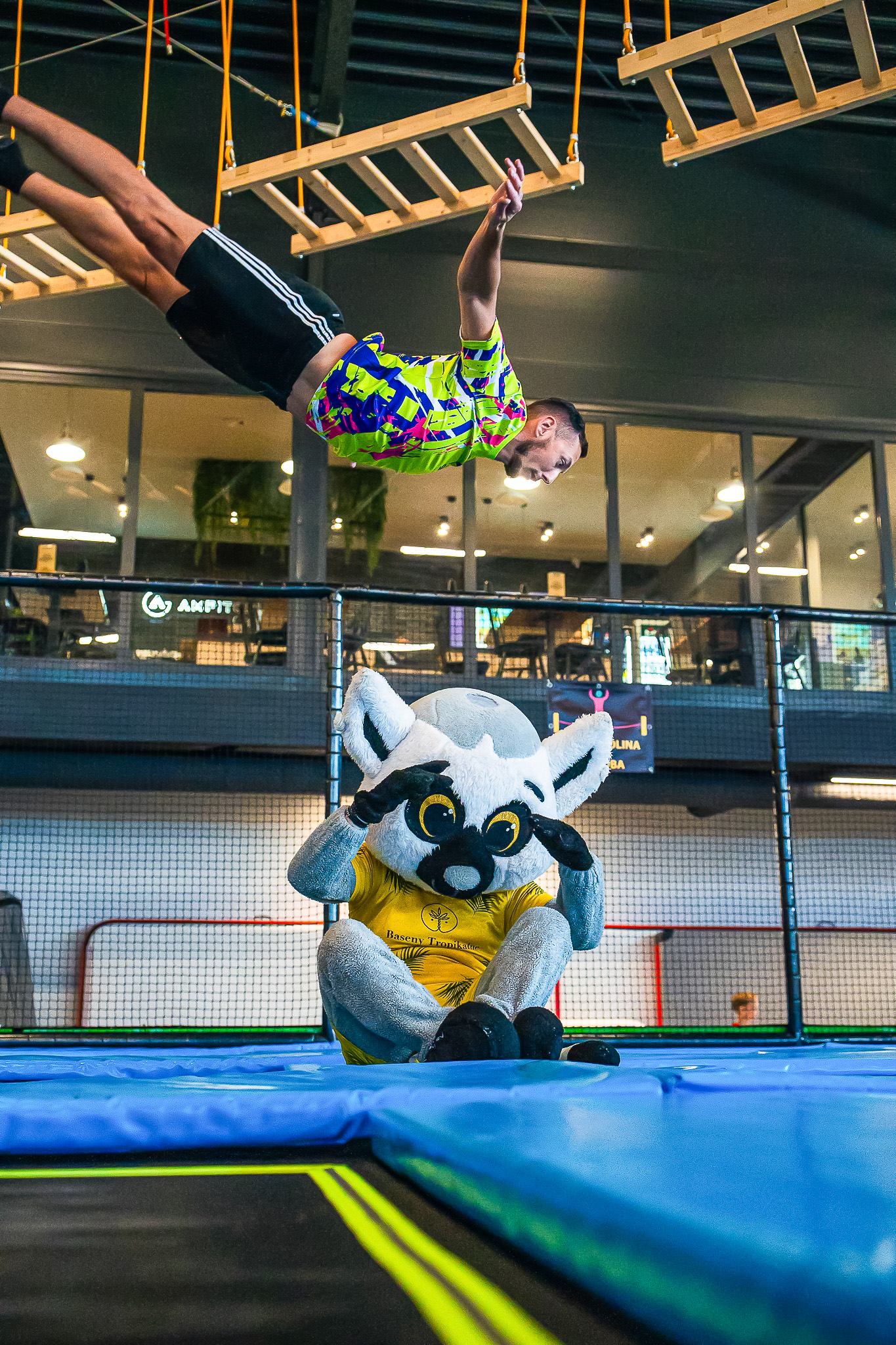 Park Rozrywki FlySky w swojej ofercie oprócz dobrej zabawy proponuje dzieciom oraz młodzieży zajęcia sportowe z akrobatyki oraz freestyle akro. Akrobatyka to dynamiczna dziedzina sportu, która łączy siłę, zręczność i precyzję ruchu. Wymaga od uczestników nie tylko doskonałej kondycji fizycznej, ale także koordynacji i kontroli nad ciałem. Akrobaci wykonują skomplikowane ewolucje powietrzne, takie jak salta, piruety czy skoki, które zachwycają zarówno publiczność, jak i samych uczestników. Freestyle akro to zajęcia dla dzieci i młodzieży, które poprawiają siłę, wytrzymałość, kondycję, koordynację oraz gibkość. Wszystko to dzięki połączeniu różnego rodzaju nurtów ruchowych, takich jak: tricking, parkour, freerunning, akrobatyka czy nawet sztuki walki.