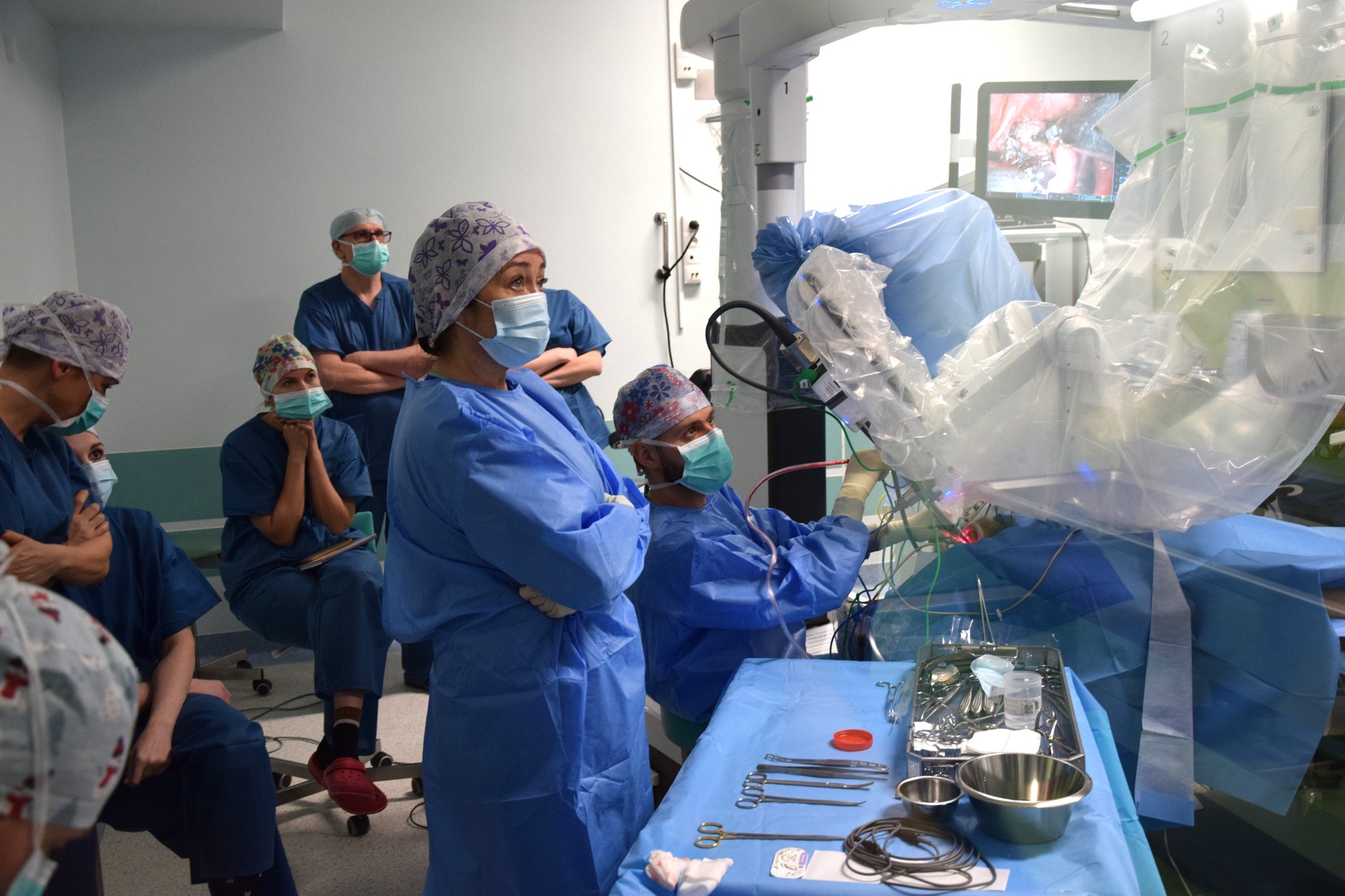 – Czuję się bardzo wyróżniony, bo mimo, że operujemy robotycznie dopiero od półtora roku, w listopadzie 2025 r. podpisałem umowę z firmą Synektik na proktoring, czyli uczenie i wprowadzanie nowych zespołów robotycznych w chirurgii głowy i szyi. Tym samym Klinika Otolaryngologii, Chirurgii Głowy i Szyi jest pierwszym w Polsce ośrodkiem uczącym chirurgii robotycznej w obszarze głowy i szyi. Do tej pory wszyscy musieliśmy jeździć za granicę, bo nie było polskiego ośrodka z uprawnieniami do uczenia innych – mówi dr Okła.