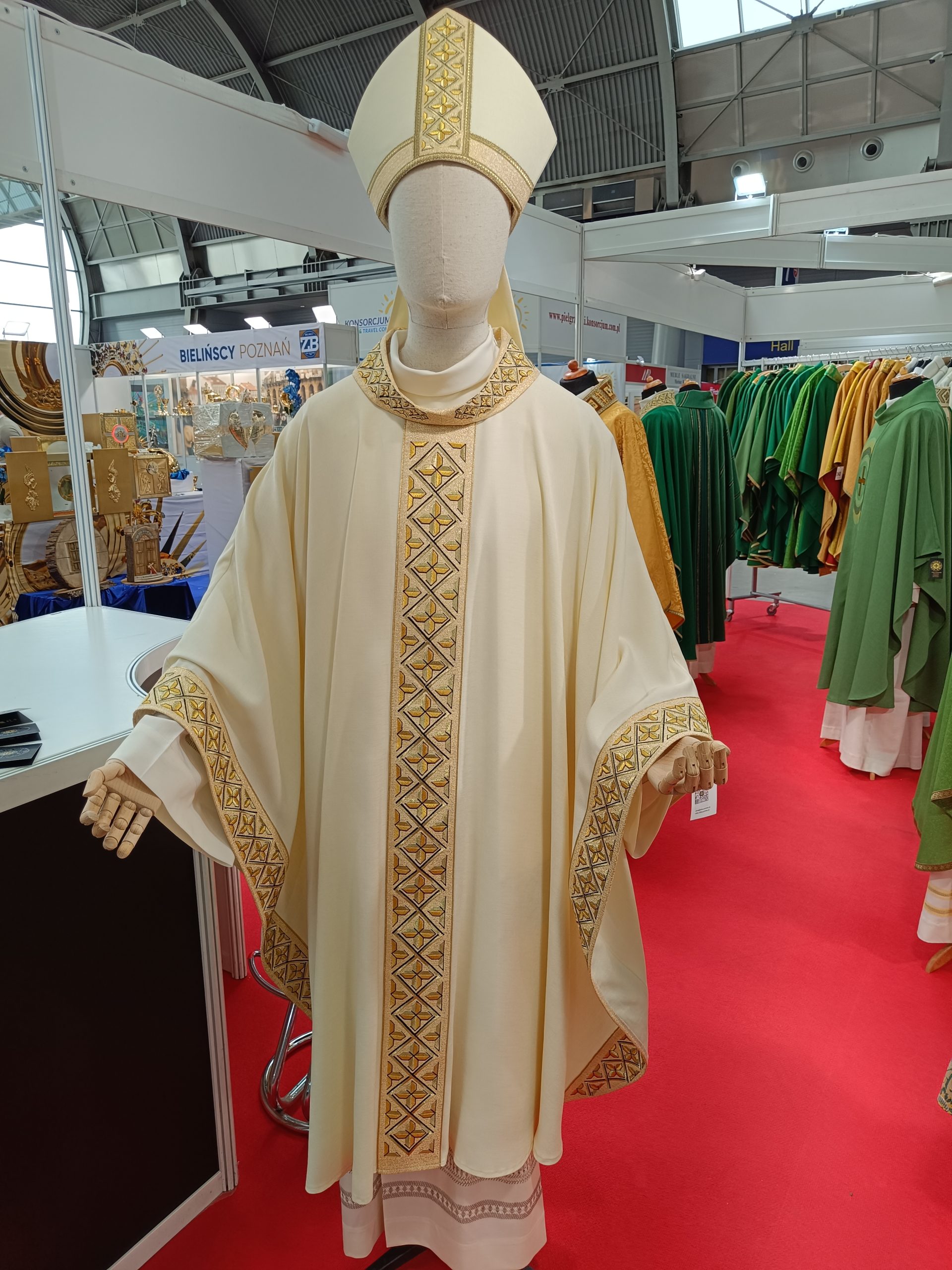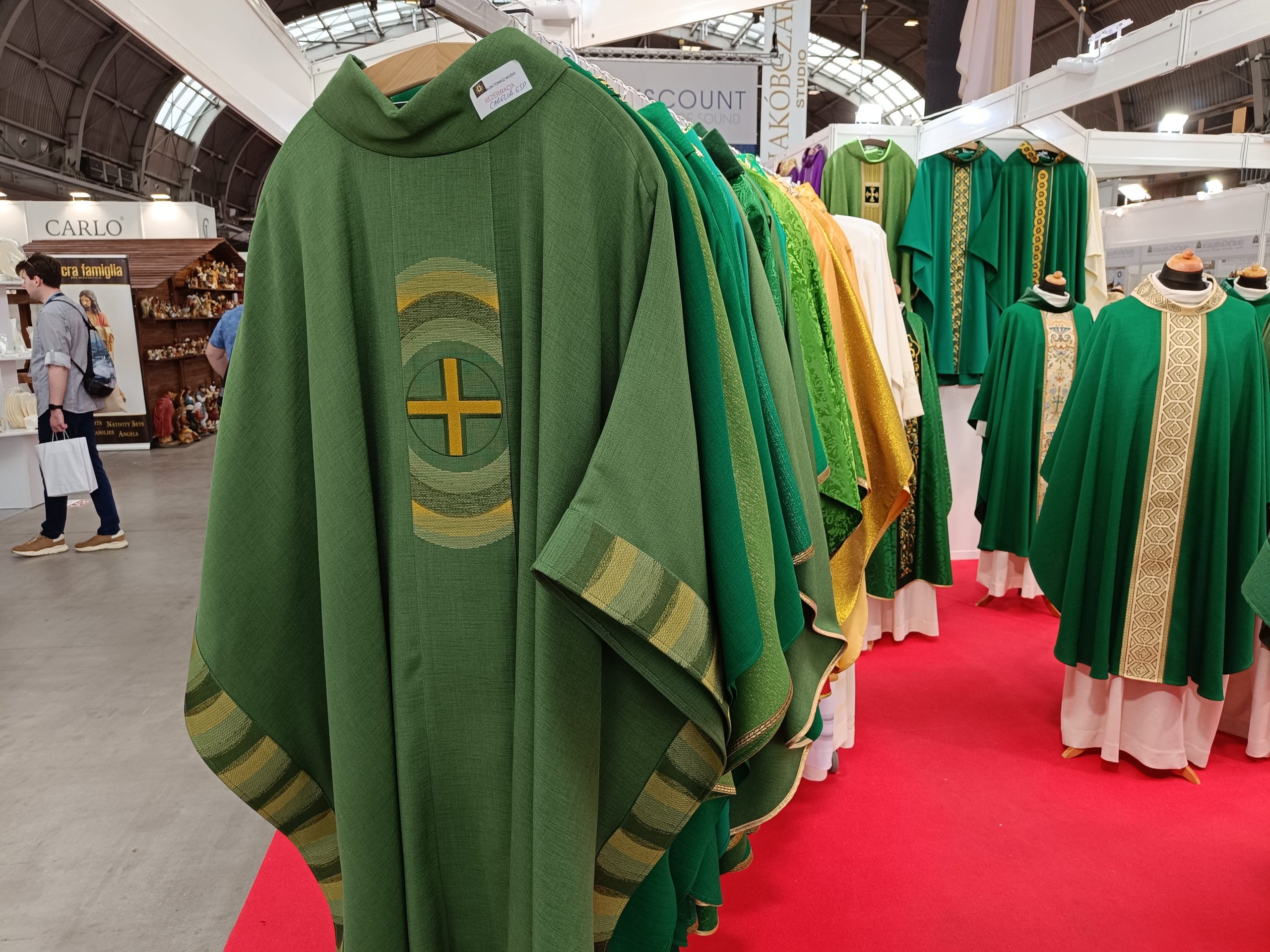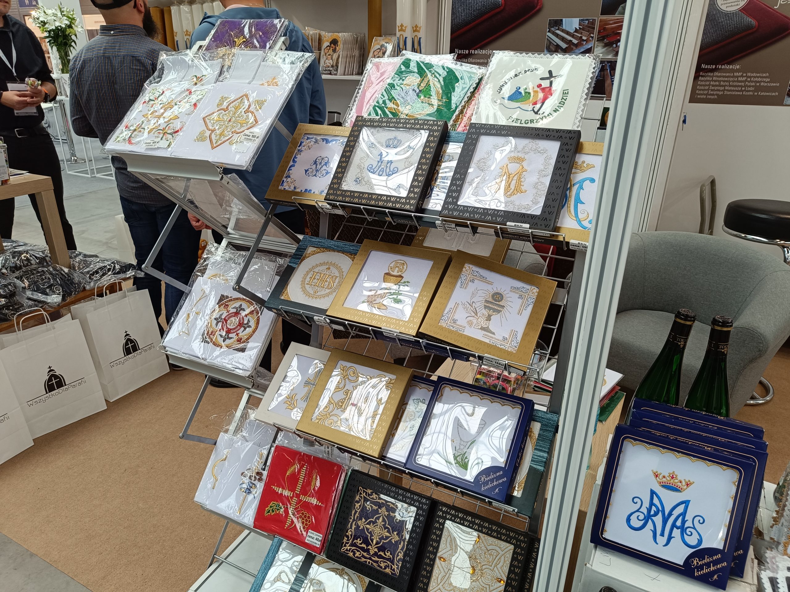 Firma „Alba – Tomasz Woźny” oferuje szeroko pojęte szaty liturgiczne. – Na pierwszym miejscu wybijają się ornaty, kapy, alby, komże, stuły. To jest to, co mamy na targach. Oprócz tego w naszej ofercie są inne artykuły liturgiczne, których nie przywieźliśmy ze sobą ze względu na ograniczone miejsce. Prowadzimy sprzedaż na miejscu, u nas w firmie, a także wysyłkową w kraju i poza nim. Naszymi odbiorcami są parafie, księża, szeroko pojęci odbiorcy indywidualni, a także sklepy, hurtownie – wymienia Andrzej Woźny, współwłaściciel.