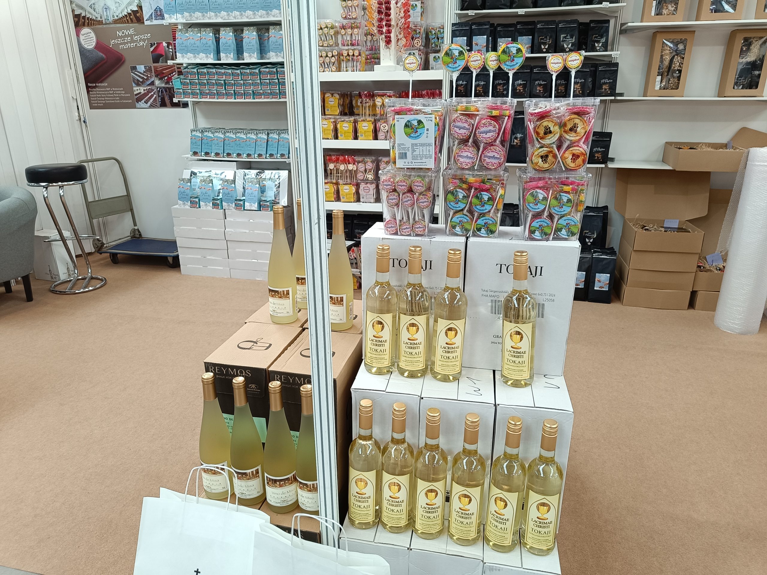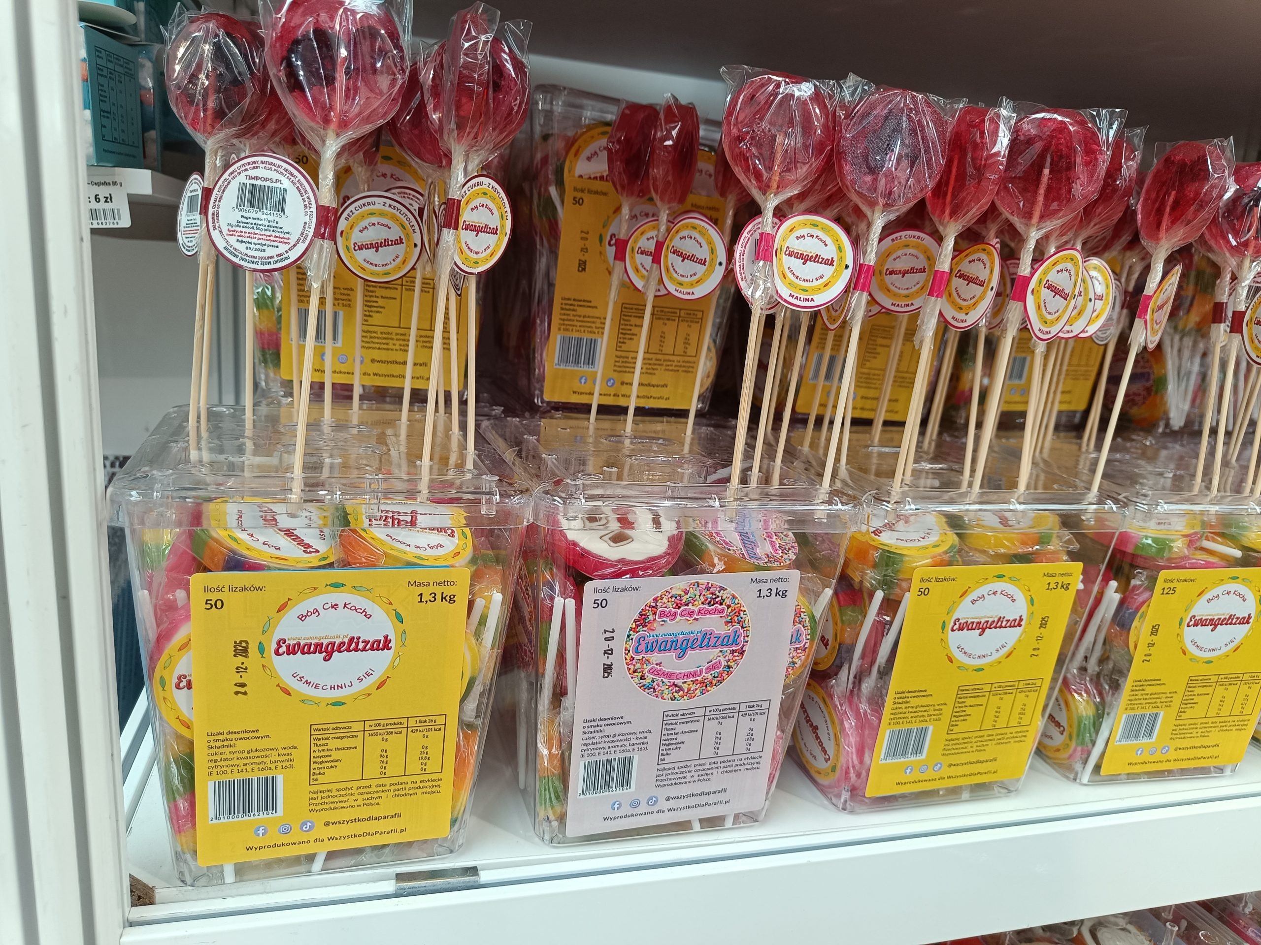 Przyznaje jednocześnie, że już sama nazwa firmy wiele mówi o ofercie. – Mamy opłatki, wino mszalne, komunikanty, po robienie nagłośnienia na Papui-Nowej Gwinei u mojego przyjaciela, który jest tam misjonarzem. Robimy mnóstwo fajnych rzeczy. Są kawy, krówki, naczynia liturgiczne, mnóstwo różnych fajnych rzeczy. Są bezcukrowe Ewangelizaki, słodzone ksylitolem  – dodaje Tomasz Wróbel.