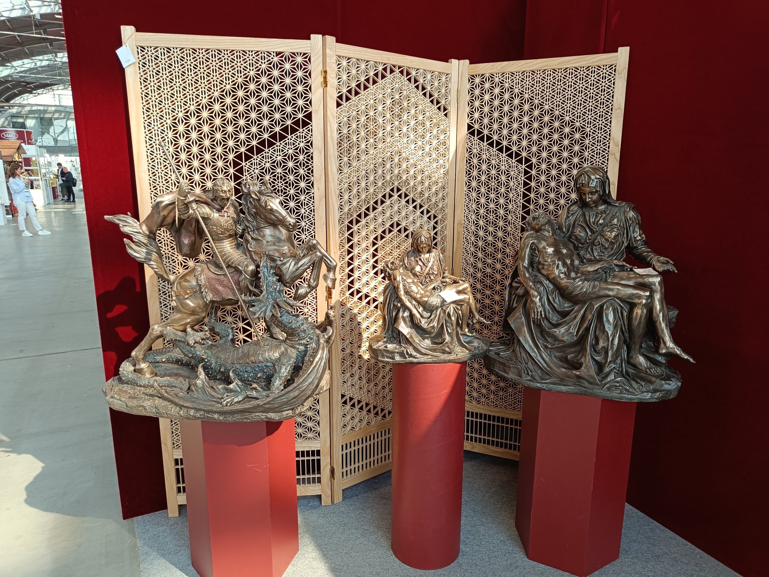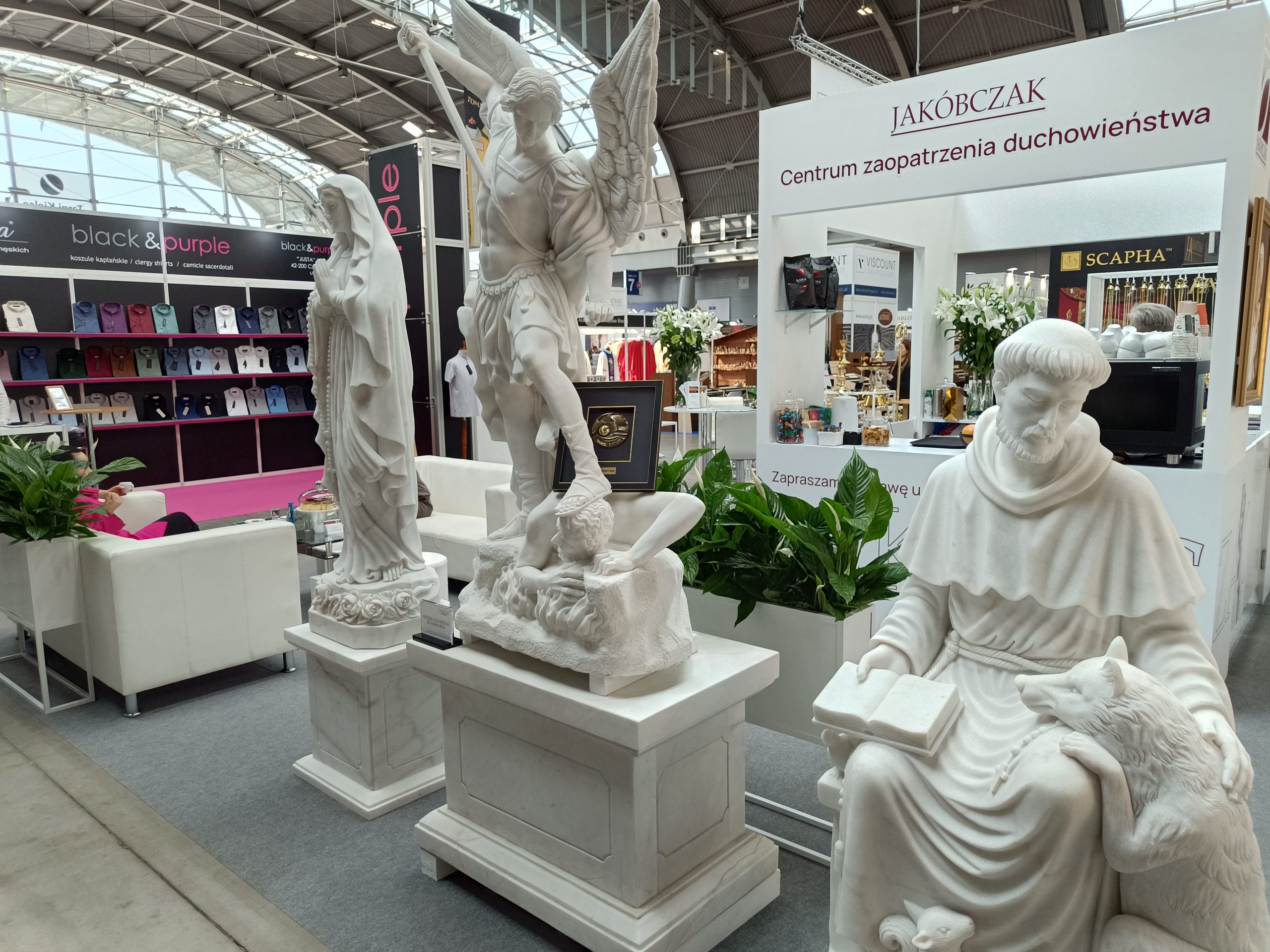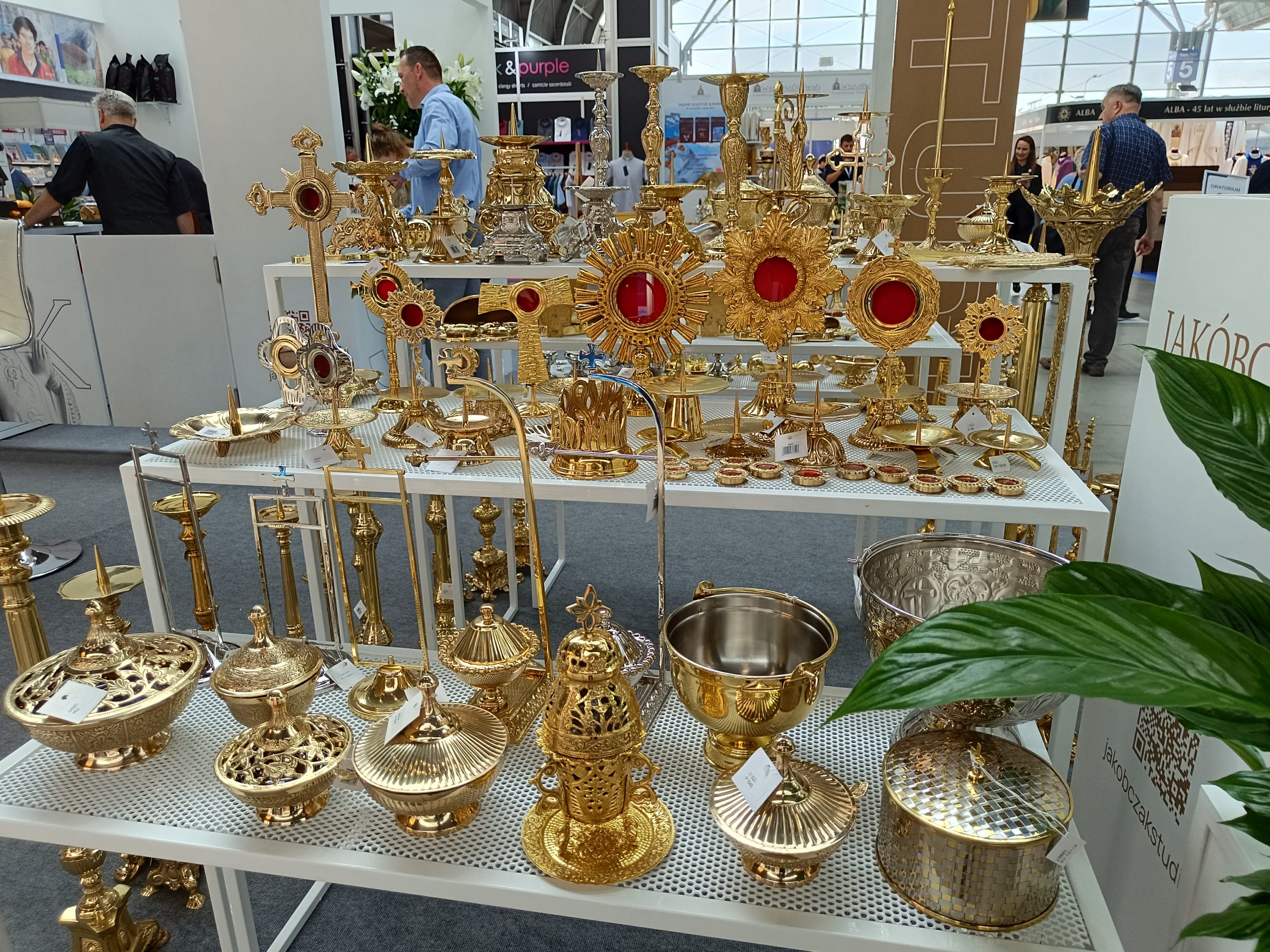 Szerokie spektrum produktów o tematyce religijnej dostarcza też Jakóbczak Studio. Są więc m.in. mosiężne wyroby liturgiczne. – Trybularze, kadzielniczki. Mamy także figury marmurowe, indywidualne projekty. Figurki żywiczne. Różańce, również z indywidualnymi projektami, jeśli chodzi o wklejki. Breloki, na przykład z św. Krzysztofem. Mnóstwo różnych rzeczy – przekazuje Janusz Pietek z Jakóbczak Studio