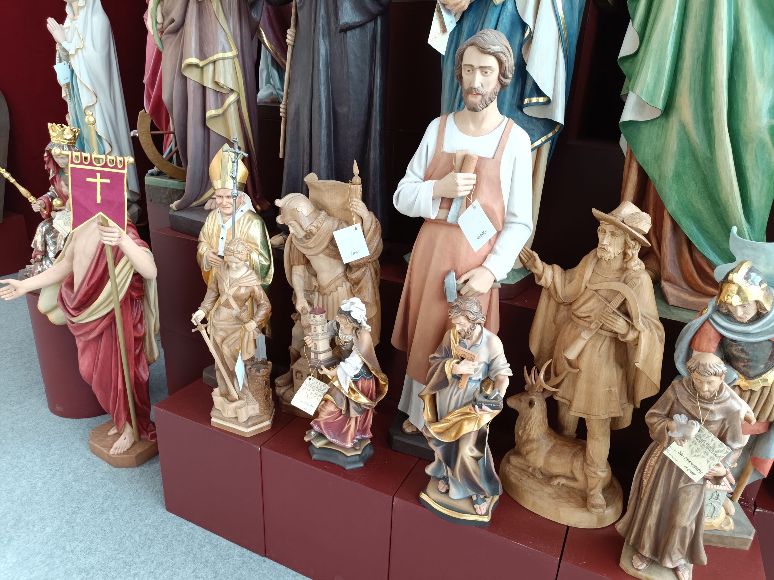 Andrzej Burkot – Pracownica Snycerska” zajmuje się od ponad 30 lat rzeźbą sakralną. Wykonywane są figury w drewnie lipowym, o różnych rozmiarach. – Ceny zależą czasem nie od wielkości figury, co od poziomu skomplikowania. Może to być prosta rzeźba św. Józefa, a może to być figura, gdzie są na przykład dwie postacie, Józef z dzieciątkiem. Ewentualnie z bardzo skomplikowanymi szatami, z elementami złoceń. Wyceniamy więc indywidualnie, ale powiedzmy, że ceny zaczynają się od około 10 tysięcy złotych – mówi Krzysztof Stasiak.