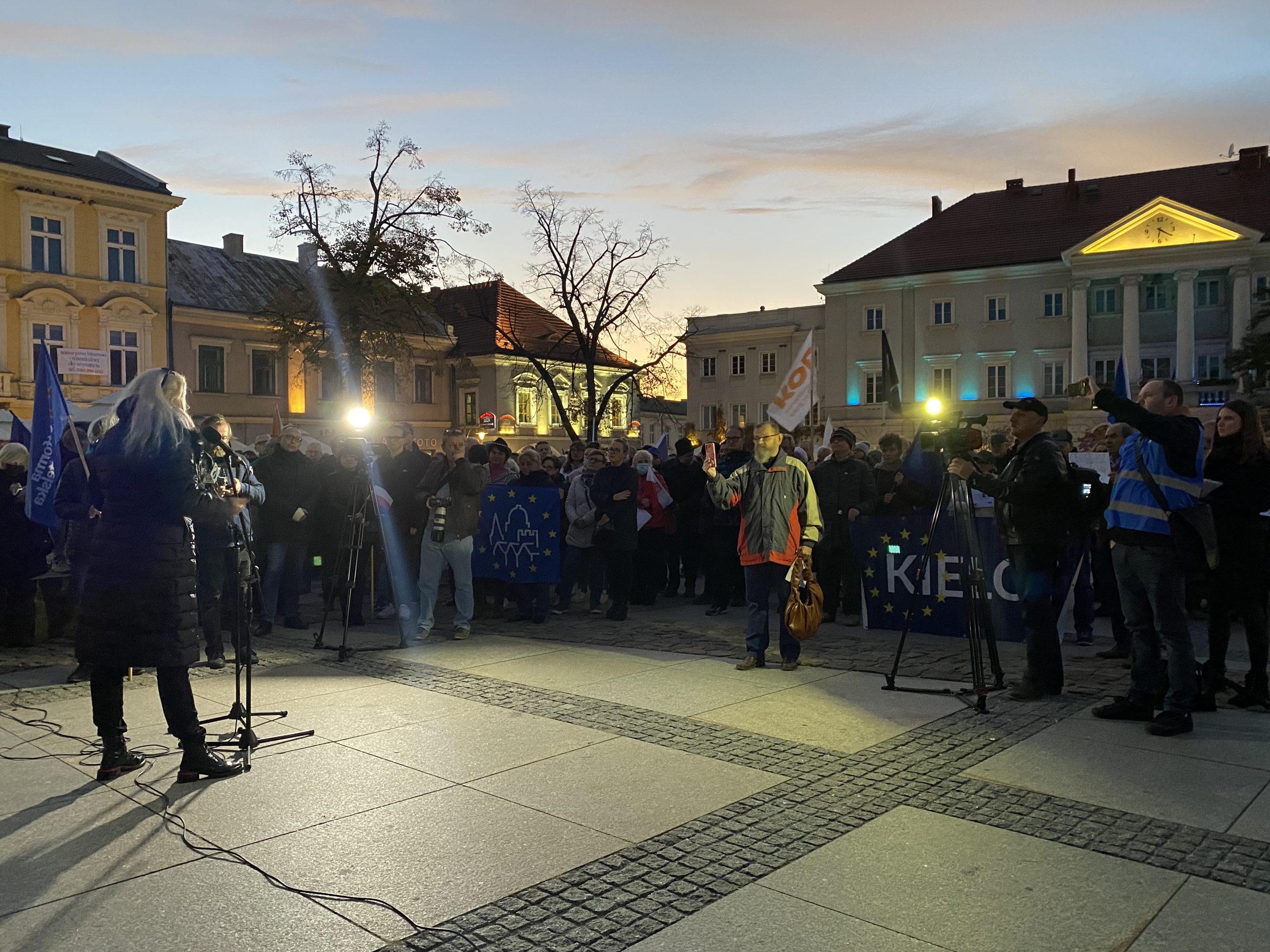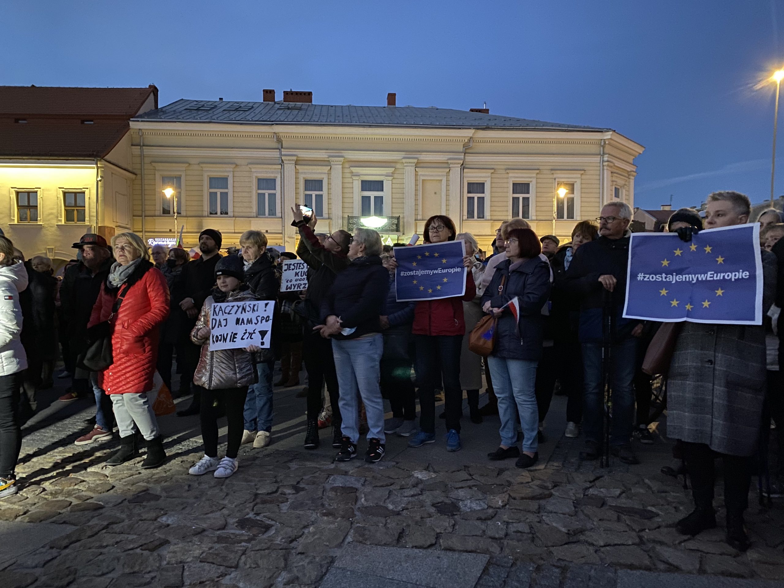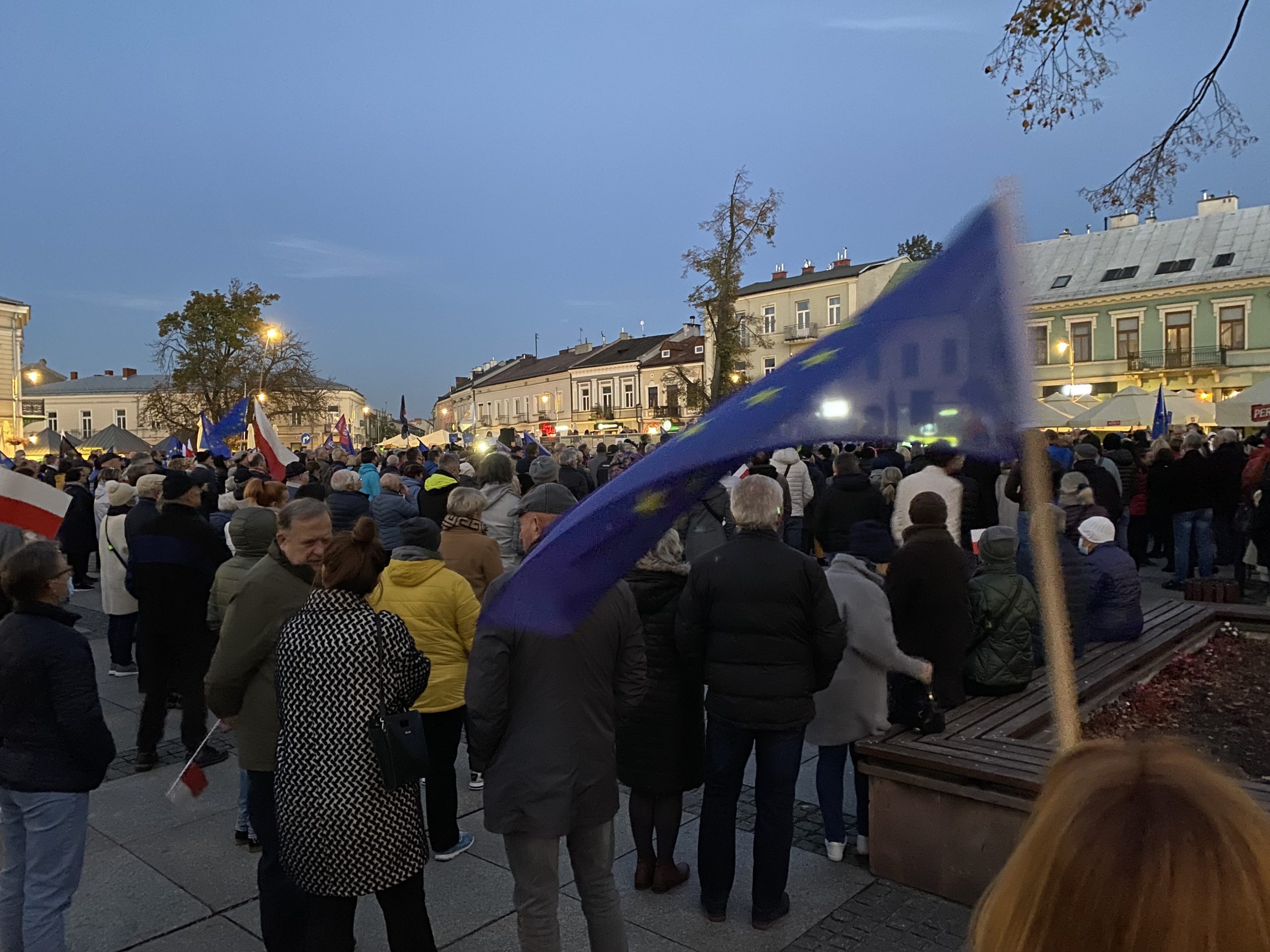 Około tysiąc osób wzięło udział w demonstracji pod hasłem „My zostajemy w UE, rząd wychodzi” na kieleckim Rynku. Wśród protestujących byli działacze partii opozycyjnych: Adam Jarubas, Artur Gierada, Agata Wojda, Marcin Chłodnicki oraz prezydent Kielc, Bogdan Wenta.  Protesty mają związek z ostatnim wyrokiem Trybunału Konstytucyjnego, który orzekł, że polski rząd nie musi respektować unijnych przepisów, uznając wyższość prawa krajowego.