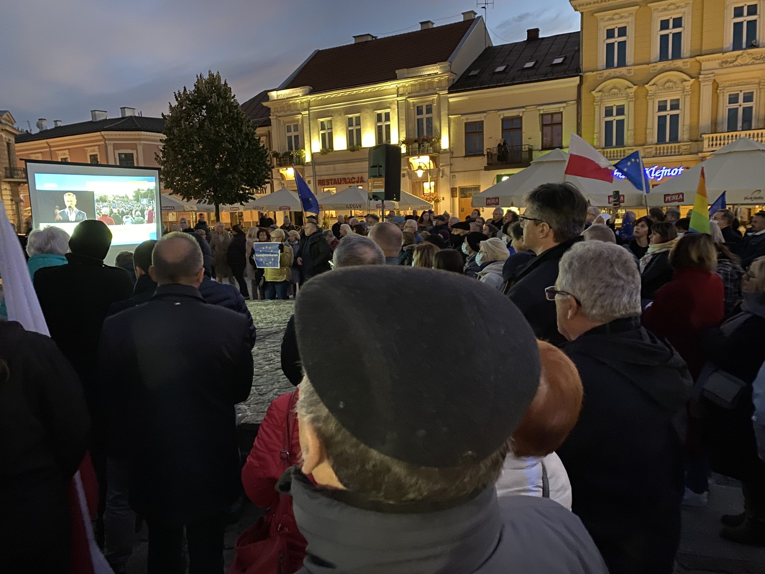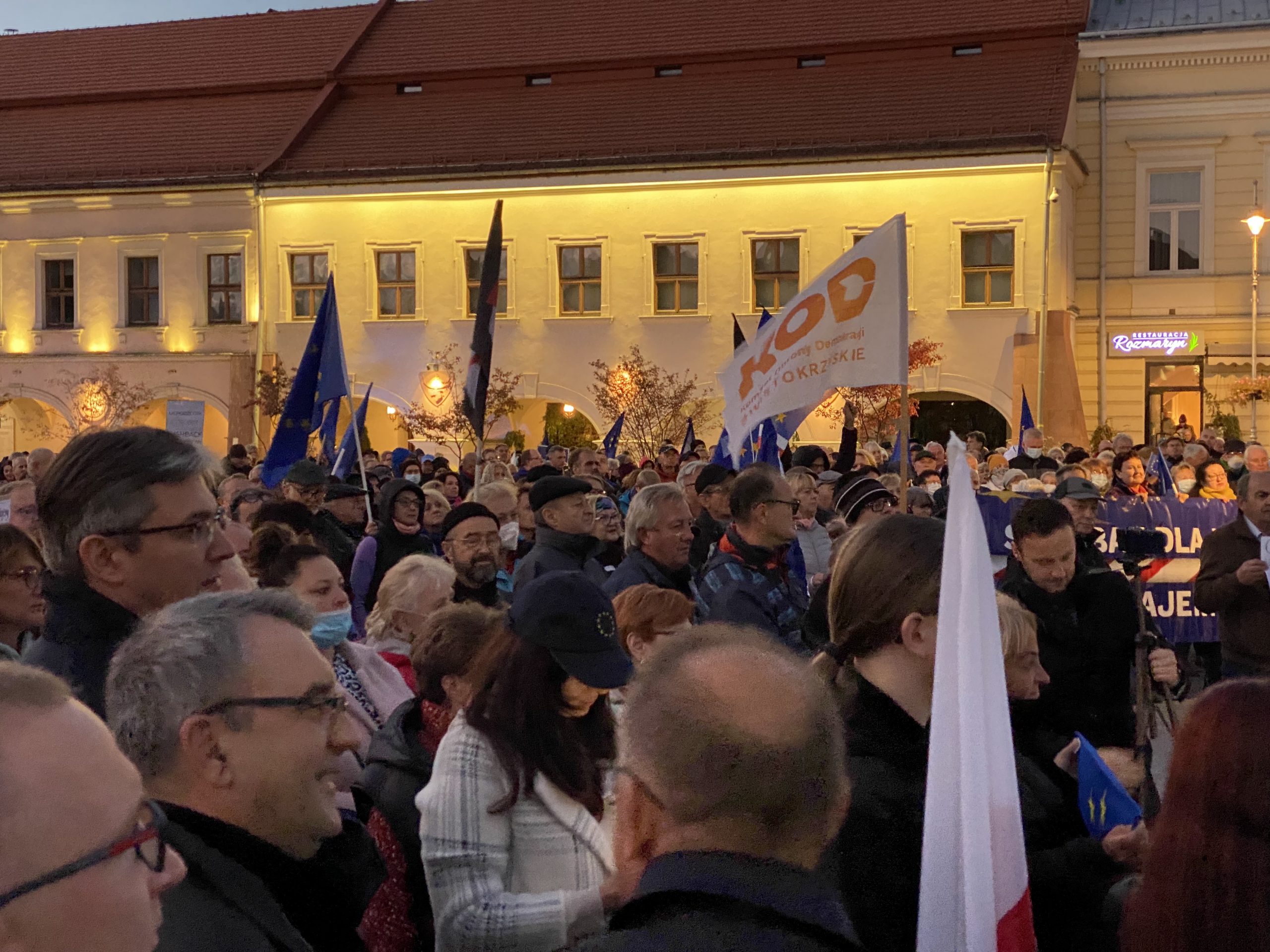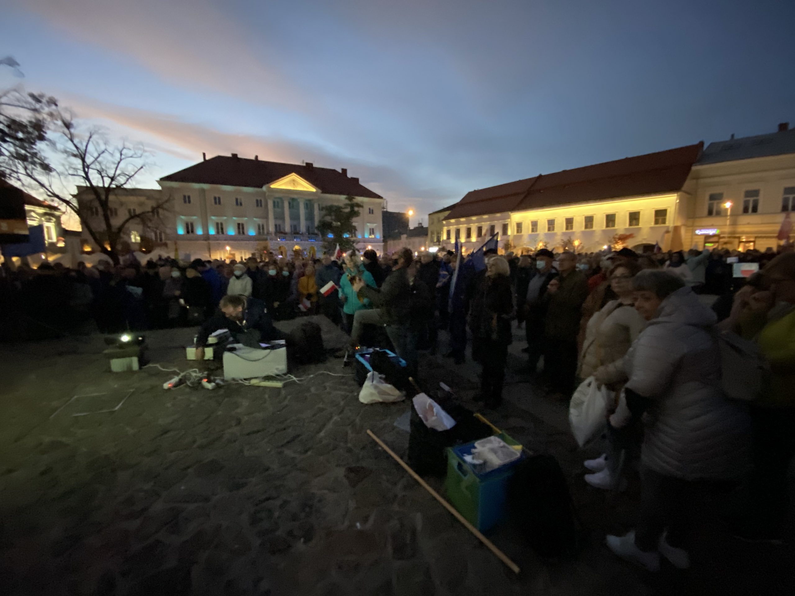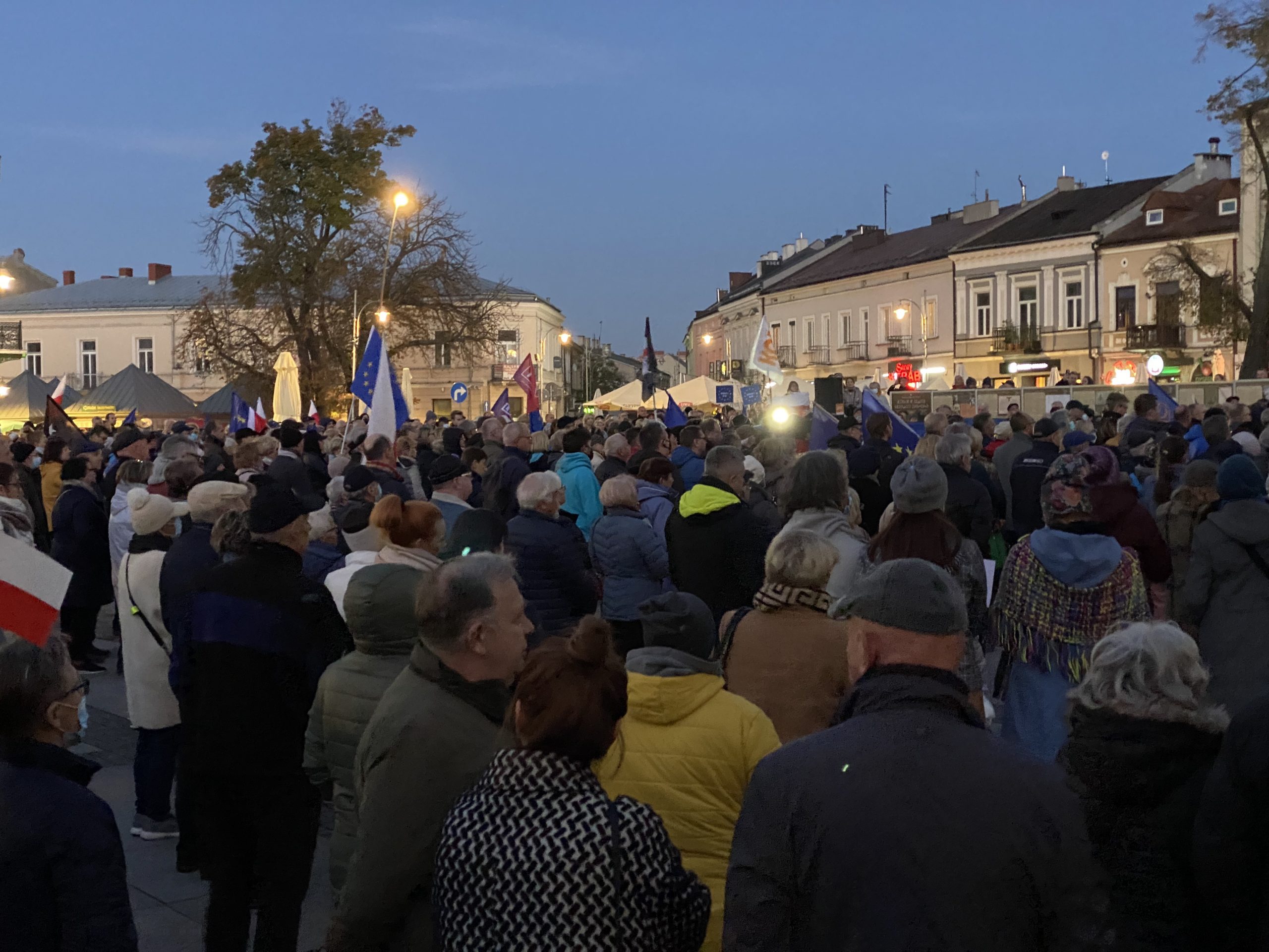 Około tysiąc osób wzięło udział w demonstracji pod hasłem „My zostajemy w UE, rząd wychodzi” na kieleckim Rynku. Wśród protestujących byli działacze partii opozycyjnych: Adam Jarubas, Artur Gierada, Agata Wojda, Marcin Chłodnicki oraz prezydent Kielc, Bogdan Wenta.  Protesty mają związek z ostatnim wyrokiem Trybunału Konstytucyjnego, który orzekł, że polski rząd nie musi respektować unijnych przepisów, uznając wyższość prawa krajowego.