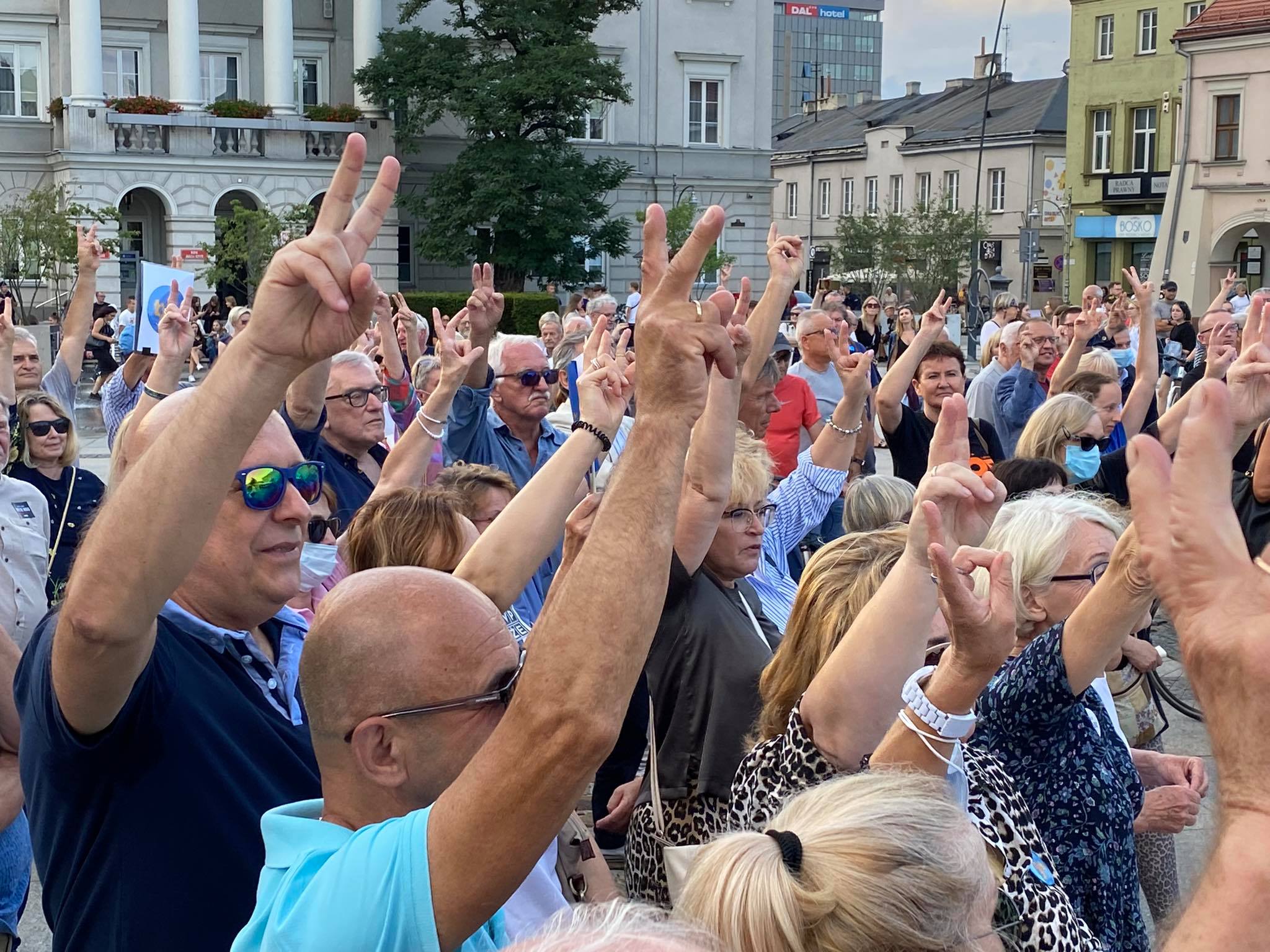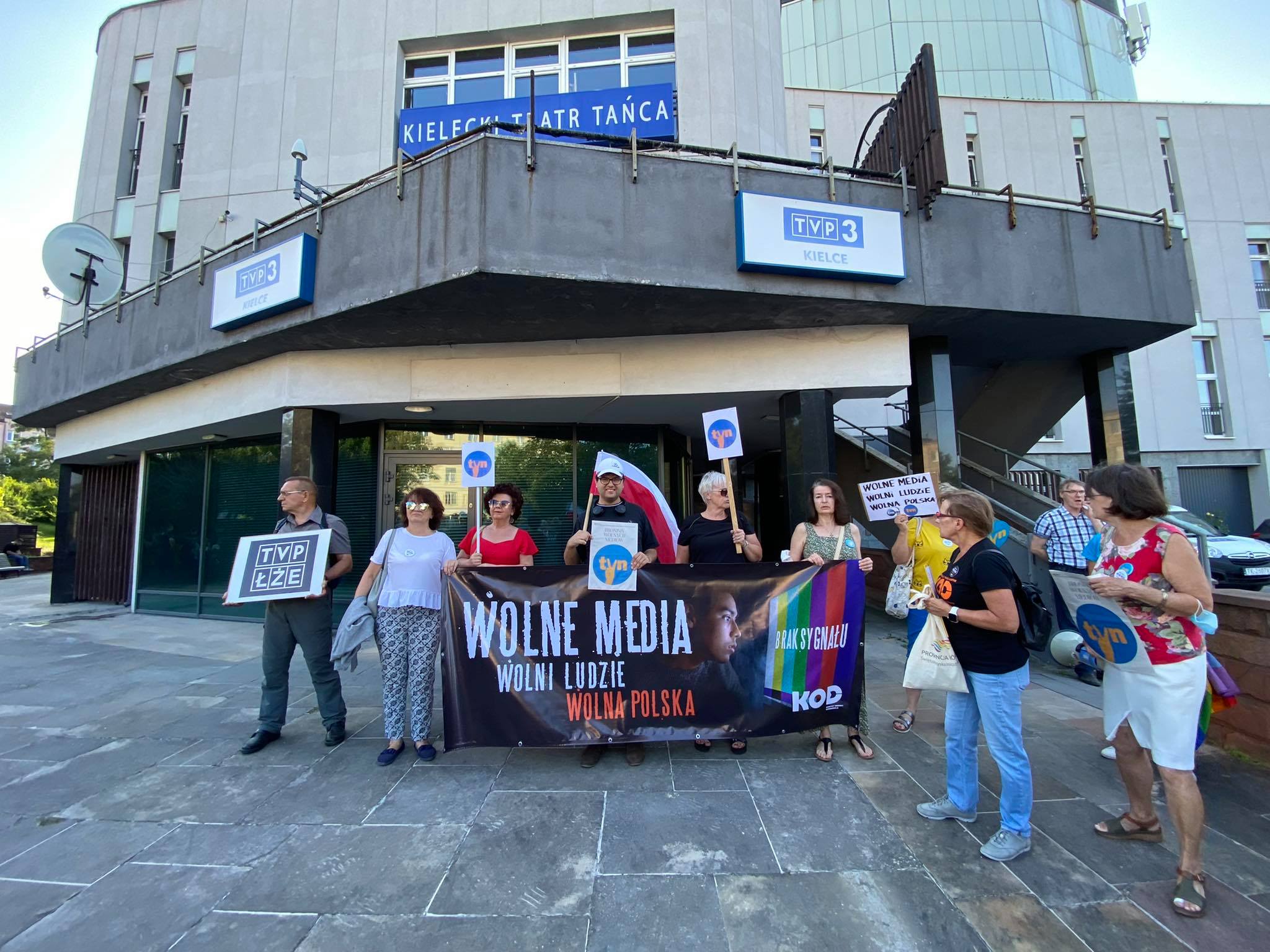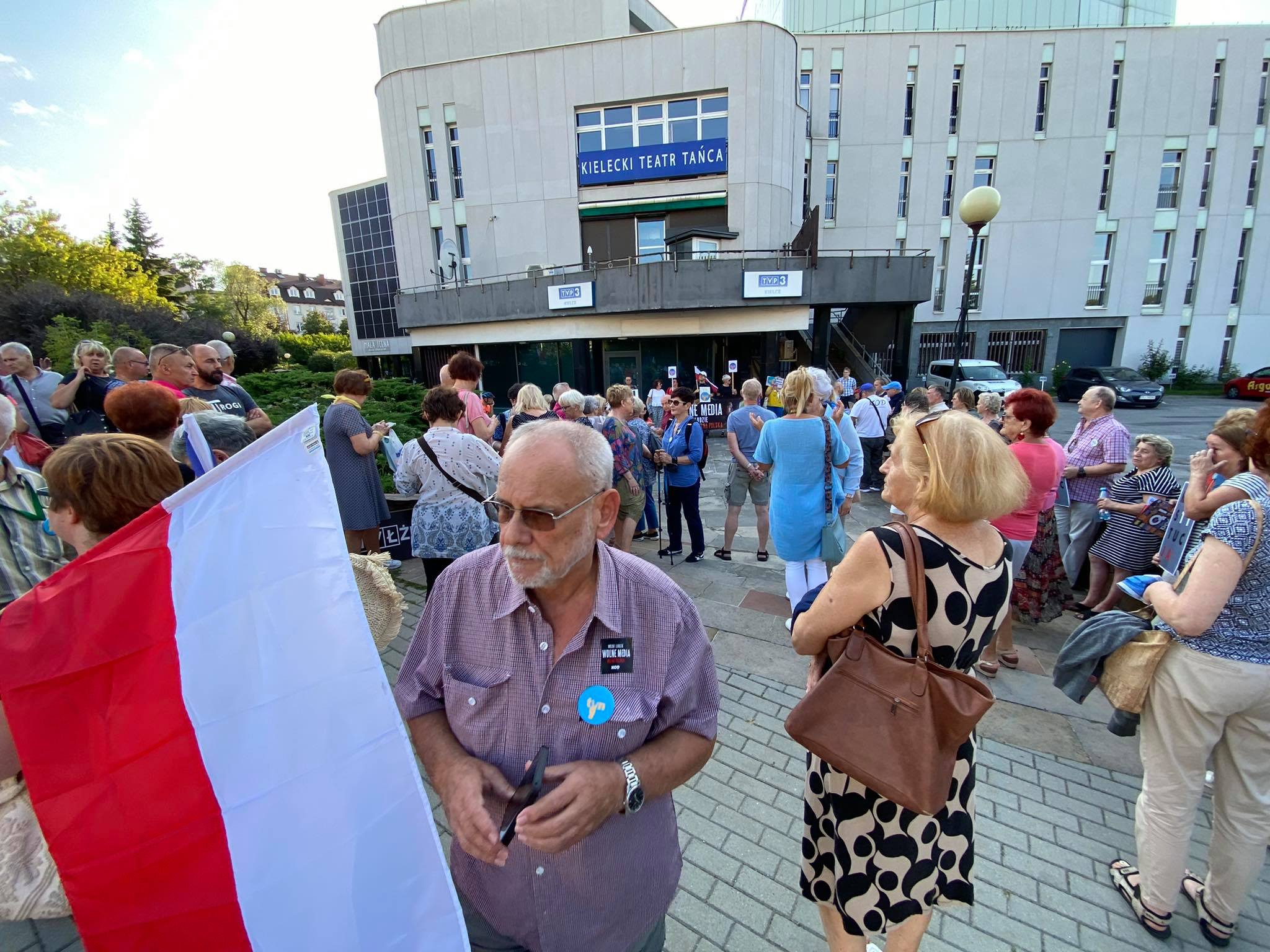 Kilkaset osób uczestniczyło w demonstracji w obronie telewizji TVN w Kielcach. Tłum zebrał się przed siedzibą TVP3 Kielce, żeby później przejść na Rynek.