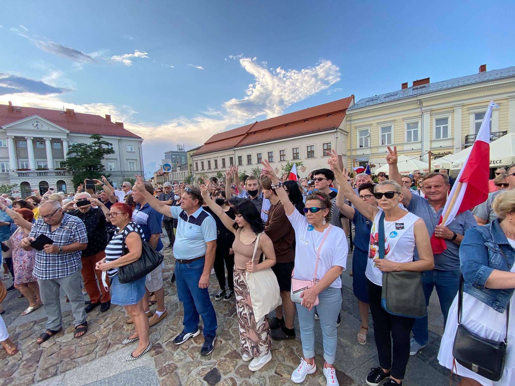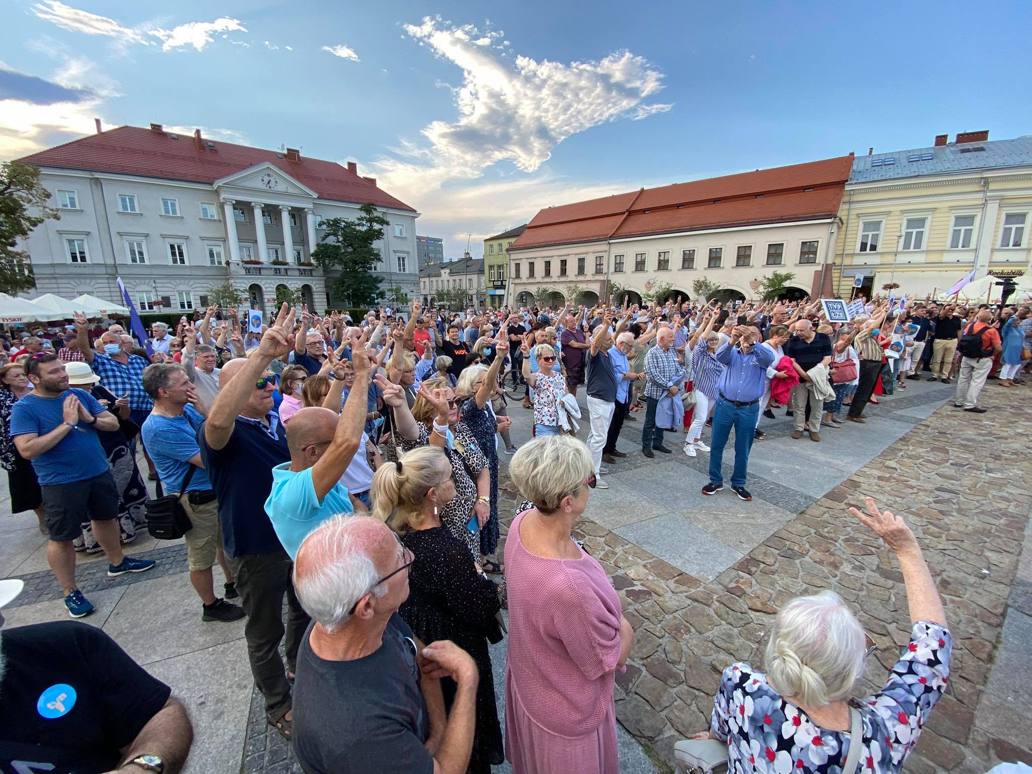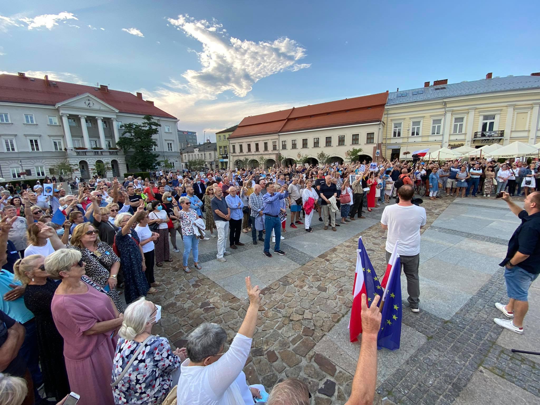 Kilkaset osób uczestniczyło w demonstracji w obronie telewizji TVN w Kielcach. Tłum zebrał się przed siedzibą TVP3 Kielce, żeby później przejść na Rynek.