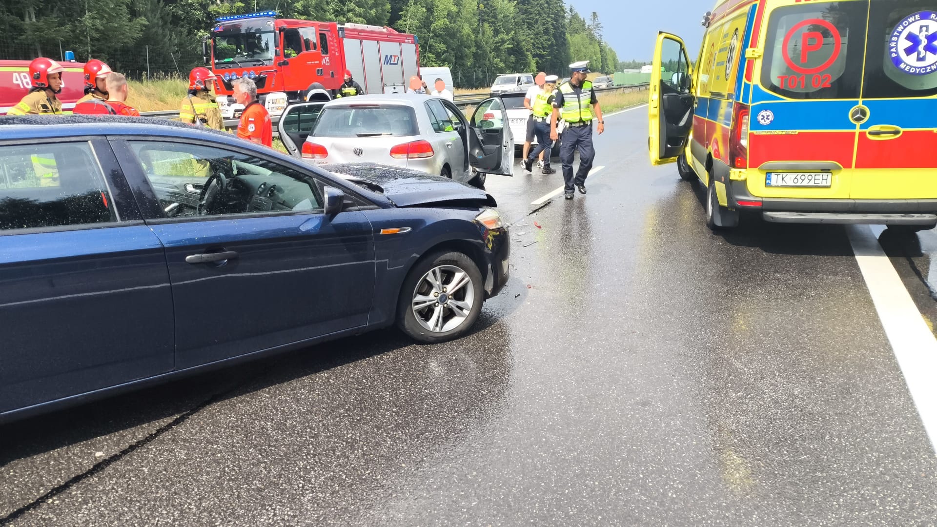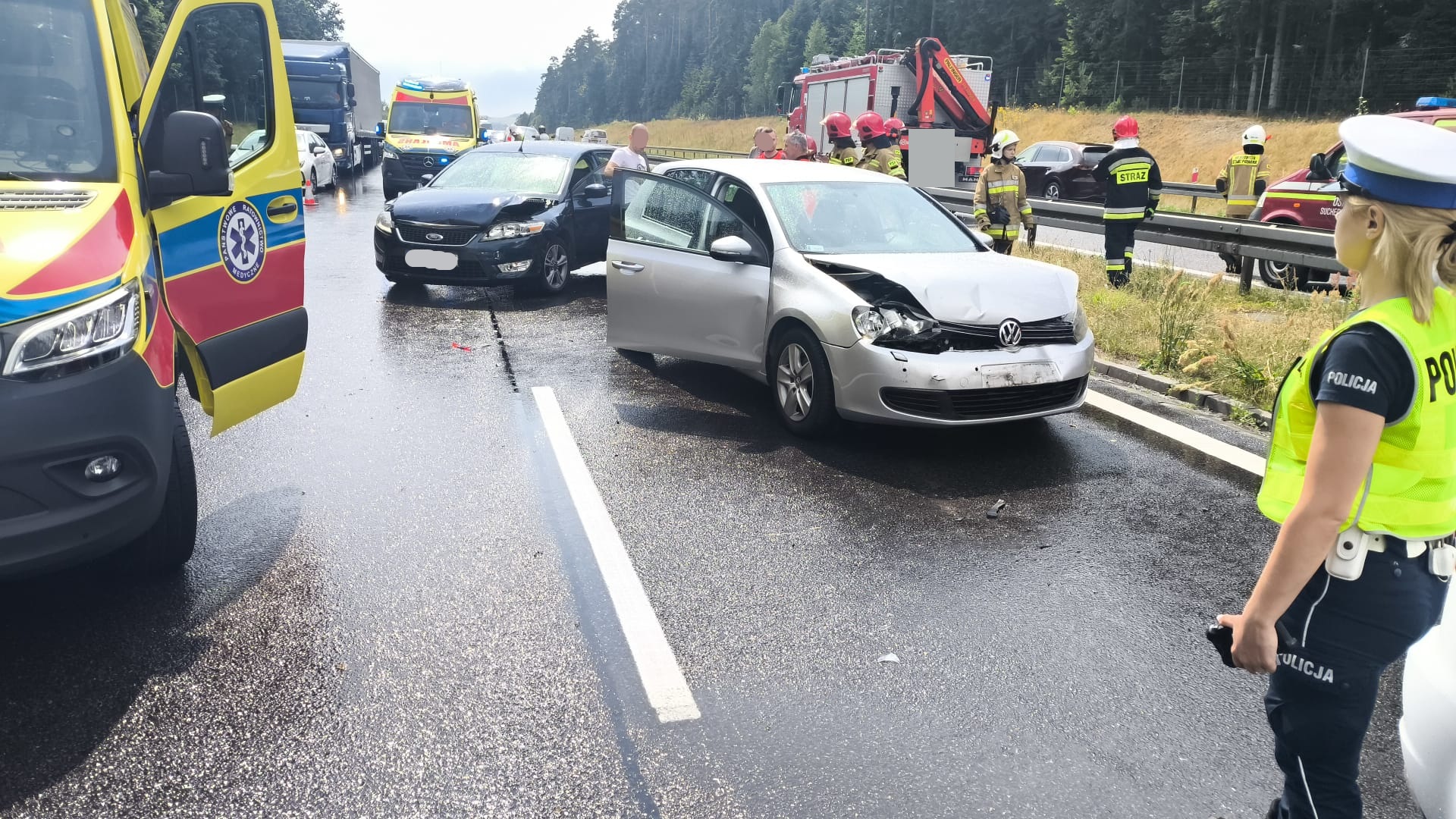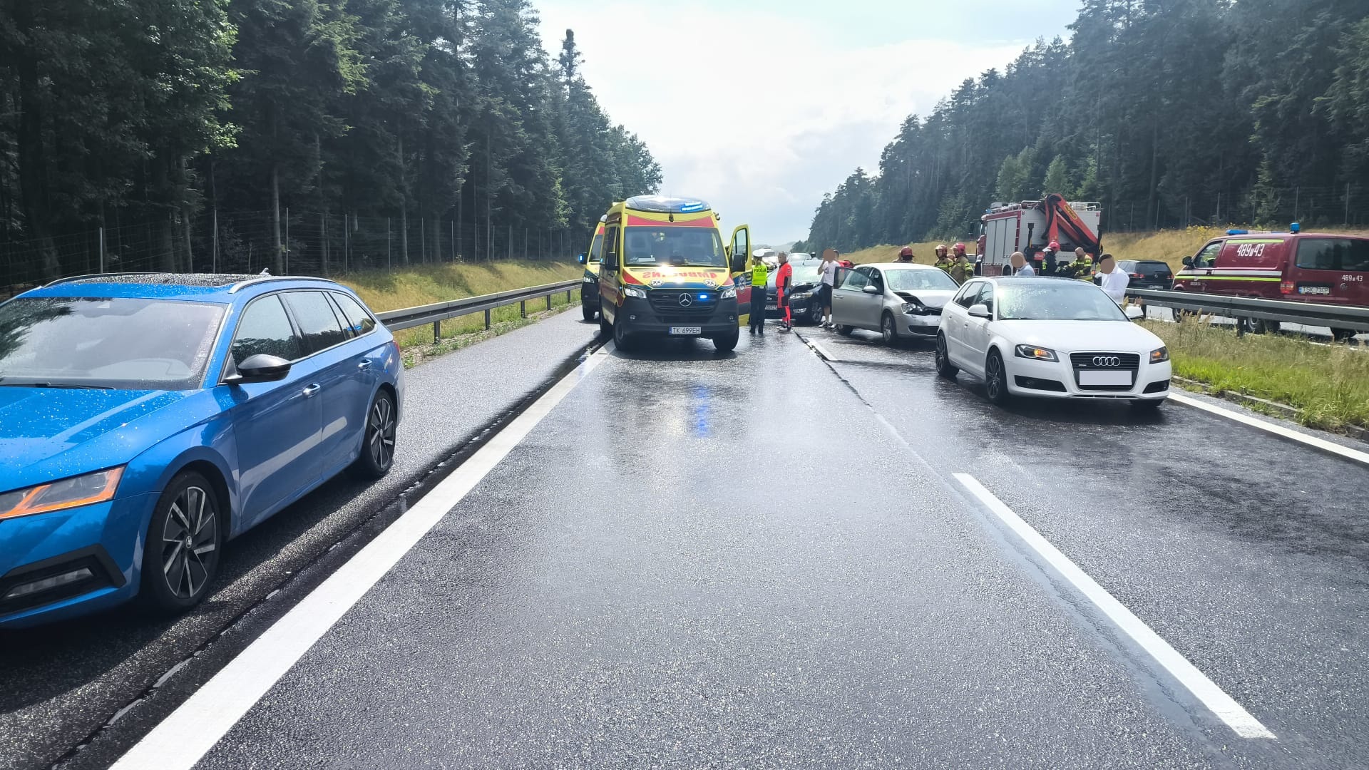 – Trasa S7 jest w obu kierunkach zablokowana z uwagi na lądowanie śmigłowca LPR. Pojazdami podróżowało pięć osób. Dwie z nich, w tym jedno dziecko, zostało poszkodowane w zdarzeniu – poinformowano około godziny 14:30.