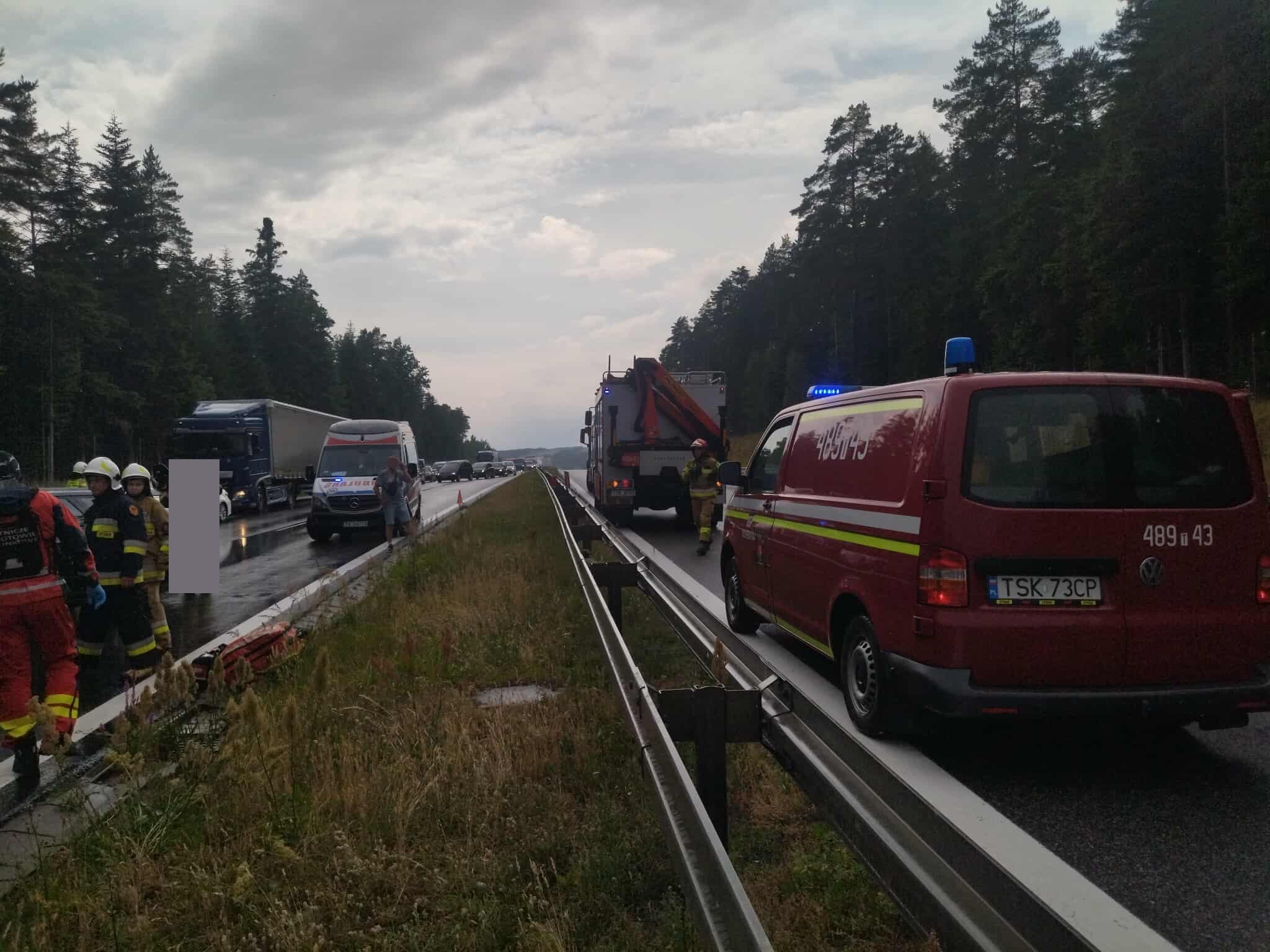 KP PSP w Skarżysku-Kamiennej poinformowała, że do zdarzenia doszło w poniedziałek w kierunku Warszawy, pomiędzy miejscowościami Łączna i Ostojów.