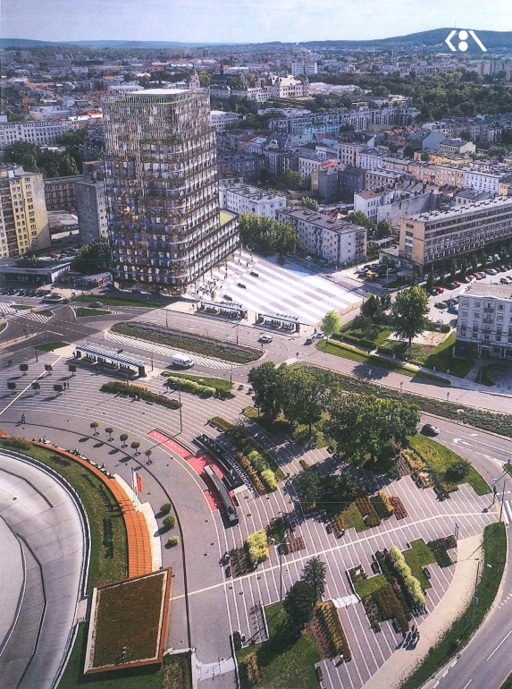 Na terenie nowej inwestycji (wraz z planowanym po sąsiedzku bliźniaczym budynkiem, który realizować ma inna spółka) znajduje się wyłączone z użytkowania kino, blisko dworca kolejowego i autobusowego. Omawiany 21 – kondygnacyjny wieżowiec ma mieć na parterze lokale handlowe i usługowe, częściowo znajdzie się tam również infrastruktura techniczna budynku.