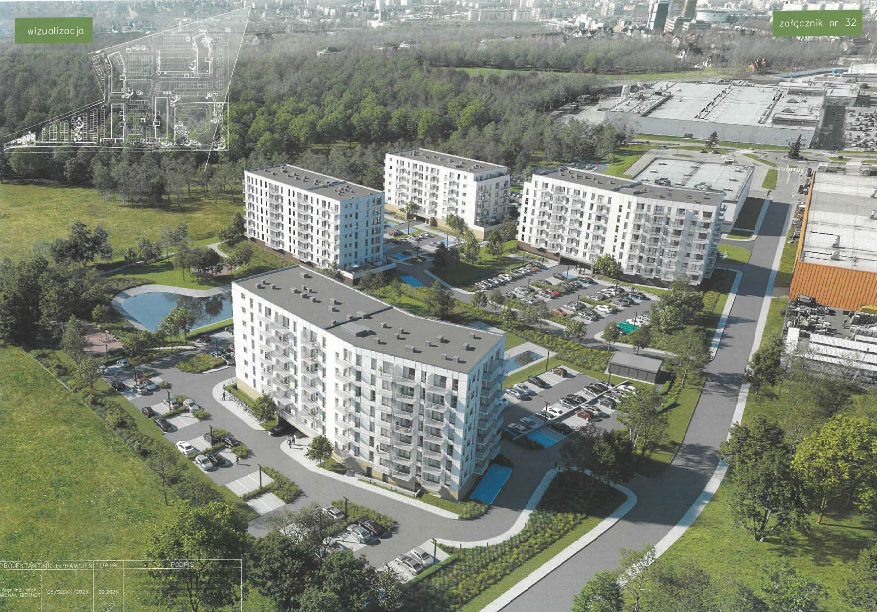 Czytamy również, że obszar „wokół istniejących, otwartych zbiorników retencyjnych wody deszczowej, zostanie zrewitalizowany i zaaranżowany w sposób, który poprawi odbiór całego założenia”.