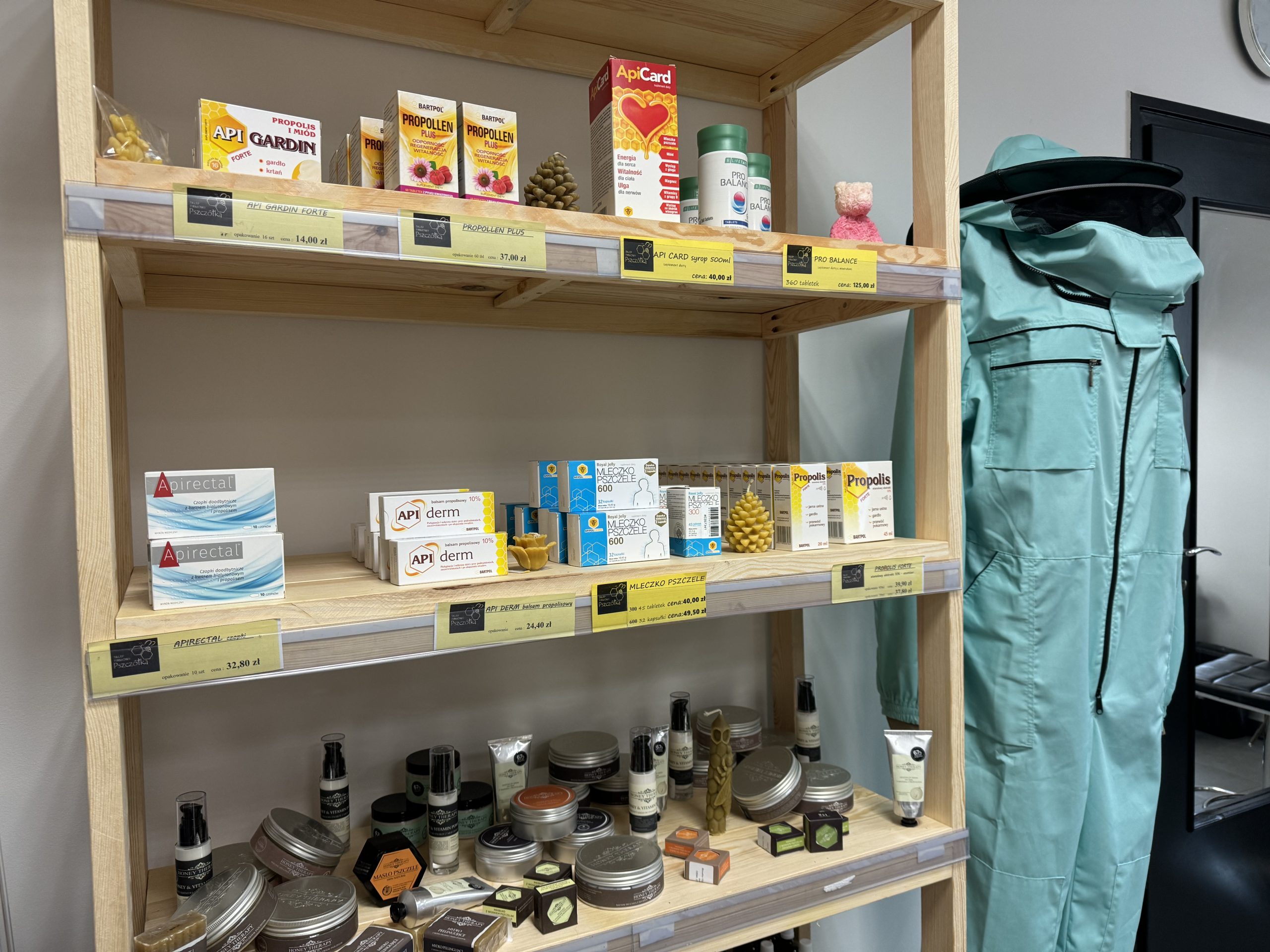 W sklepie firmowym „Pszczółka” oprócz miodu możemy znaleźć wiele wyjątkowych produktów, między innymi woski i świece. Właścicielka Iwona Łodo zachęca również do kupowania różnorodnych foremek i tworzenia świeczek samemu. Rzeczą, która wyróżnia sklep firmowy „Pszczółka” na rynku jest ogromna gama naturalnych kosmetyków, począwszy od kremów i peelingów aż po mydła i balsamy.