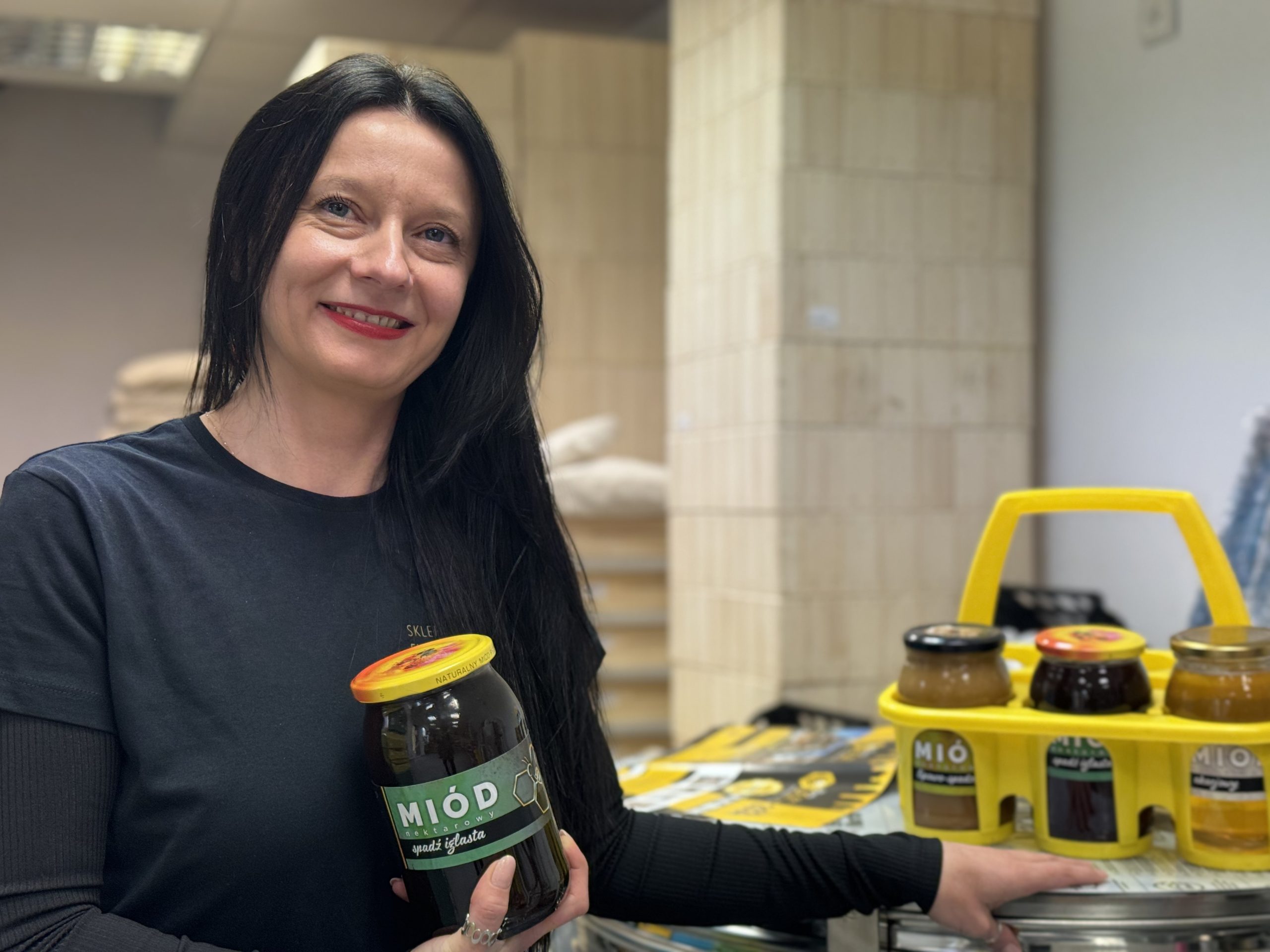 – Znajdujemy się w centrum Kielc, gdzie prowadzimy taki mój mały biznes, czyli sklep firmowy „Pszczółka”. Miody i wszystkie wyroby dostępne w naszym sklepie to polskie produkty od lokalnych pszczelarzy – mówi właścicielka Iwona Łodo.