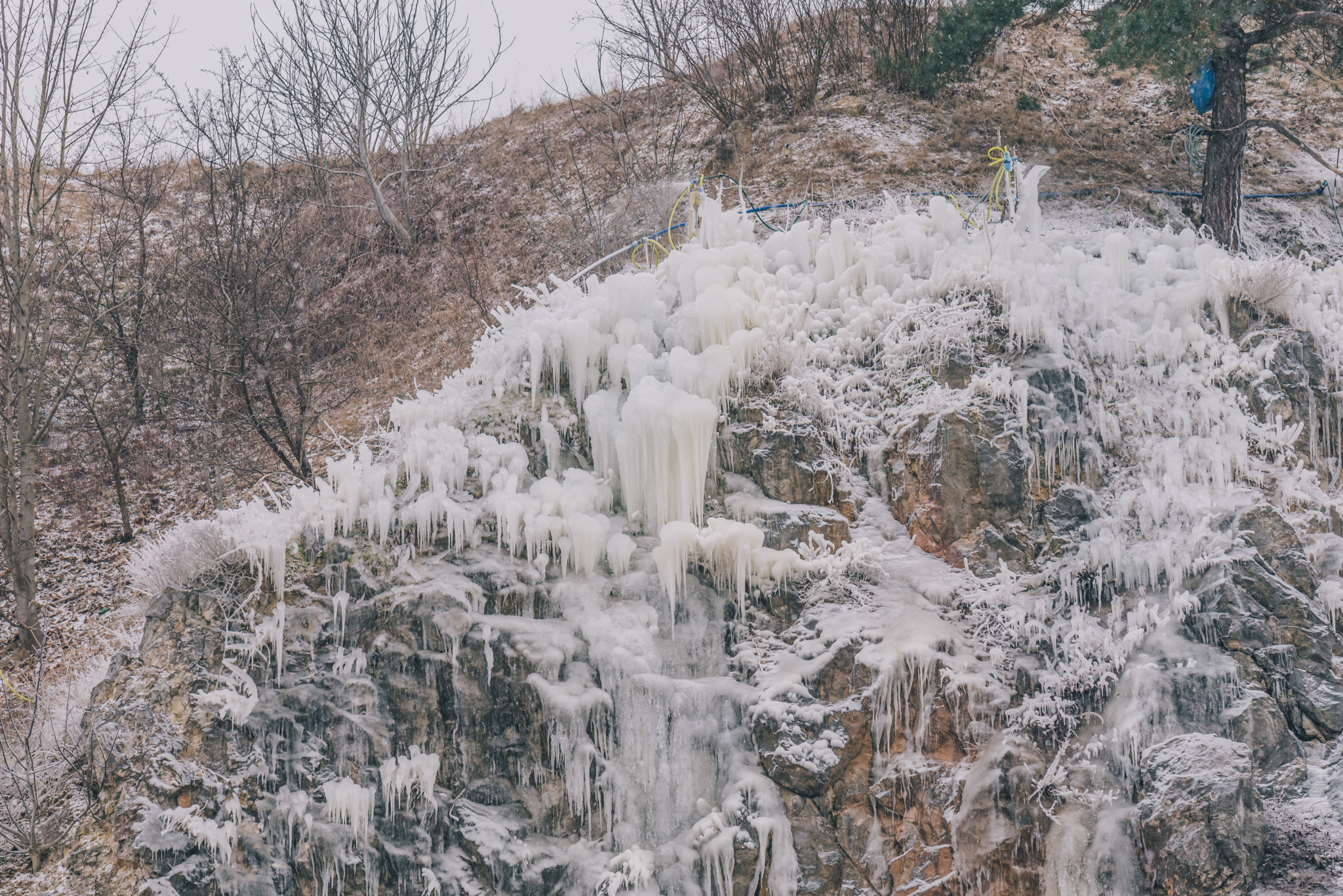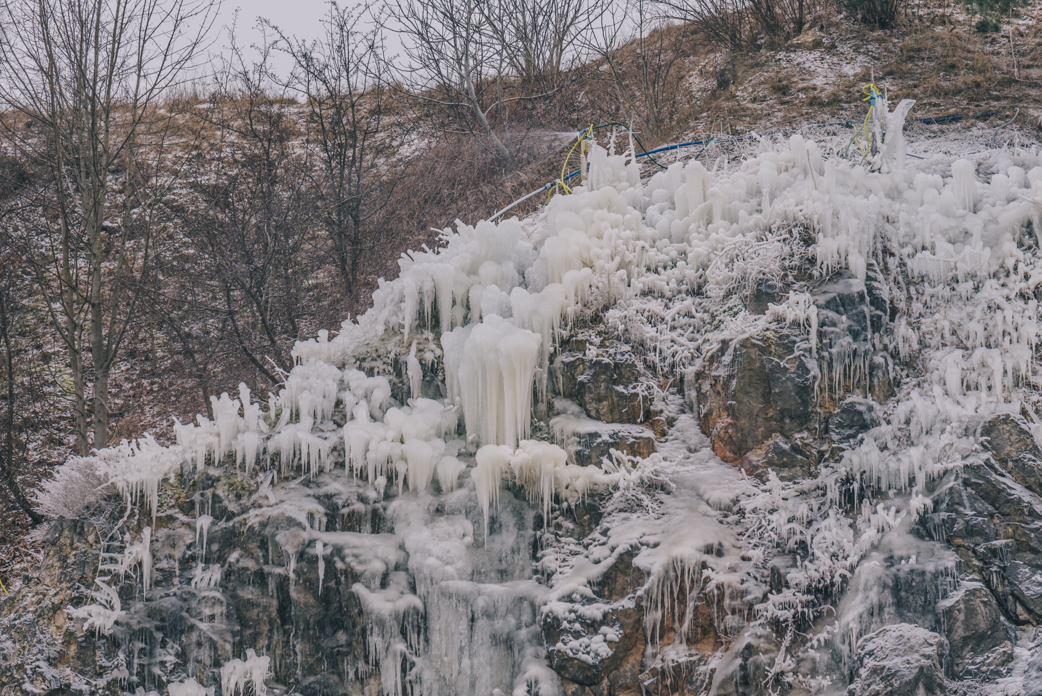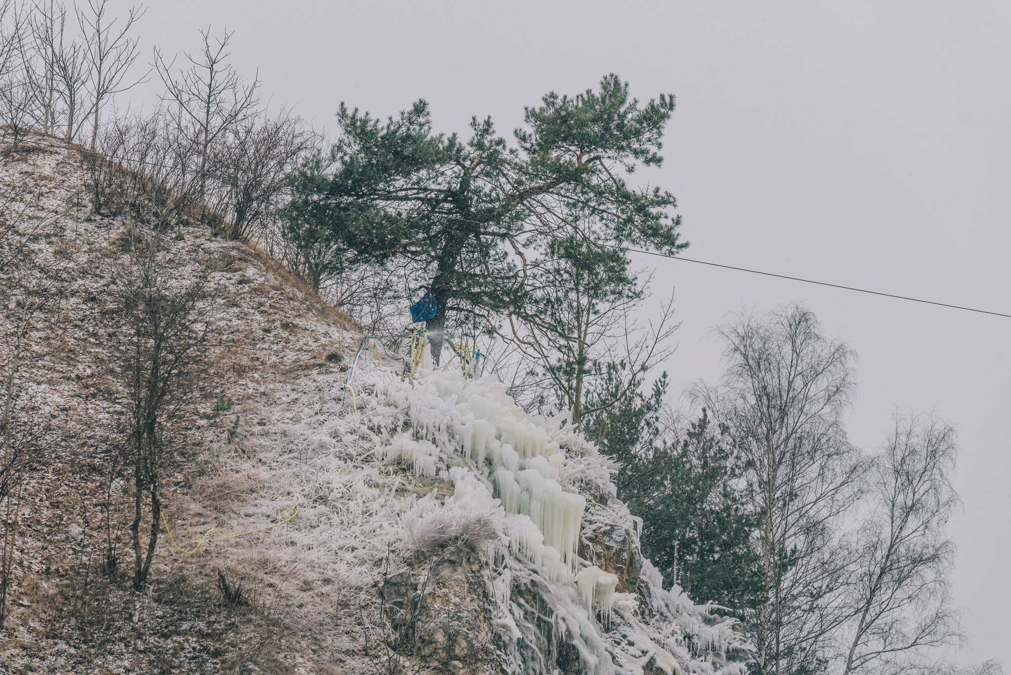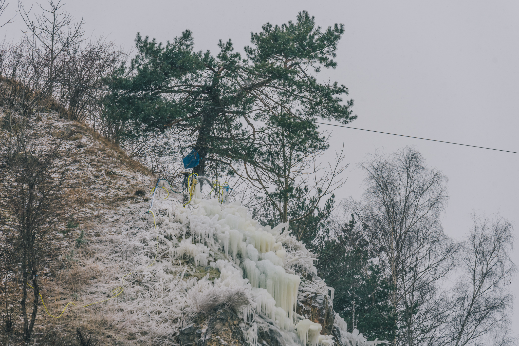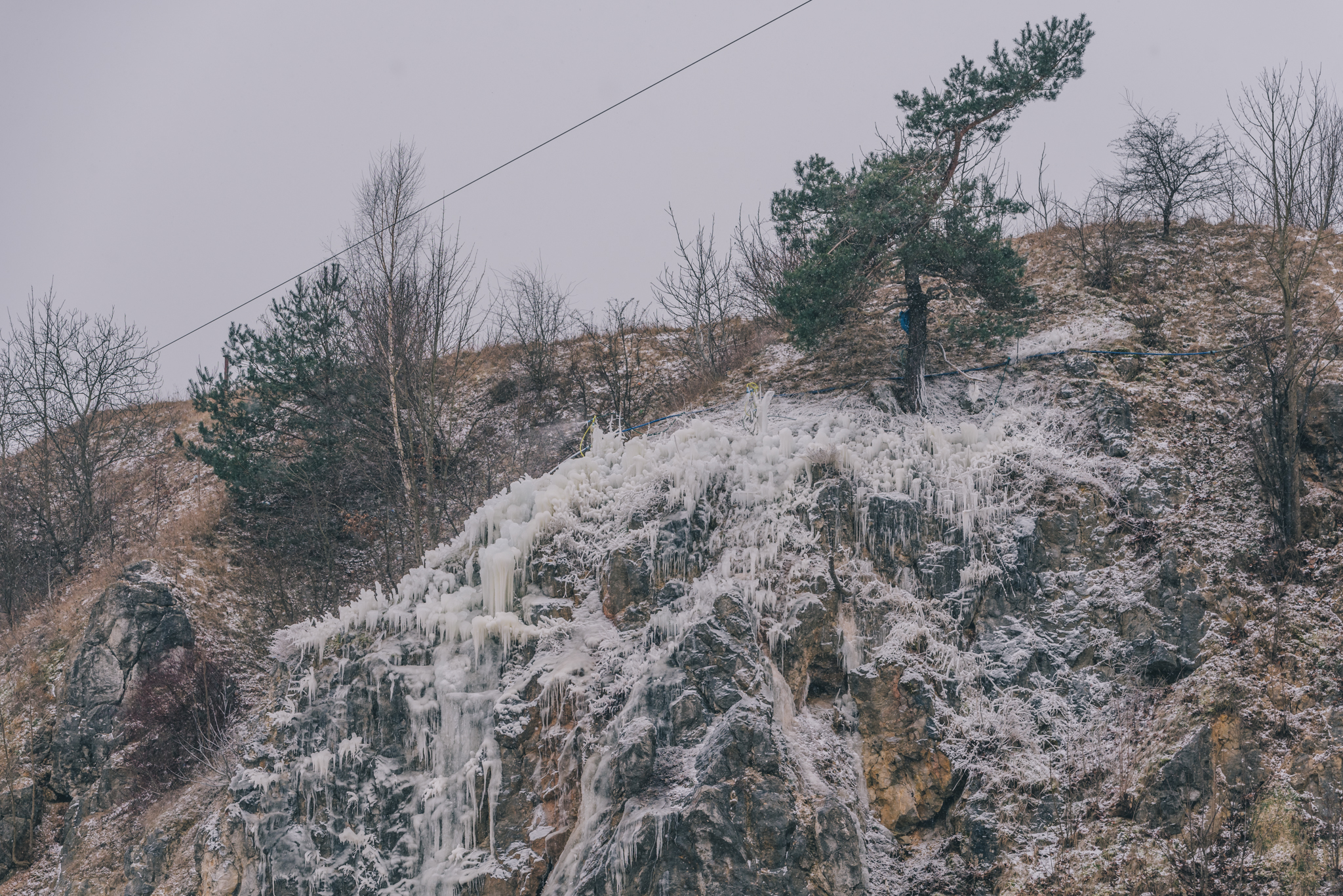 – Jego sercem jest pompa. Zanurzamy ją w dawnym jeziorku szmaragdowym i systemem rur woda jest wprowadzana na szczyt zbocza na Skałkę Geologów, ale poza obszarem objętym ochroną. Woda powoli spływając sobie ze skał tworzy bajkowe kształty. Jest to na pewno jedyne tego typu przedsięwzięcie w Polsce, ale prawdopodobnie też w Europie. Podejmowano próby budowy sztucznych lodospadów, ale nikomu się nie udały – opowiada Bartosz Świtek