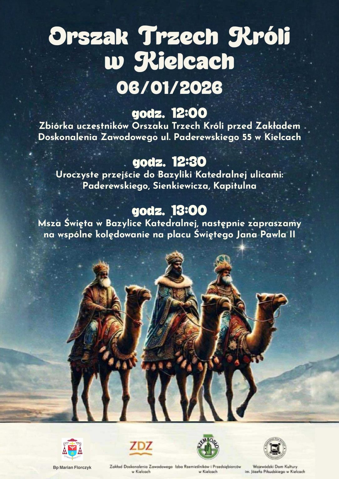 We wtorek 6 stycznia, a więc w święto Trzech Króli, przez Kielce przejdzie tradycyjny orszak. Zbiórka uczestników odbędzie się przed Zakładem Doskonalenia Zawodowego (ul. Paderewskiego 55) o godz. 12.00.