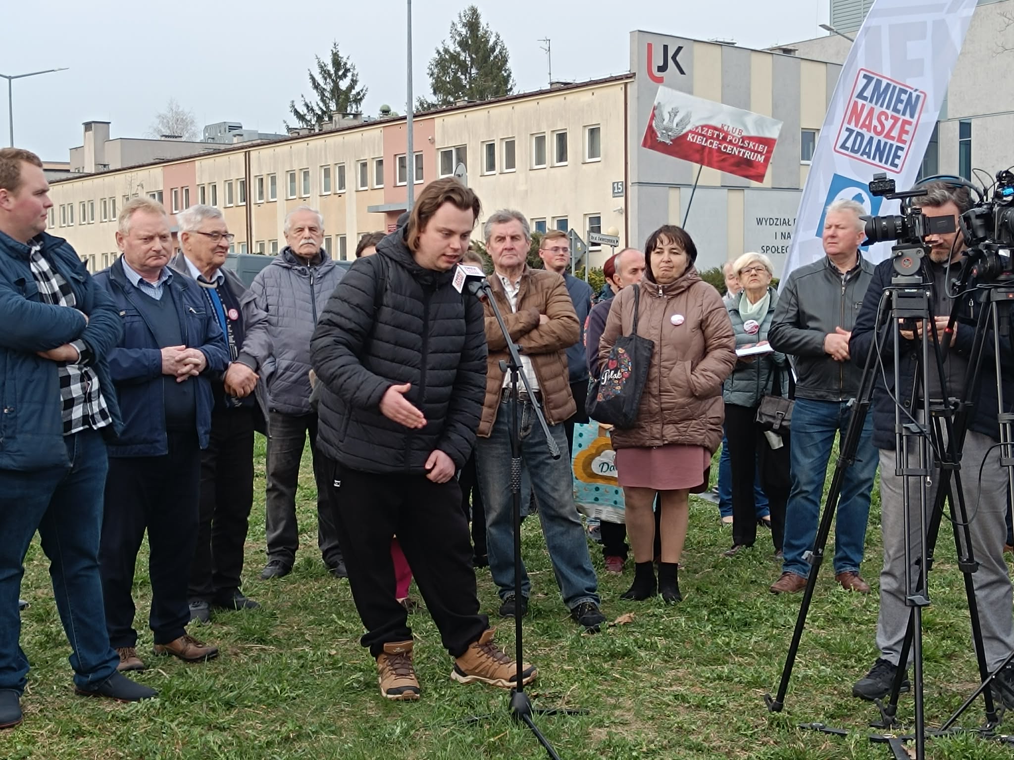 Europoseł Patryk Jaki pojawił się w Kielcach w ramach cyklu spotkań „Zmień nasze zdanie”, skupiających się na dyskusji i wymianie poglądów ze studentami. Wydarzenie nie przyciągnęło jednak wielu młodych osób, wśród zebranych przeważali starsi, pojawili się również inni działacze związani z PiS. Patryk Jaki zaczął dyskusję od tezy, że KO i Donald Tusk „zachowują się jak zorganizowana grupa przestępcza”, z kolei jeden z obecnych powiedział, że jego teza to „Jarosław Kaczyński i Donald Trump oszaleli”.