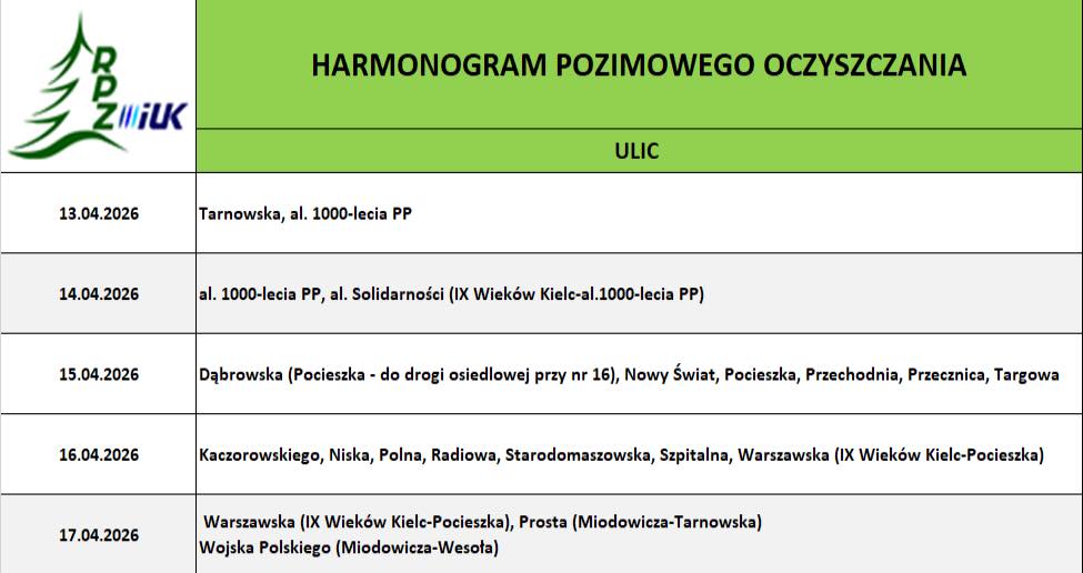 Nie otrzymaliśmy jednak odpowiedzi, czy MZD posiada aktualnie wystarczające środki, aby posprzątać wszystkie ulice w Kielcach. Przypomnijmy, że w poprzednich latach były z tym problemy (o czym pisaliśmy np. TUTAJ i TUTAJ).