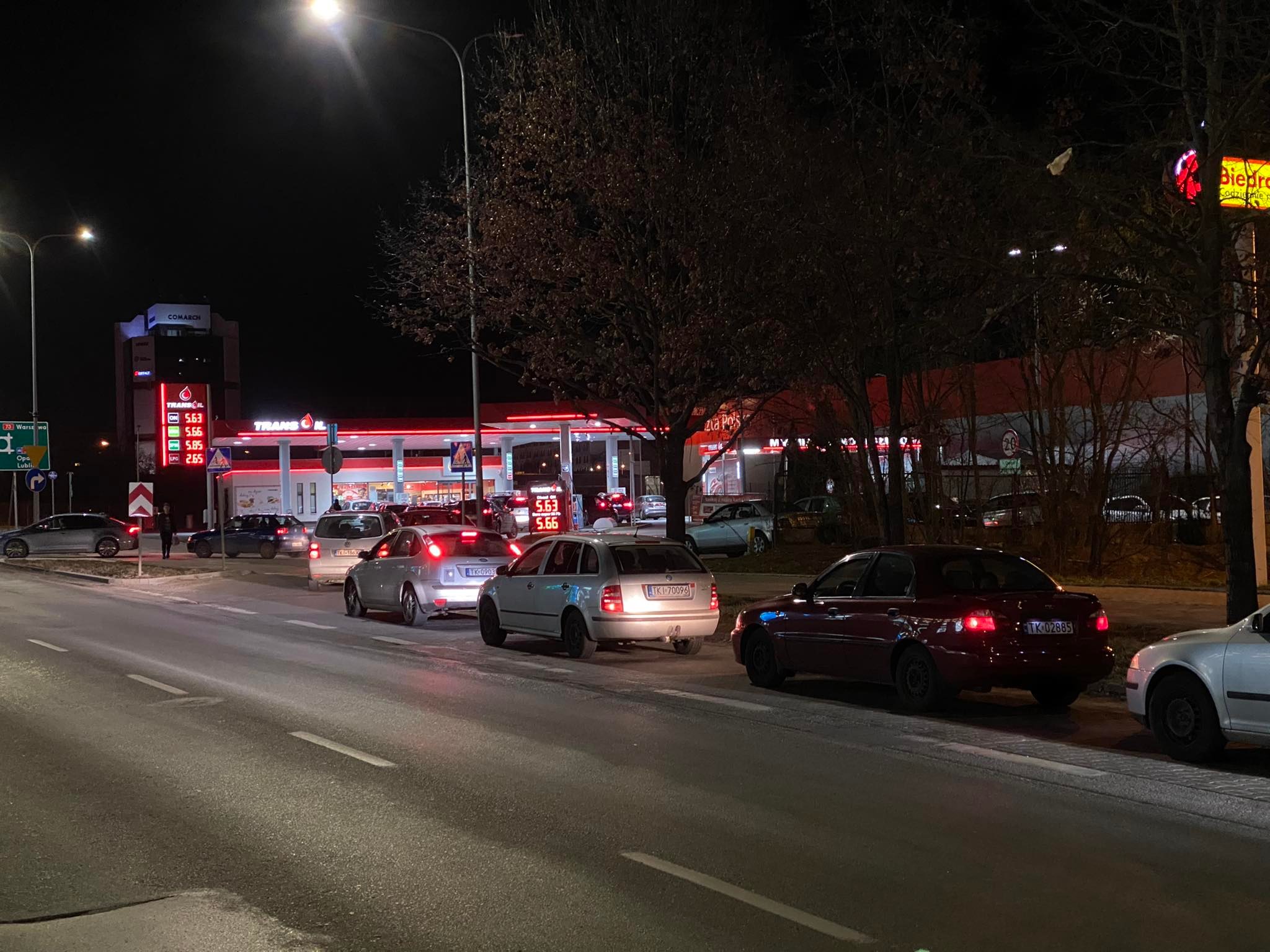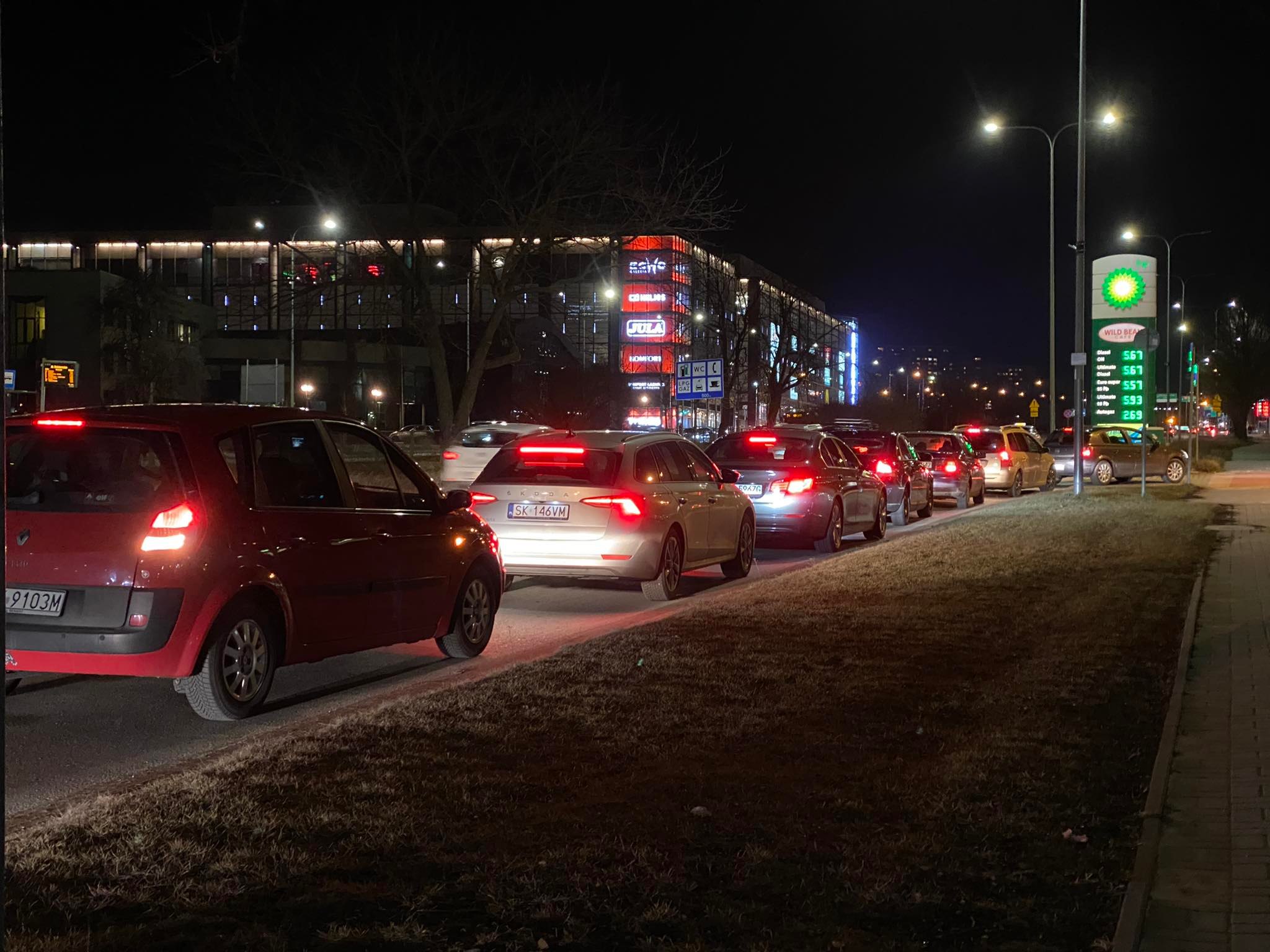 Po wiadomości o inwazji Rosji na Ukrainę kielczanie tłumnie ruszyli tankować swoje samochody. Od godzin popołudniowych tworzą się ogromne kolejki aut do dystrybutorów.