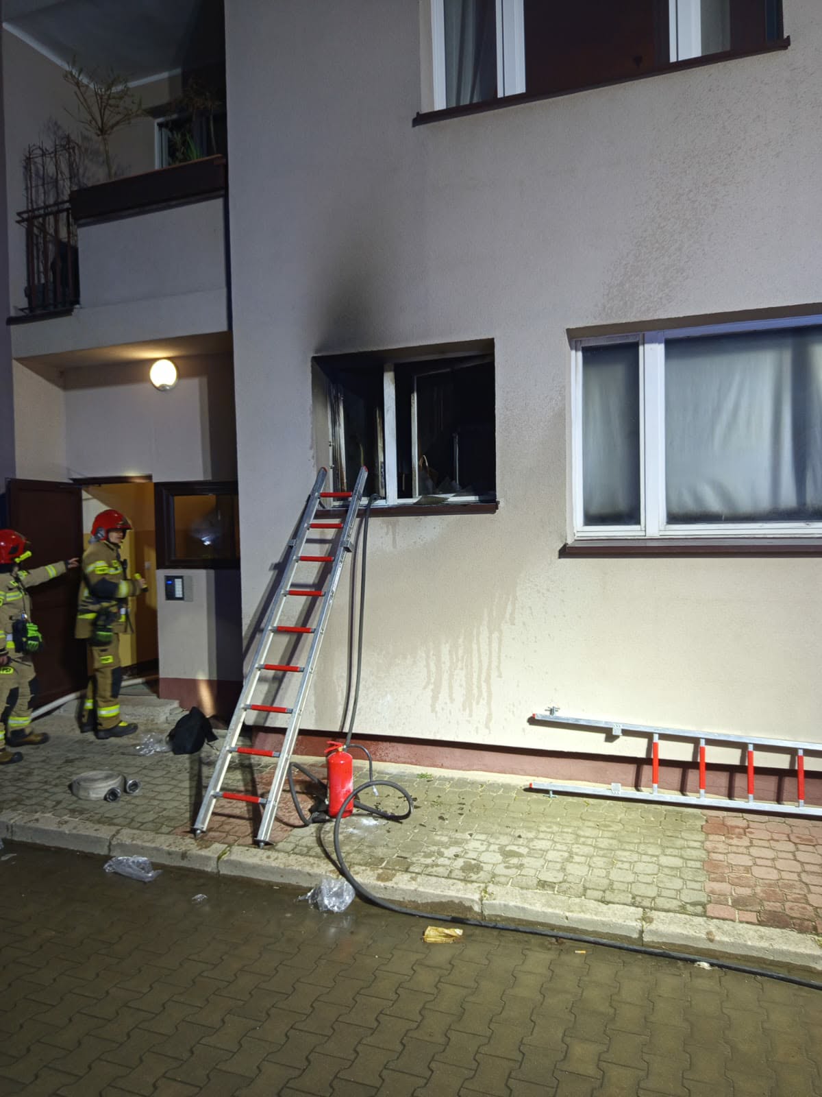 – Strażacy zabezpieczyli teren i ugasili pożar, w pierwszej fazie podając proszek gaśniczy przez uchylone okno. A następnie, po siłowym otwarciu drzwi, użyli dwóch prądów wody – podaje mł. asp. Beata Gizowska.