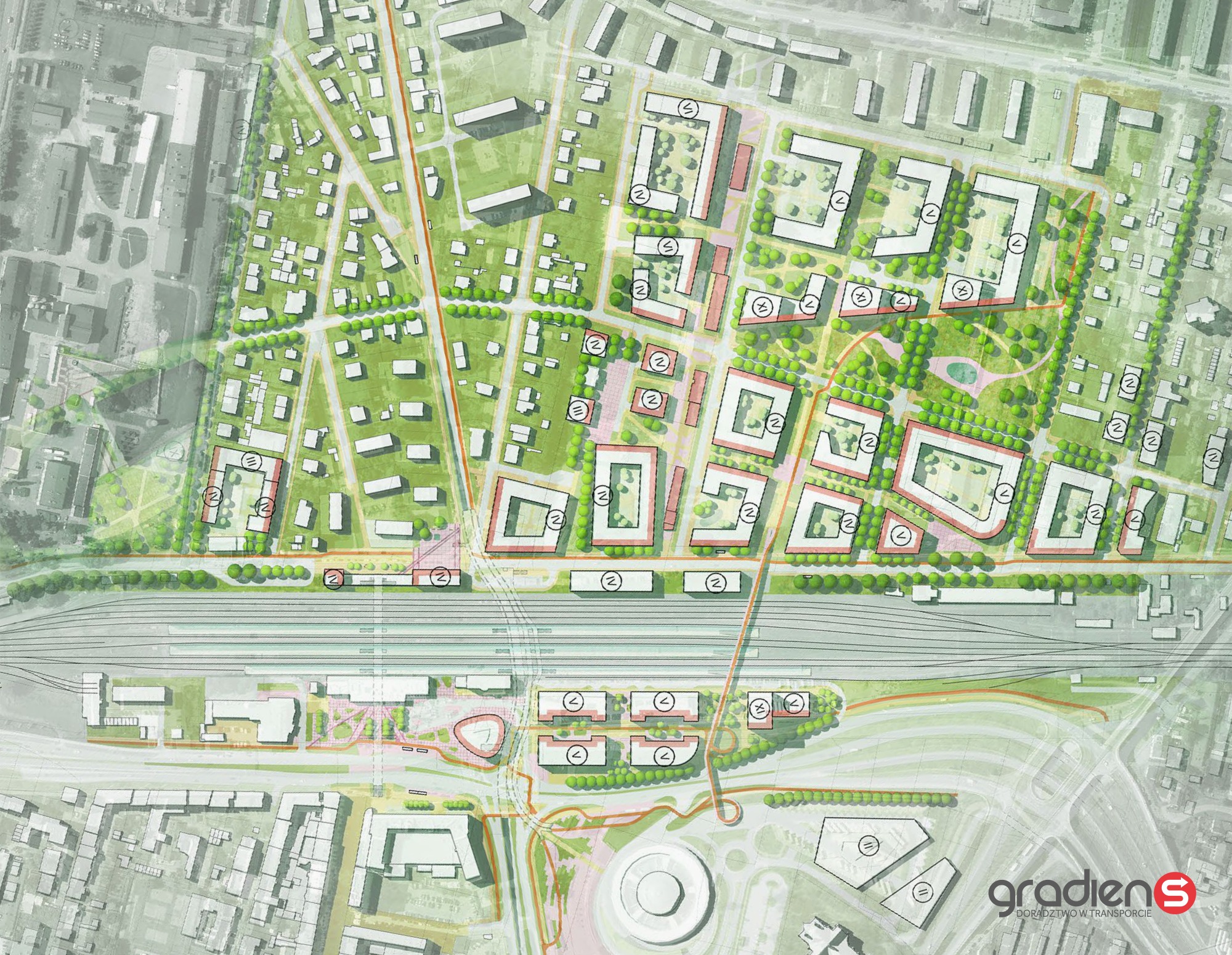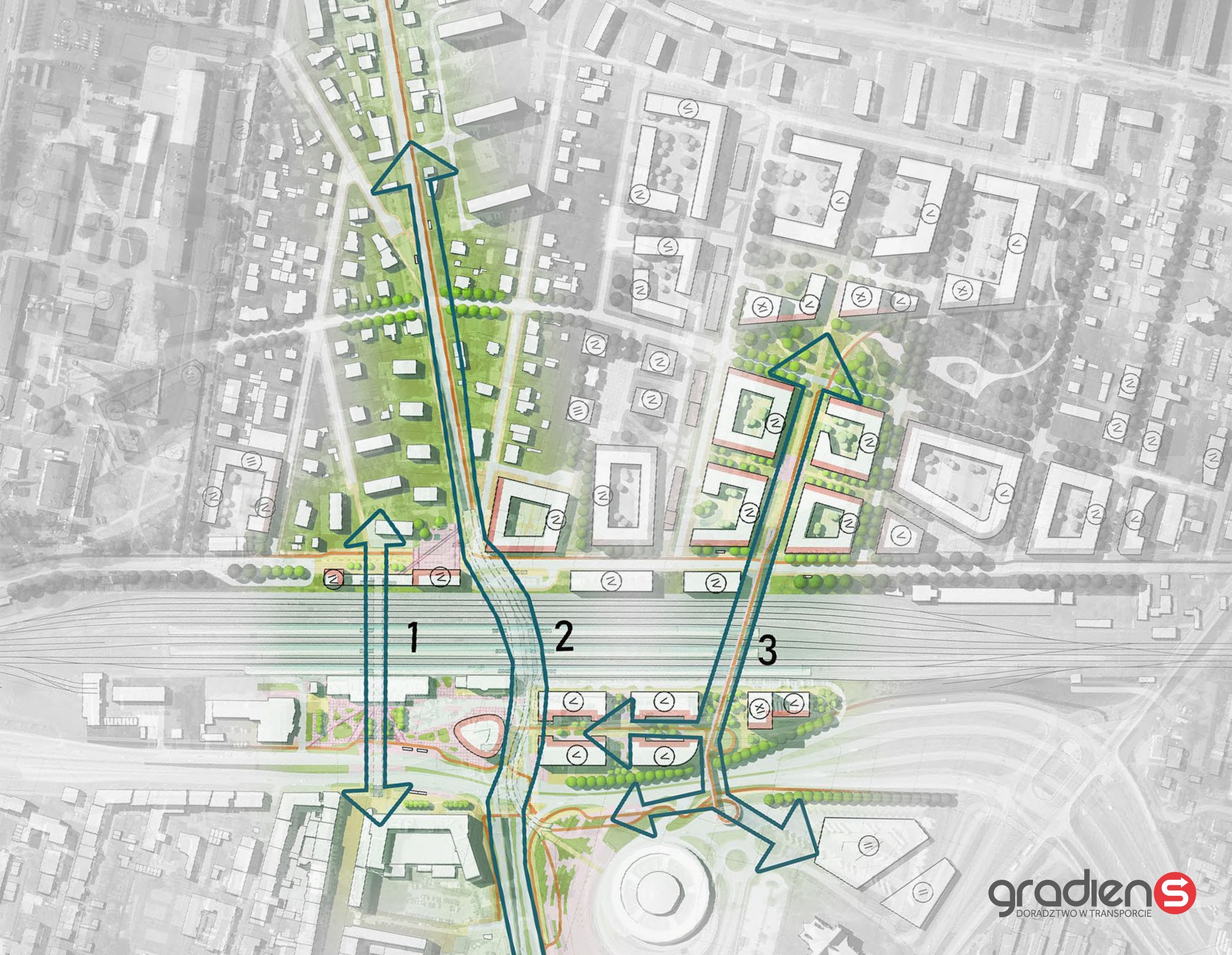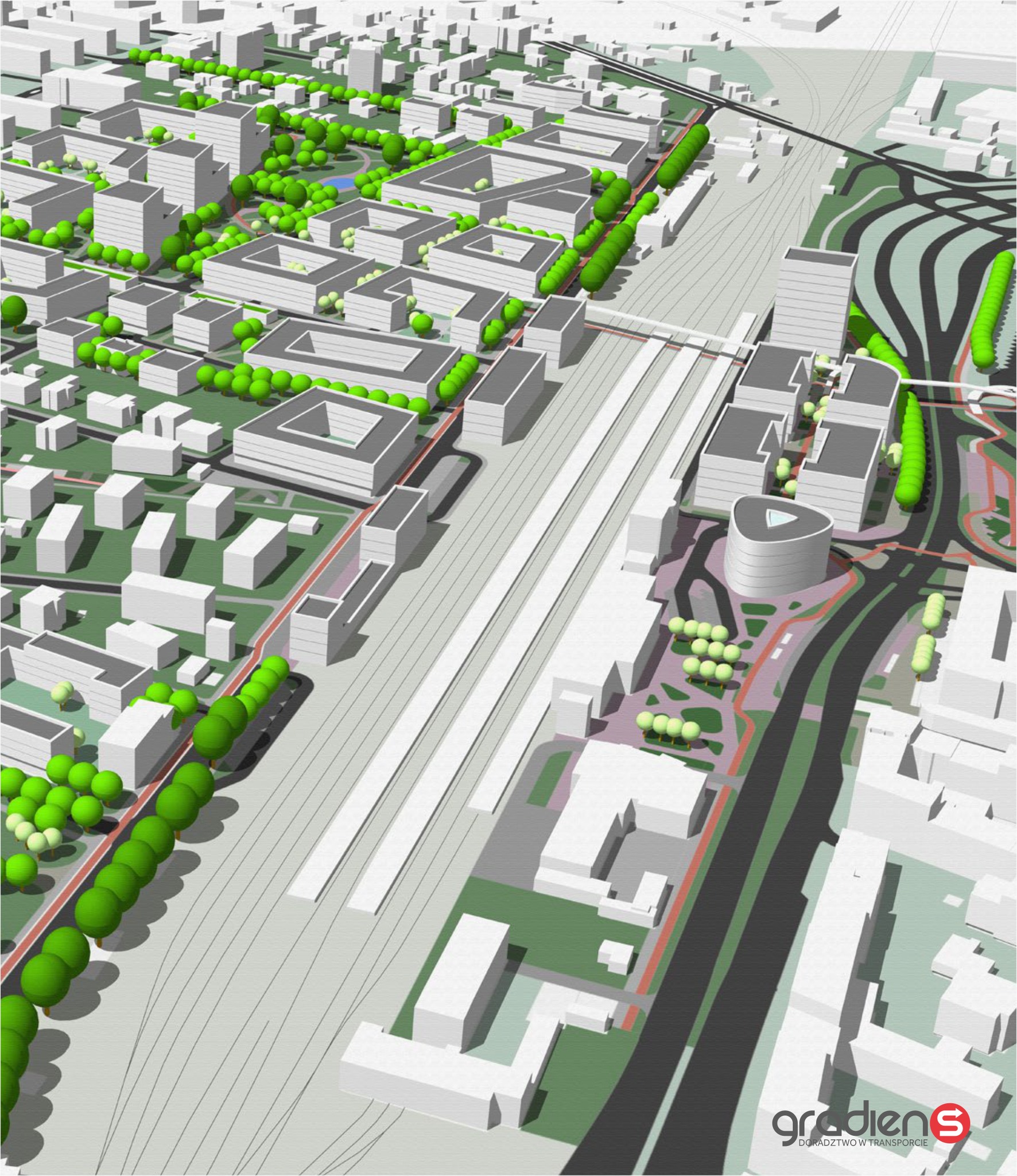 Zapowiedziano też stworzenie parkingów podziemnych. Chodzi tutaj o 900 miejsc. Większość pod funkcje biurowe, około 300 pod parkowanie średnioterminowe. – Będzie można podjechać na dłuższy pobyt na dworcu kolejowym, czy też przejść się do centrum miasta. Oprócz tego, po obydwu stronach dworca kolejowego, zarówno od strony ulicy Czarnowskiej, jak i ulicy Mielczarskiego zaproponowano miejsca na parkowanie krótkoterminowe. Tak zwany „Kiss & Ride” – tłumaczy Michał Pyzik, jeden z autorów koncepcji.