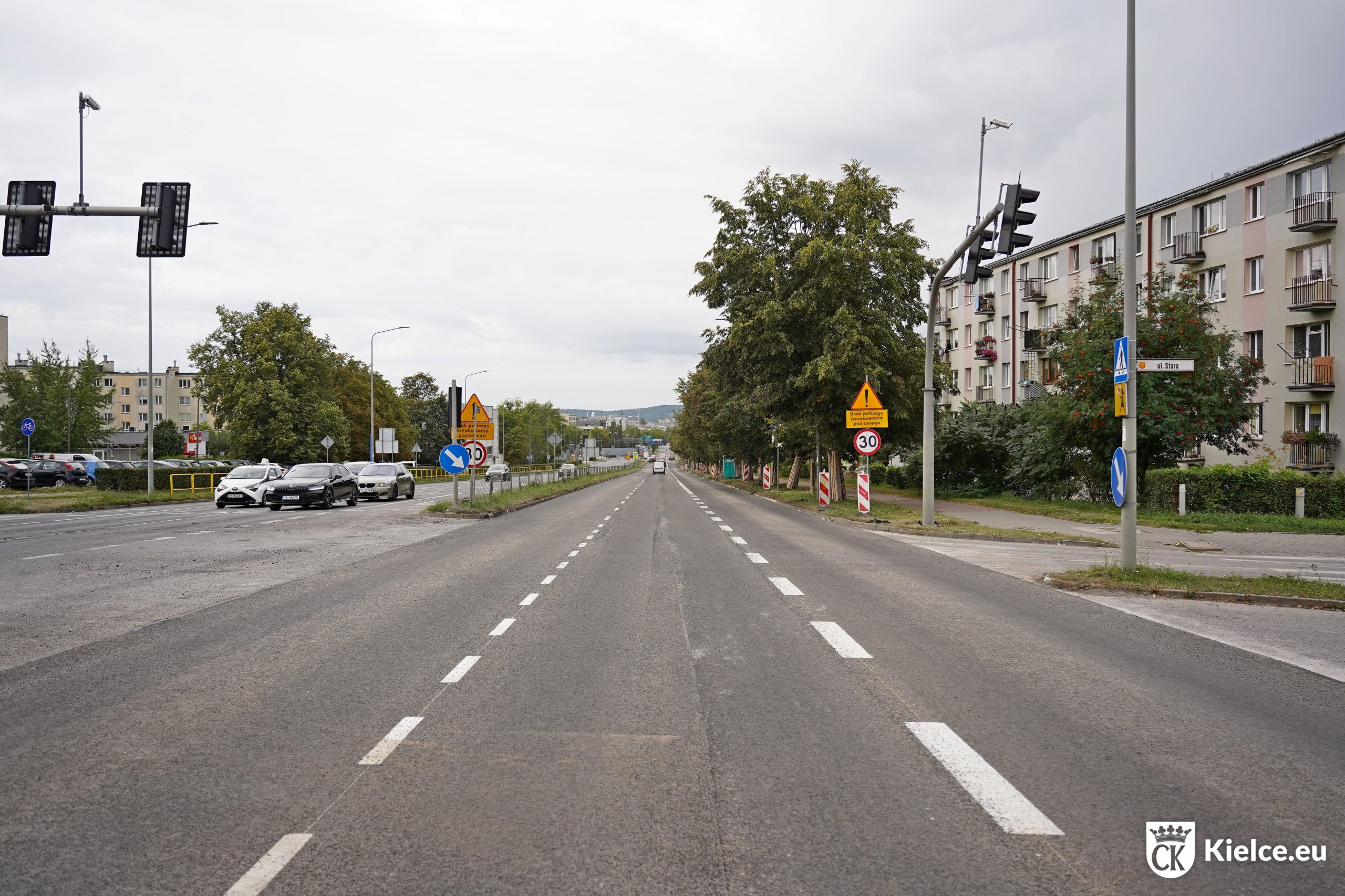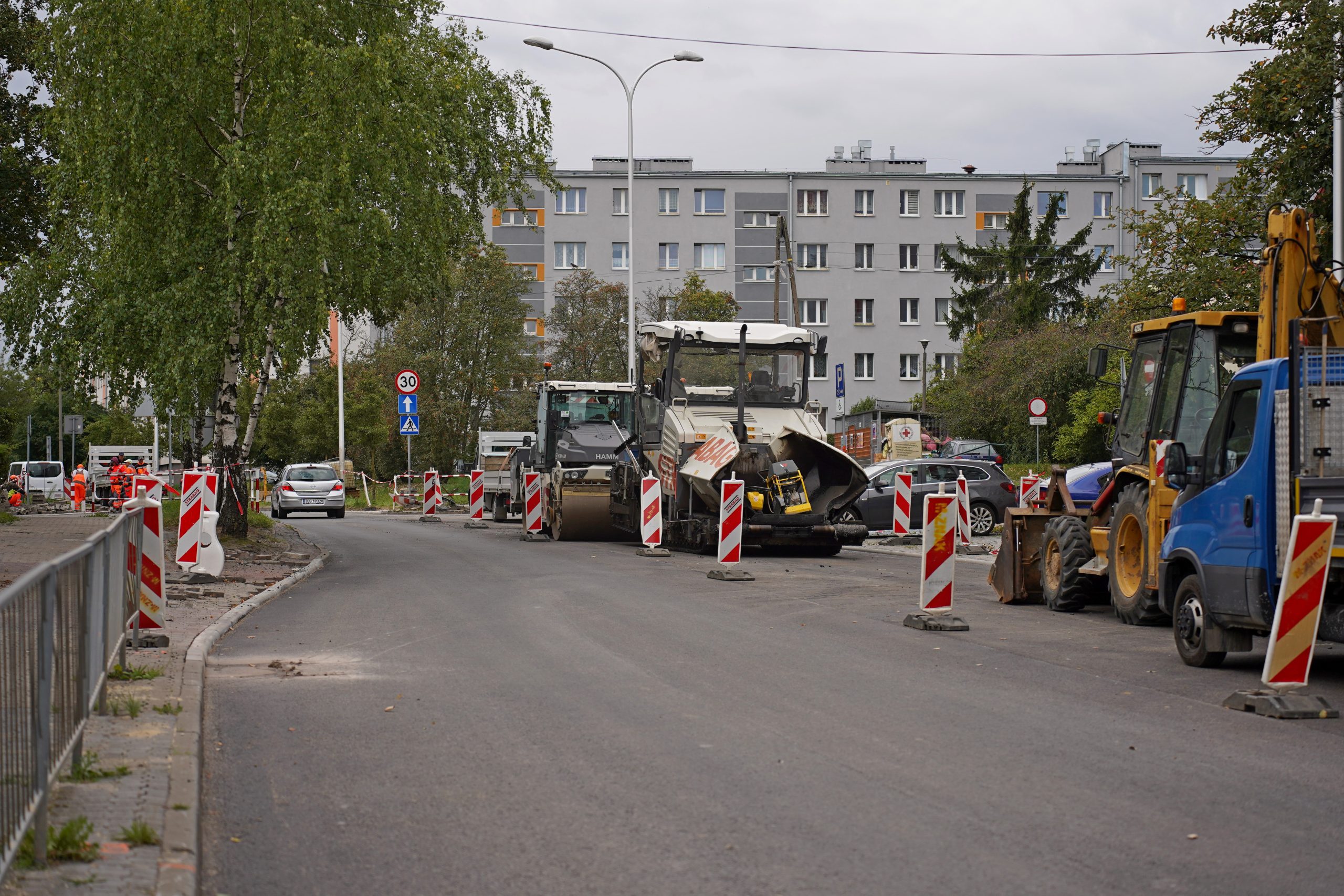 W weekend 22-24 sierpnia drogowcy ułożyli już nowe warstwy nawierzchni – wiążącą i ścieralną na zachodniej jezdni ul. Warszawskiej od skrzyżowania z Turystyczną do skrzyżowania z Jesionową. Wykonano także tymczasowe oznakowanie poziome, co pozwoliło już w poniedziałek, 25 sierpnia na wpuszczenie ruchu pojazdów na zmodernizowany fragment.