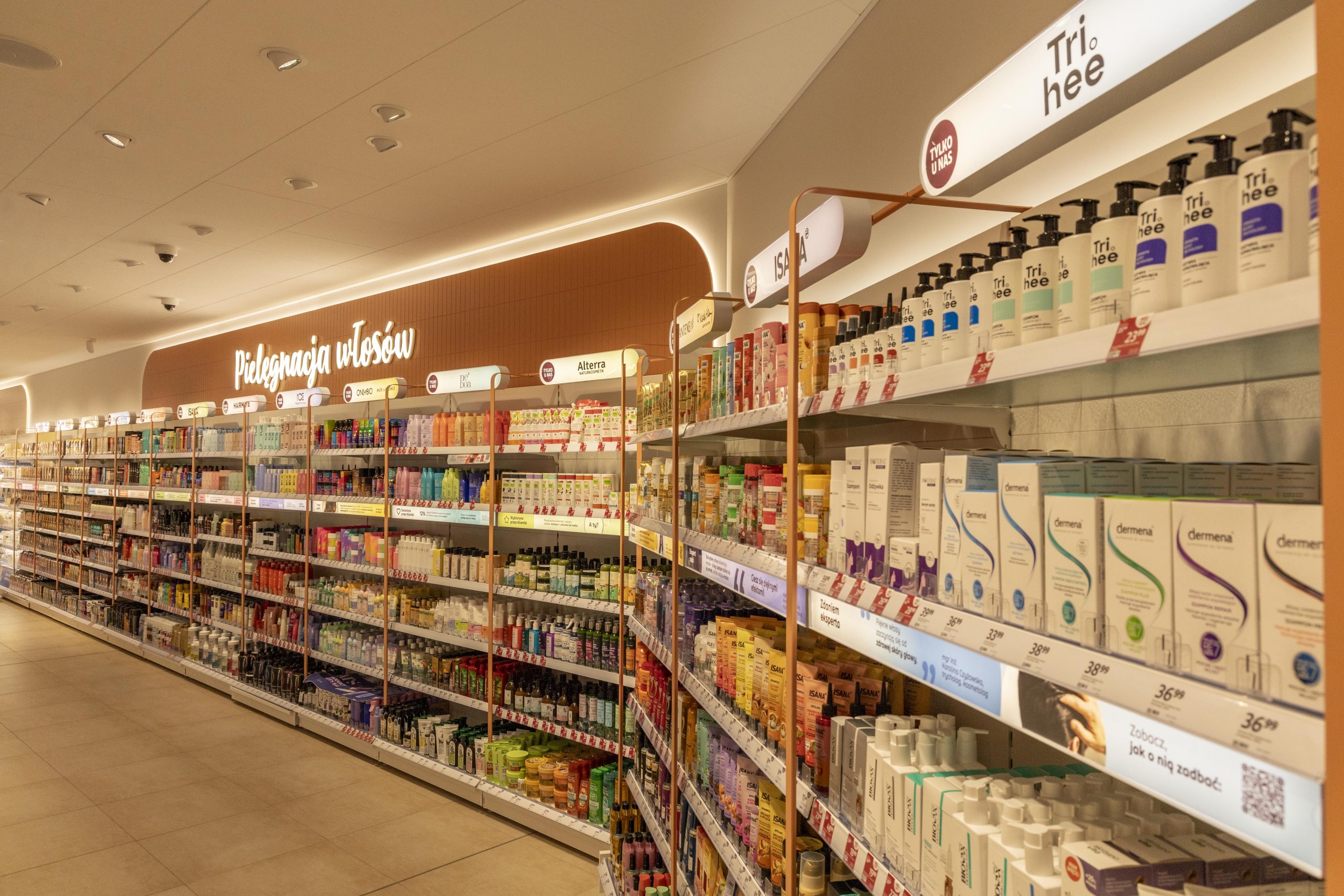 Duże i ważne zmiany zaszły w ekspozycji strategicznych dla nas kategorii, takich jak: pielęgnacja włosów i twarzy. W nich właśnie brandy stały się kotwicami, wokół których budujemy poszczególne kategorie i segmenty. Nad regałami tych kategorii pojawiły się kapsuły prezentujące power brandy – marki dostępne wyłącznie u nas, które są wizytówką poszczególnych segmentów i wspierają naszą strategię biznesową. Pod nimi umieściliśmy listwy contentowe, które mają klienta zainspirować i zaciekawić. Poniżej power brandu – w ramach tego samego regału – znajduje się pełna oferta uzupełniająca, koresponduje ona z całym segmentem i funkcjonalnością.