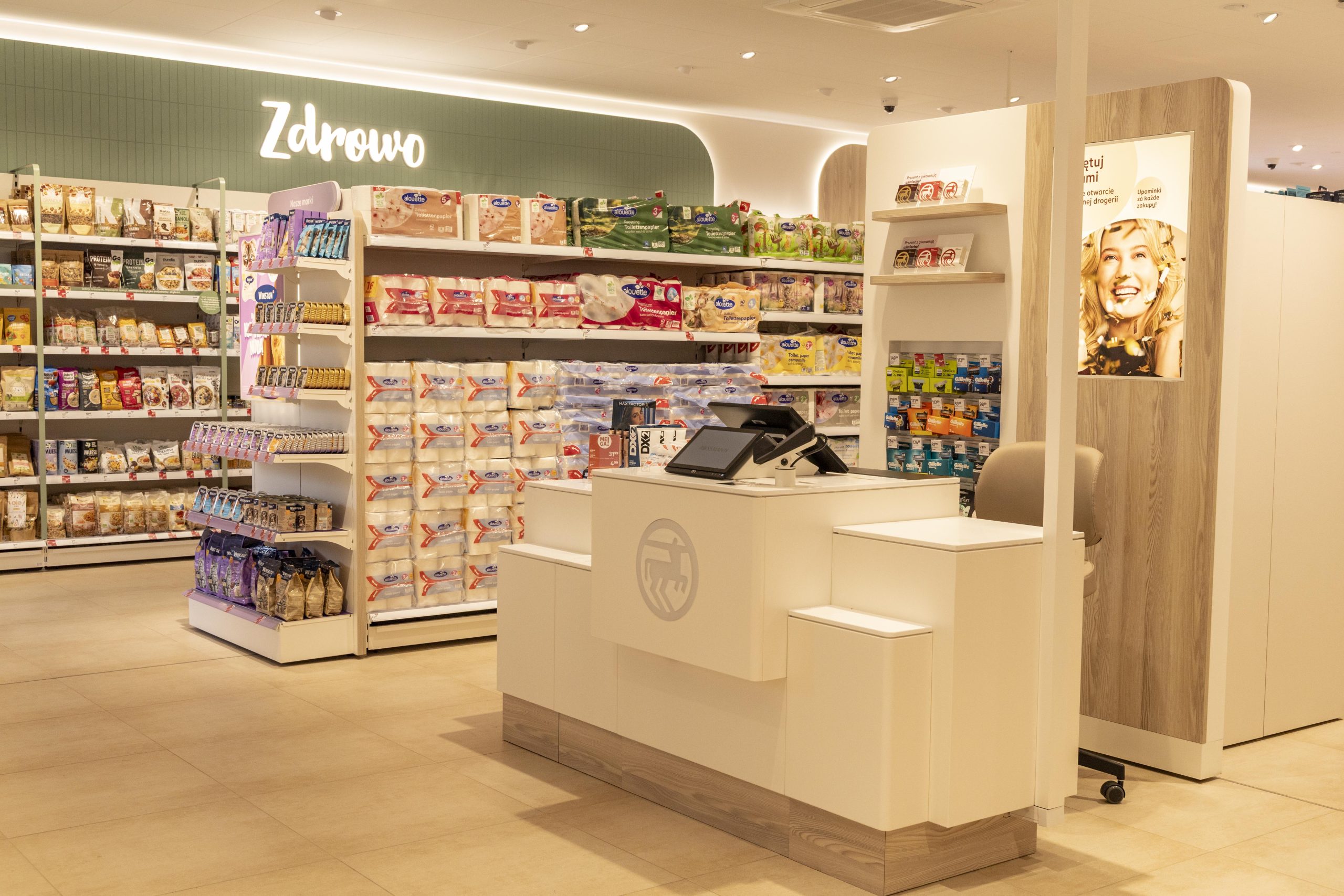 Drogeria w nowej odsłonie nie jest podzielona na poszczególne strefy czy kategorie. Jest jedną spójną całością.