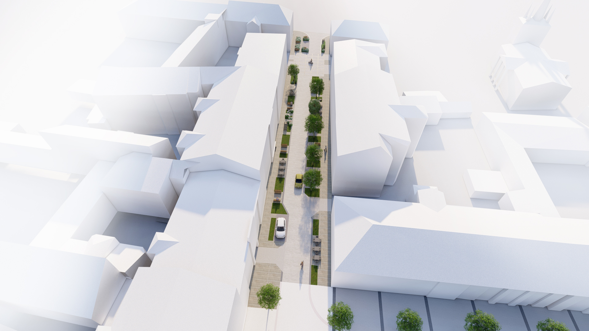 - Słowackiego– ulica zostanie wyposażona w obustronny chodnik oraz miejsca postojowe po lewej stronie. Przy skrzyżowaniu z ulicą Seminaryjską powstanie niewielki placyk – miejsce do odpoczynku i spotkań mieszkańców przyległych kamienic. Przy ulicy zostaną rozlokowane ławki i stojaki rowerowe.