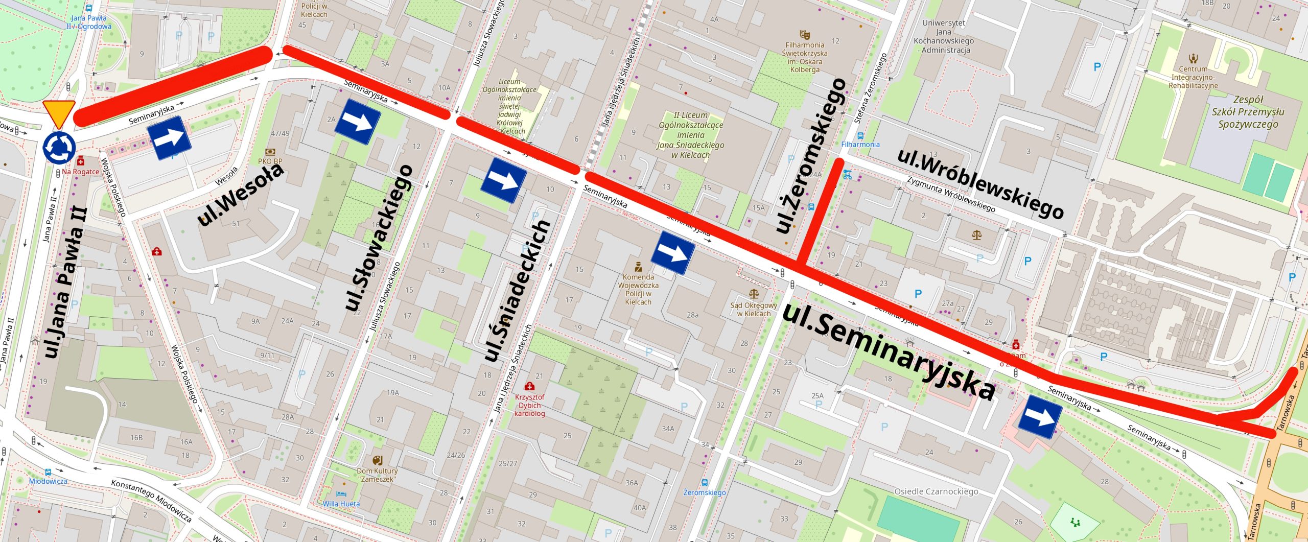 Miejski Zarząd Dróg informuje, że w I etapie prowadzenia inwestycji ul. Seminaryjska będzie ulicą jednokierunkową, od strony ul. Jana Pawła II i Ogrodowej do ul. Tarnowskiej.