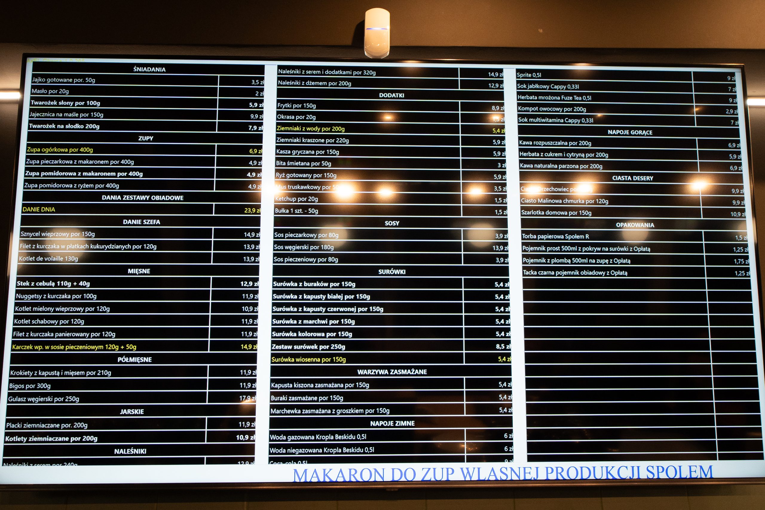 Klienci mogą liczyć na domowe jedzenie w atrakcyjnych cenach – zupy dostępne są już od 4,90 zł, a surówki kosztują 5,40 zł. W menu znajdziemy zarówno dania mięsne, jak i wegetariańskie, a także potrawy na słodko i słono. Od poniedziałku do piątku będzie można skorzystać z oferty dnia w cenie 23,90 zł.