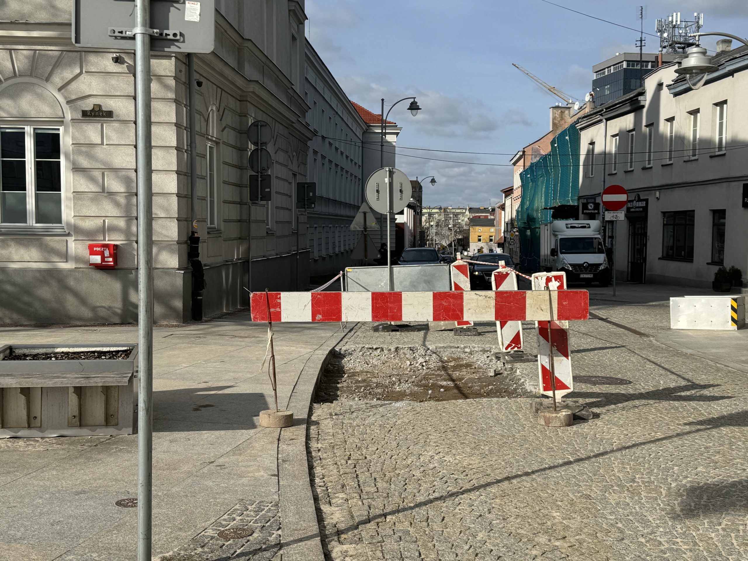 Roboty na Rynku w Kielcach potrwają do 24 lutego. W tym czasie wykonawca będzie zajmował połówki jezdni w taki sposób, aby zapewnić bezkolizyjny przejazd pojazdów. W sytuacjach awaryjnych możliwe jest wprowadzenie ręcznego sterowania ruchem. Zapewnione będą także dojścia do lokali i posesji przy działkach roboczych.