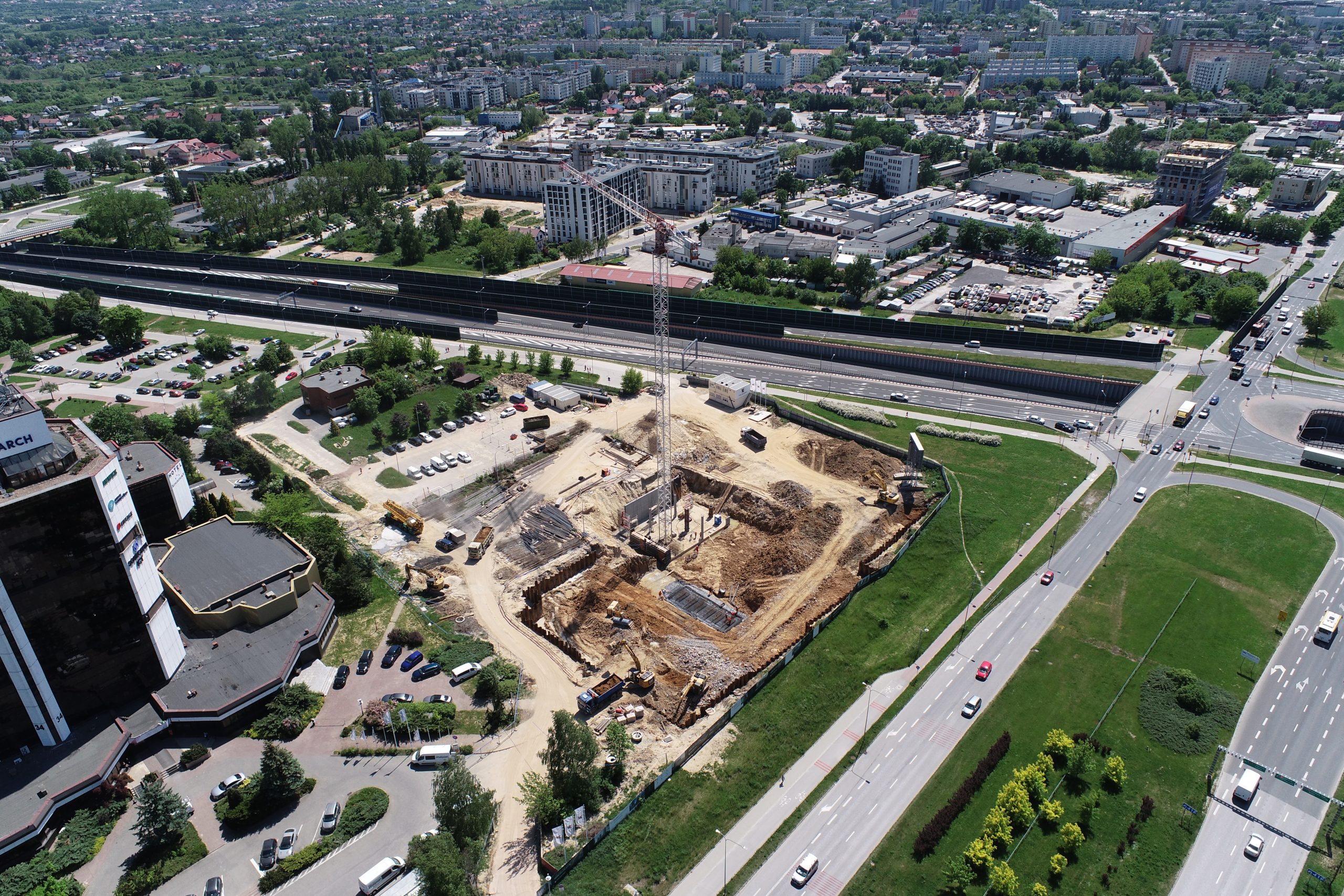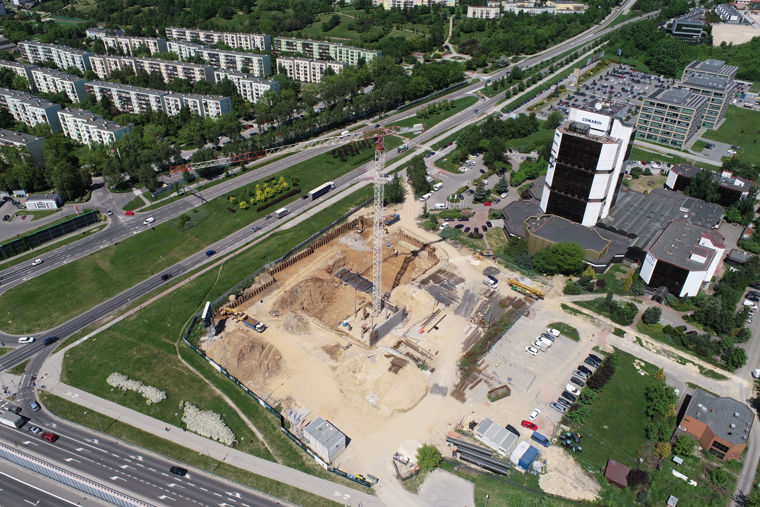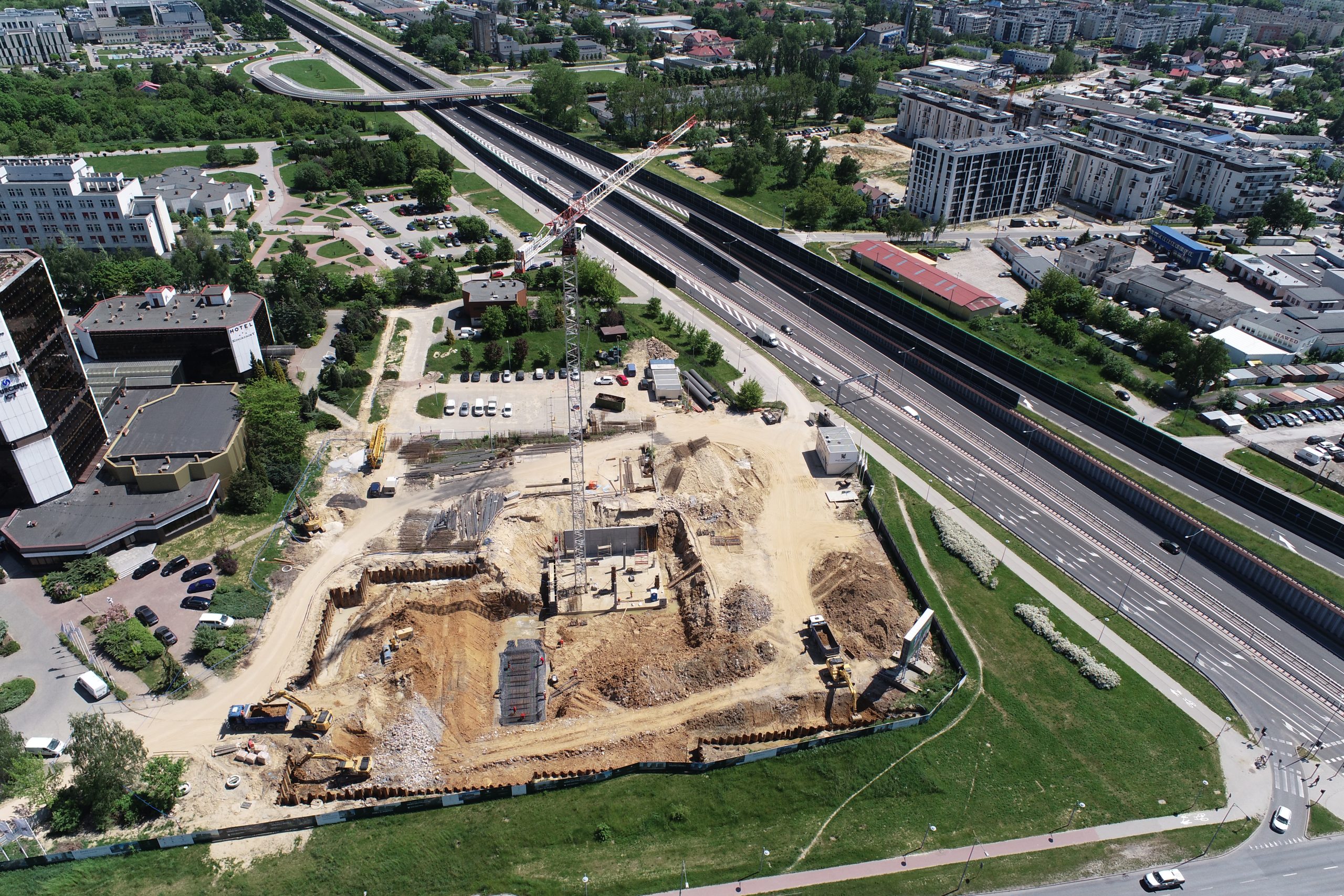 Prace nad jednym z 17 – kondygnacyjnych budynków wchodzą w zaawansowany etap. – Pracujemy obecnie nad płytą garażową. Rosną ściany przy tej płycie, więc w okolicach września i października powinniśmy rozpocząć prace nad budową pierwszej kondygnacji. Wtedy gołym okiem będziemy widzieć, że budynek zaczyna rosnąć – informuje Patryk Barucha, prezes Trust Investment.