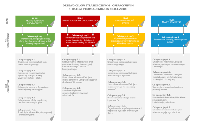 „Strategia promocji Miasta Kielce 2030+” ma pełnić rolę drogowskazu dla wszelkich działań miasta związanych z jego promocją. Dokument zawiera m.in. założenia Nowej Marki Kielc, która została zbudowana w oparciu o unikalne walory miasta, takie jak bliskość przyrody, uwarunkowania geologiczne, osiągnięcia sportowe oraz potencjał Targów Kielce w połączeniu z ofertą kulturalną, edukacyjną i gospodarczą.