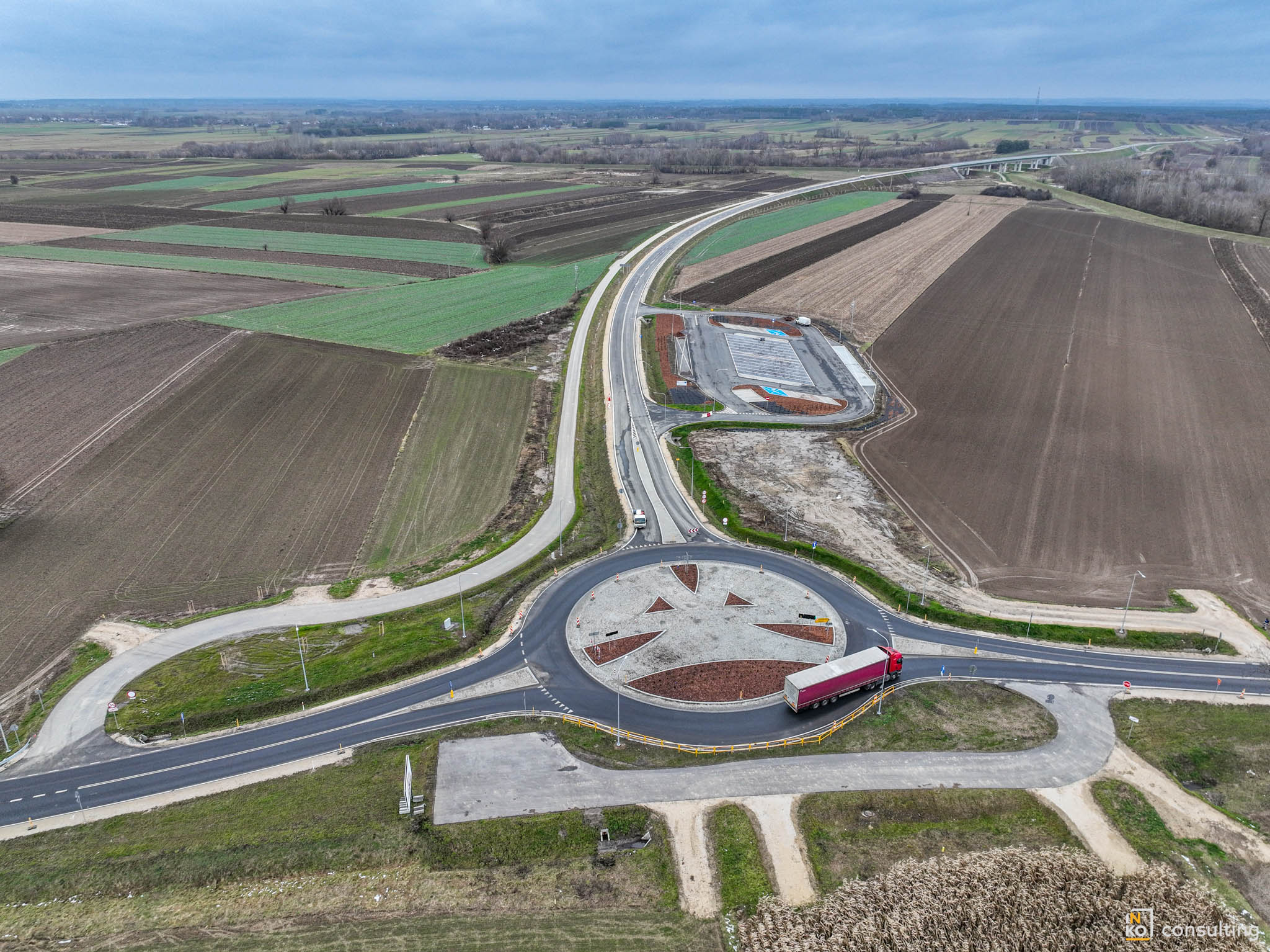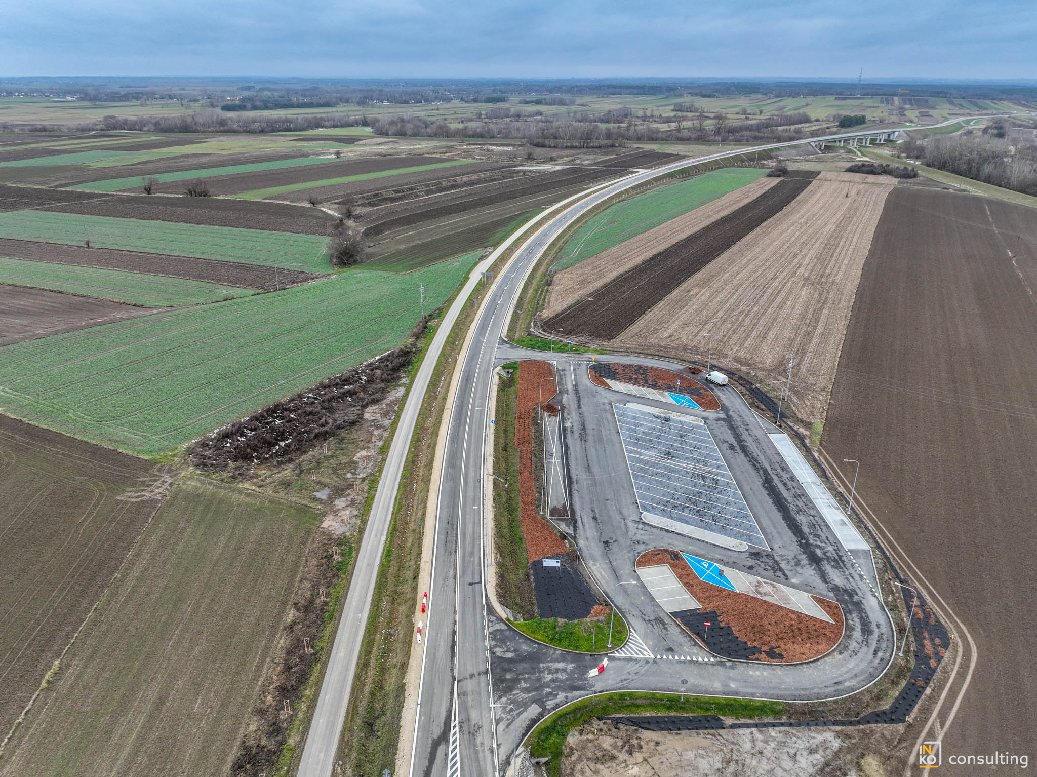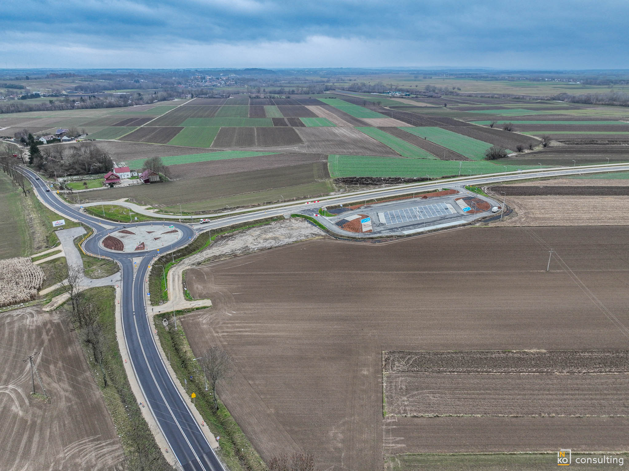 W ramach inwestycji powstał również parking z miejscem do kontroli i ważenia samochodów ciężarowych. Inwestycję realizowało konsorcjum firm Mirbud s.a. i Kobylarnia s.a. Prace trwały od 1 stycznia 2024.