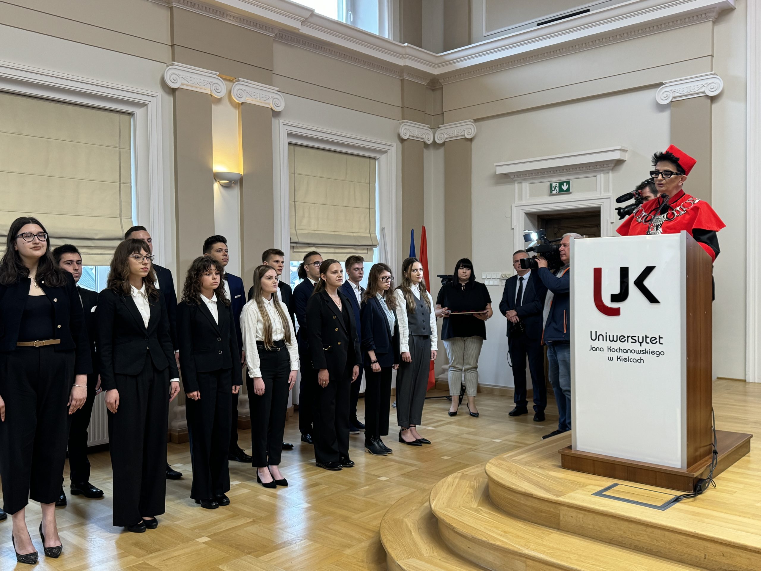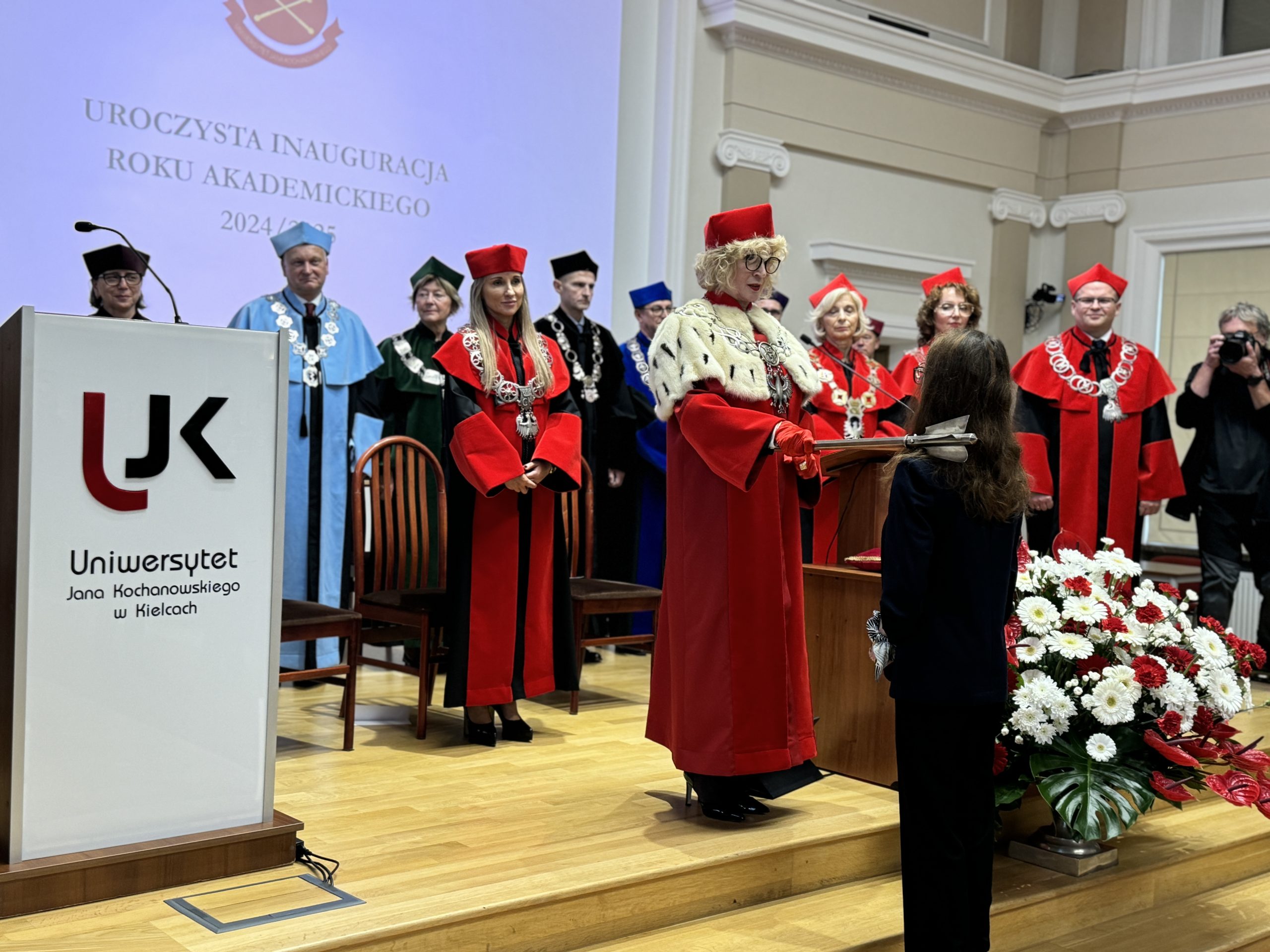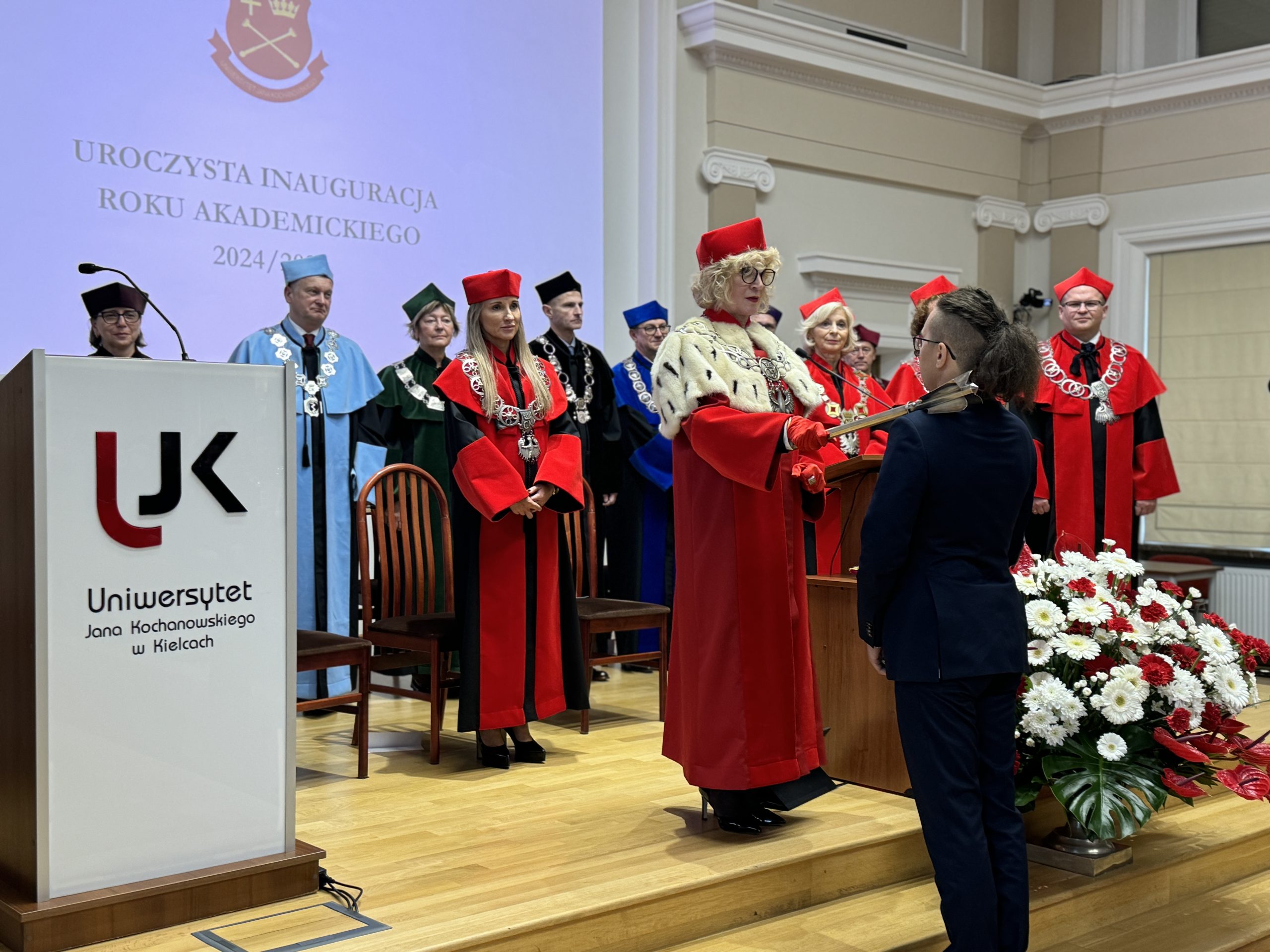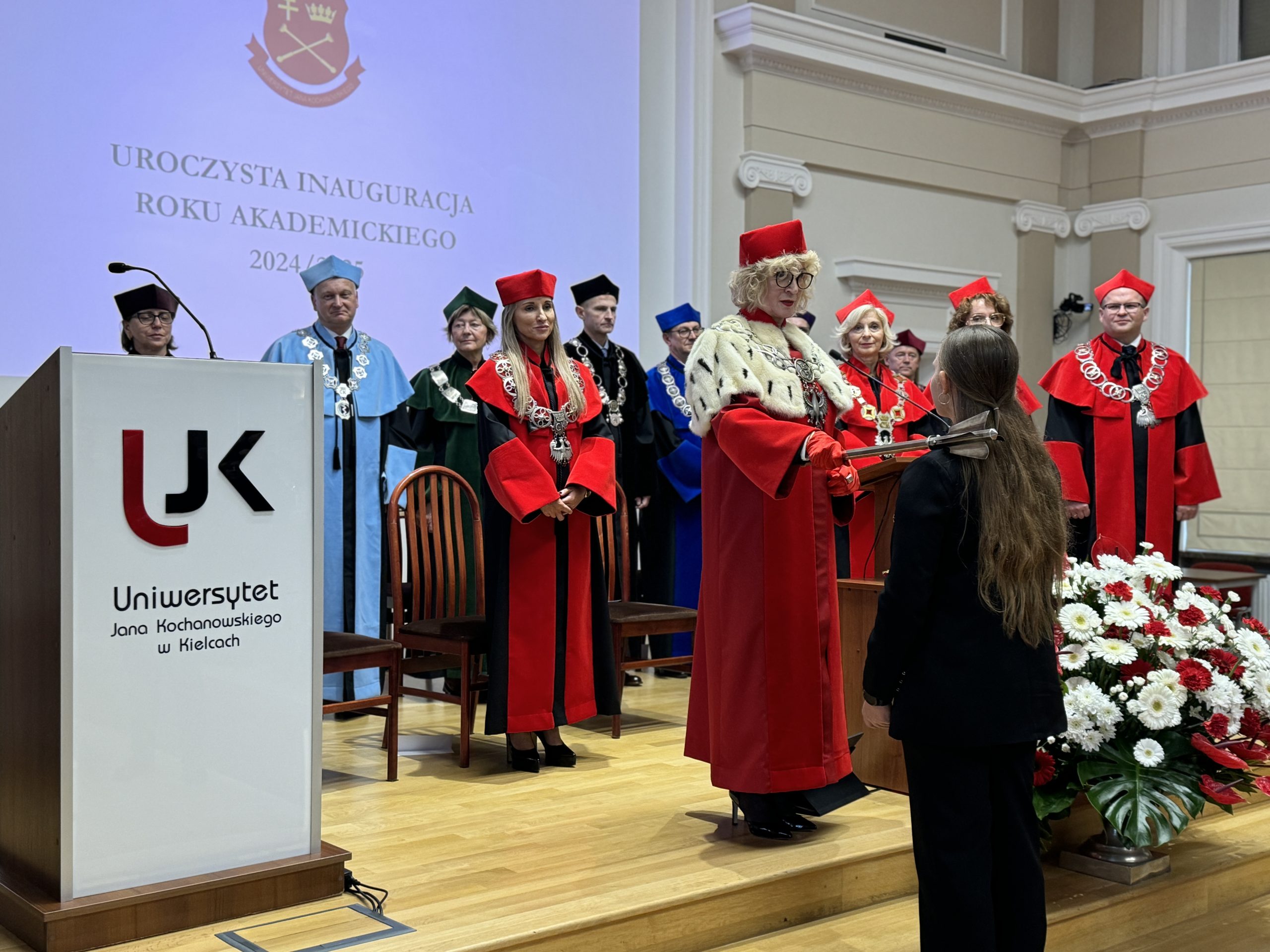 „Zależy nam na tym, abyście mieli poczucie bezpieczeństwa, przynależności do naszej wspólnoty akademickiej, wykorzystali szerokie możliwości własnego rozwoju, wzmacniali świadomość dobrze wypełnianych obowiązków, a także wpływu na rzeczywistość” – podkreśliła rektor UJK.