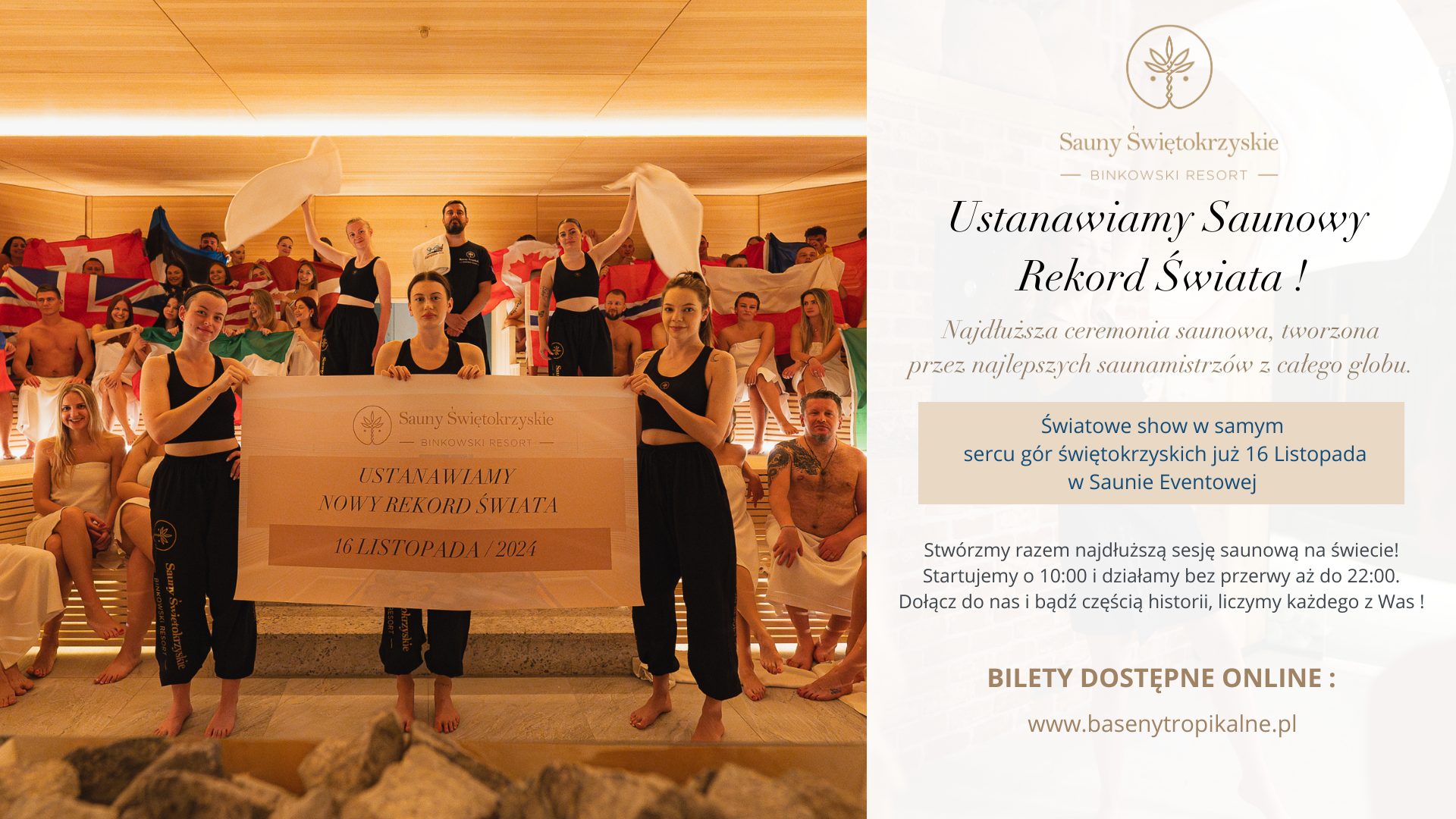 16 listopada w Binkowski Resort w Kielcach zostanie ustanowiony rekord świata w najdłuższej ceremonii saunowej. Do stolicy świętokrzyskiego przyjadą wybitni saunamistrzowie z zagranicy. Przedstawiamy szczegóły tego wyjątkowego wydarzenia.