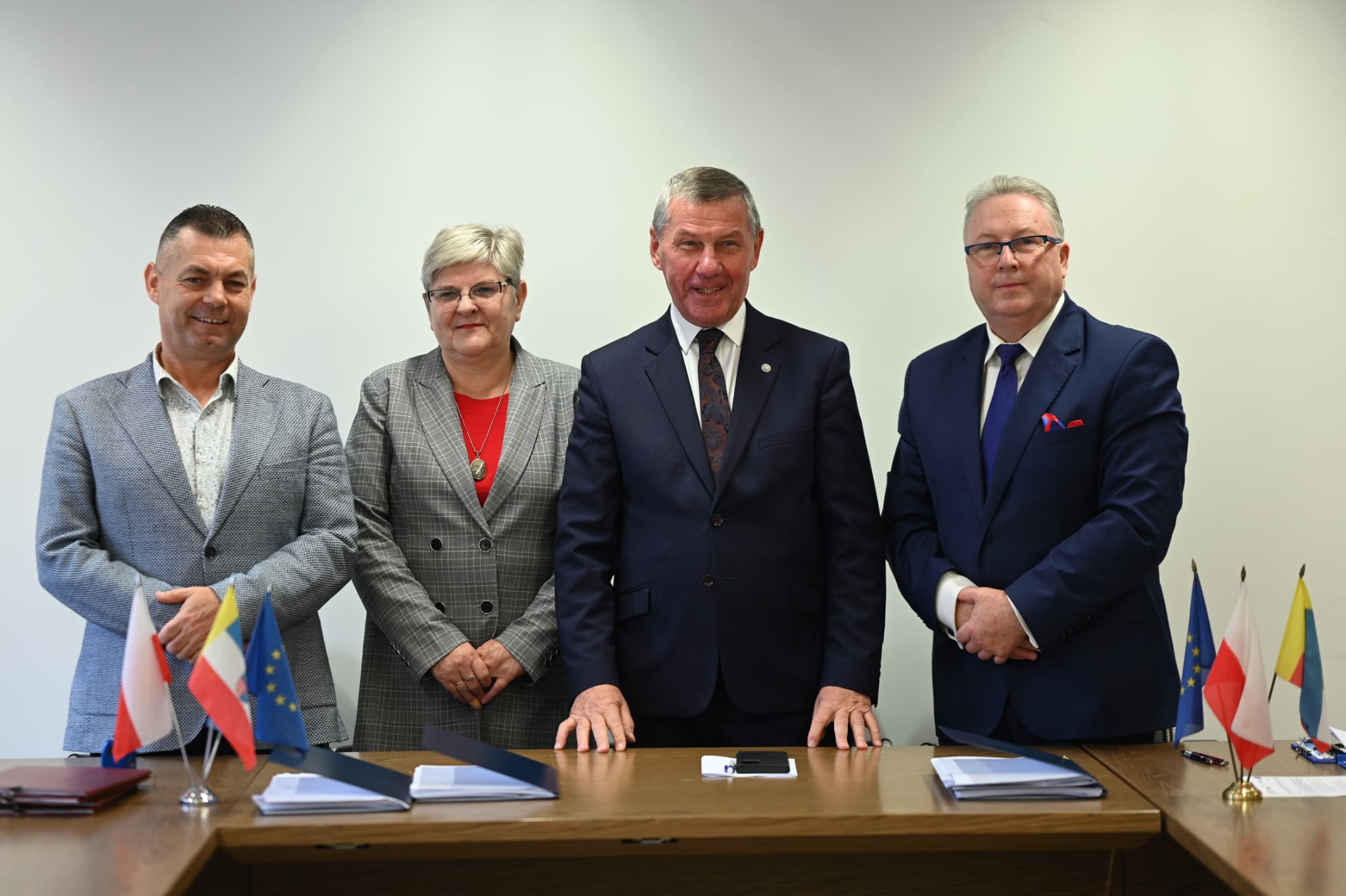 Na zdjęciu od lewej: Mirosław Cieplak – Prezes Zarządu TRAKWEDUKT, Krystyna Wiorek – Właścicielka Zakładu Obsługi Inwestycji EKO INWEST oraz Prezes Wodociągów Kieleckich Henryk Milcarz i Dyrektor ds. Ekonomicznych Władysław Karol Jacewicz.