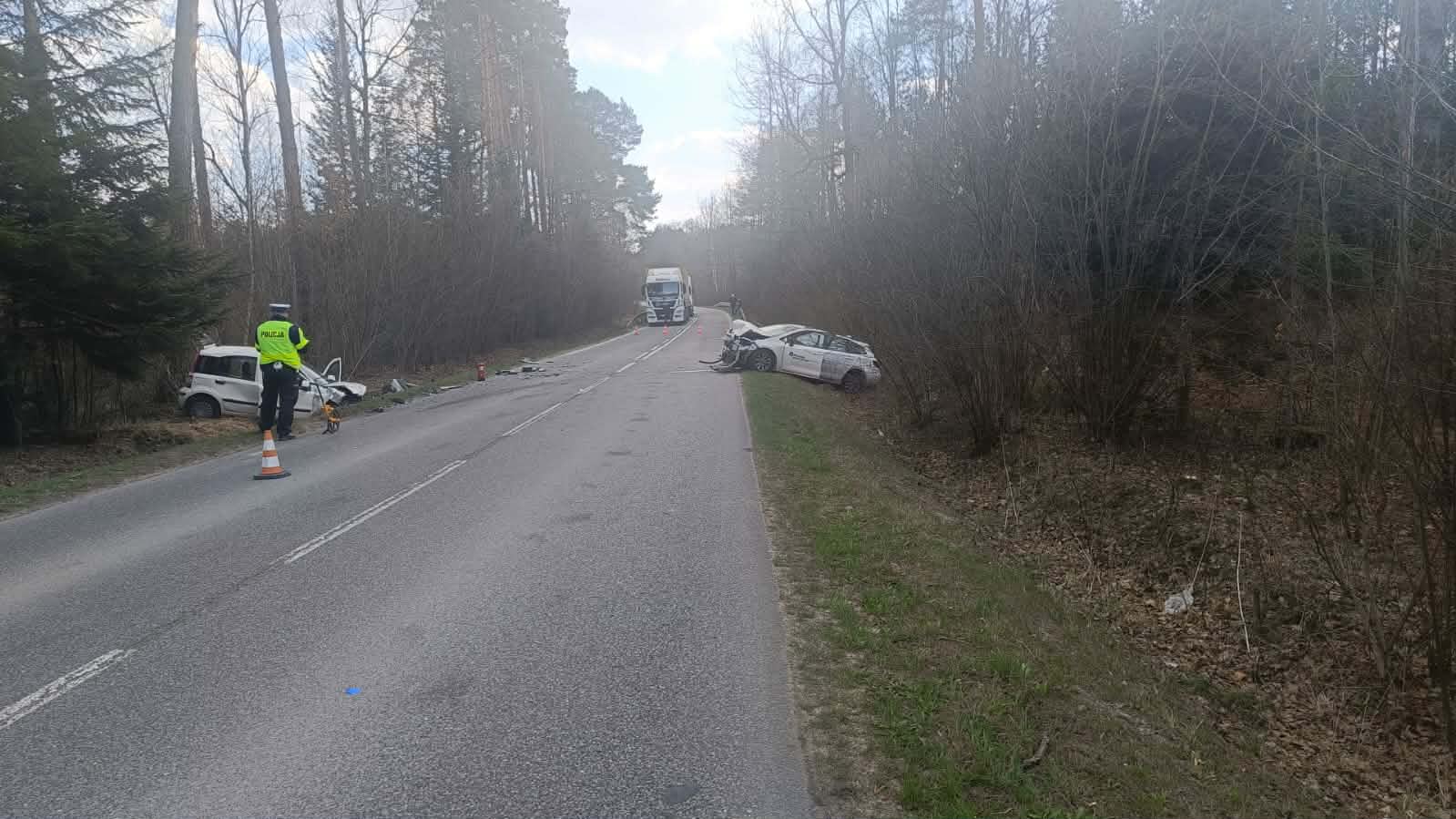 Zderzenie dwóch pojazdów na odcinku leśnym, pomiędzy miejscowościami Szczecno i Borków. Wypadek rozegrał się w piątek po godzinie 13, a do szpitala trafiły dwie osoby. Na miejscu pojawiło się Lotnicze Pogotowie Ratunkowe.