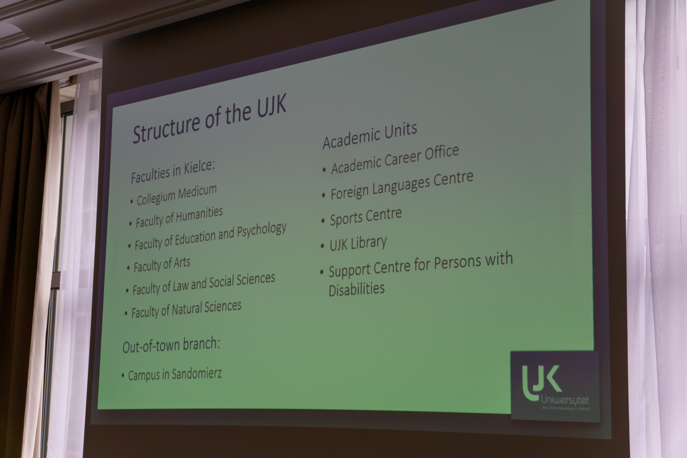 Piotr Burda, rzecznik prasowy UJK, podkreśla, że w imieniu gospodarzy uczestników powitał prof. dr. hab. Stanisław Głuszek, rektor uniwersytetu. Następnie o zaletach kieleckiej uczelni opowiedziała Kinga Koziarska z Biura Rektora.