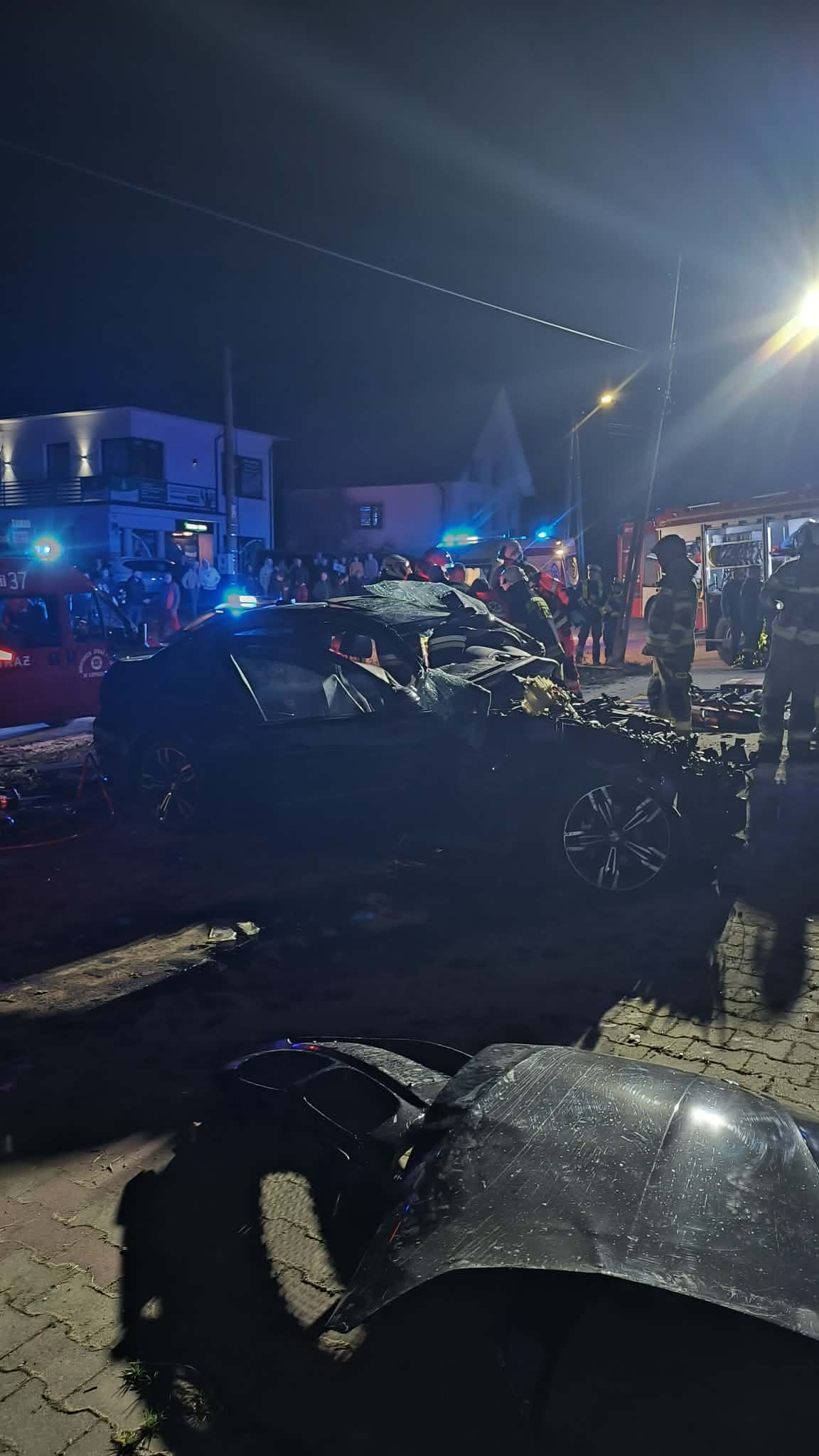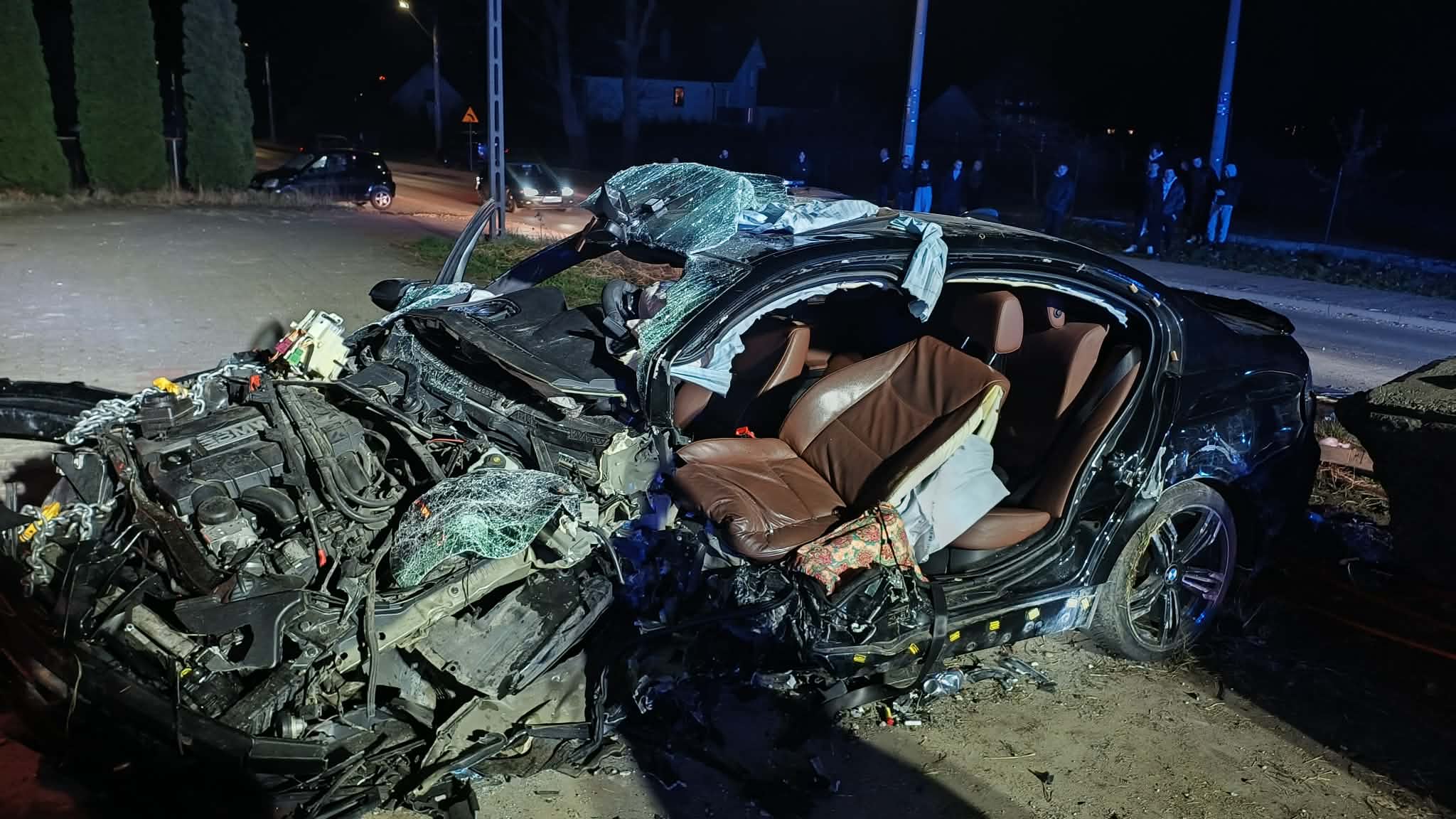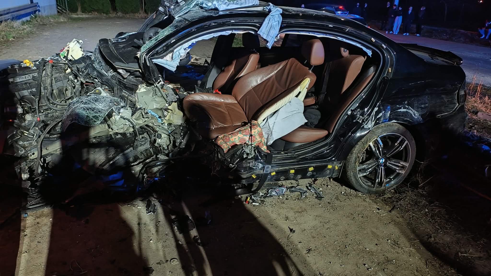 BMW, którym jechało trzech młodych mężczyzn, zderzyło się ze stojącym na poboczu osobowym peugeotem. Wewnątrz drugiego auta nie było nikogo. – Pojazdy po zderzeniu stały na kołach na poboczu. Dwie osoby z BMW same z niego wysiadły, ale kierowca został uwięziony w pojeździe – informuje straż pożarna. Wszyscy mężczyźni z pierwszego auta trafili do szpitala.
