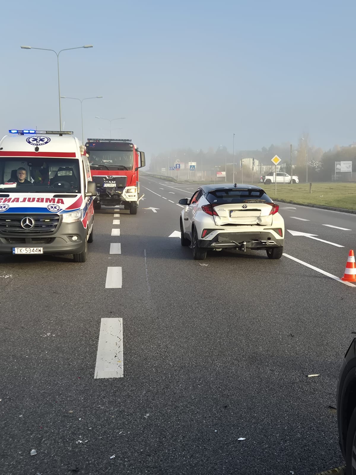 Na ulicy Ściegiennego, na pasie w kierunku centrum, doszło do zdarzenia drogowego z udziałem trzech pojazdów. Do szpitala trafiła 18 – letnia kierująca pojazdem marki toyota, a także 9 – letnia pasażerka z innego auta.