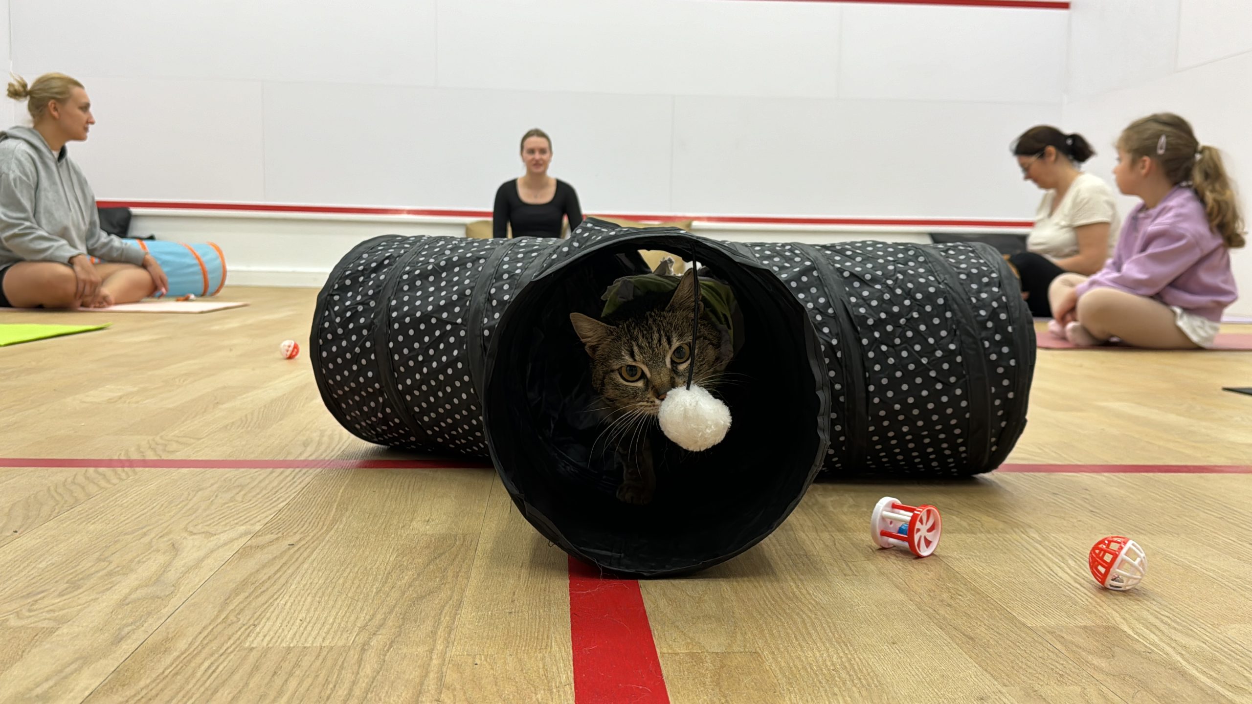 Zajęcia podzielone są na 2 części. Przez pierwsze 30 minut trwa cisza, a uczestnicy podążają za instrukcjami obecnej na sali joginki. W tym czasie zwierzaki swobodnie przemieszczają się między matami i przyzwyczajają do obecności człowieka. Po zakończeniu medytacji rozpoczyna się 15 minut zabaw z czworonogami.