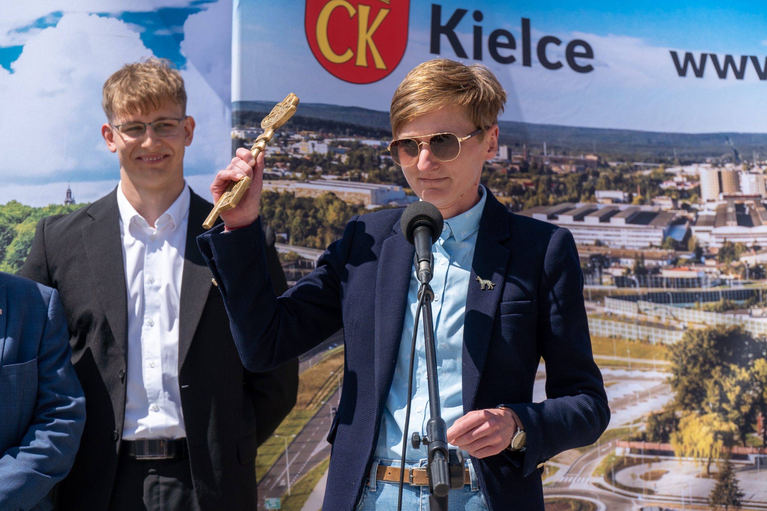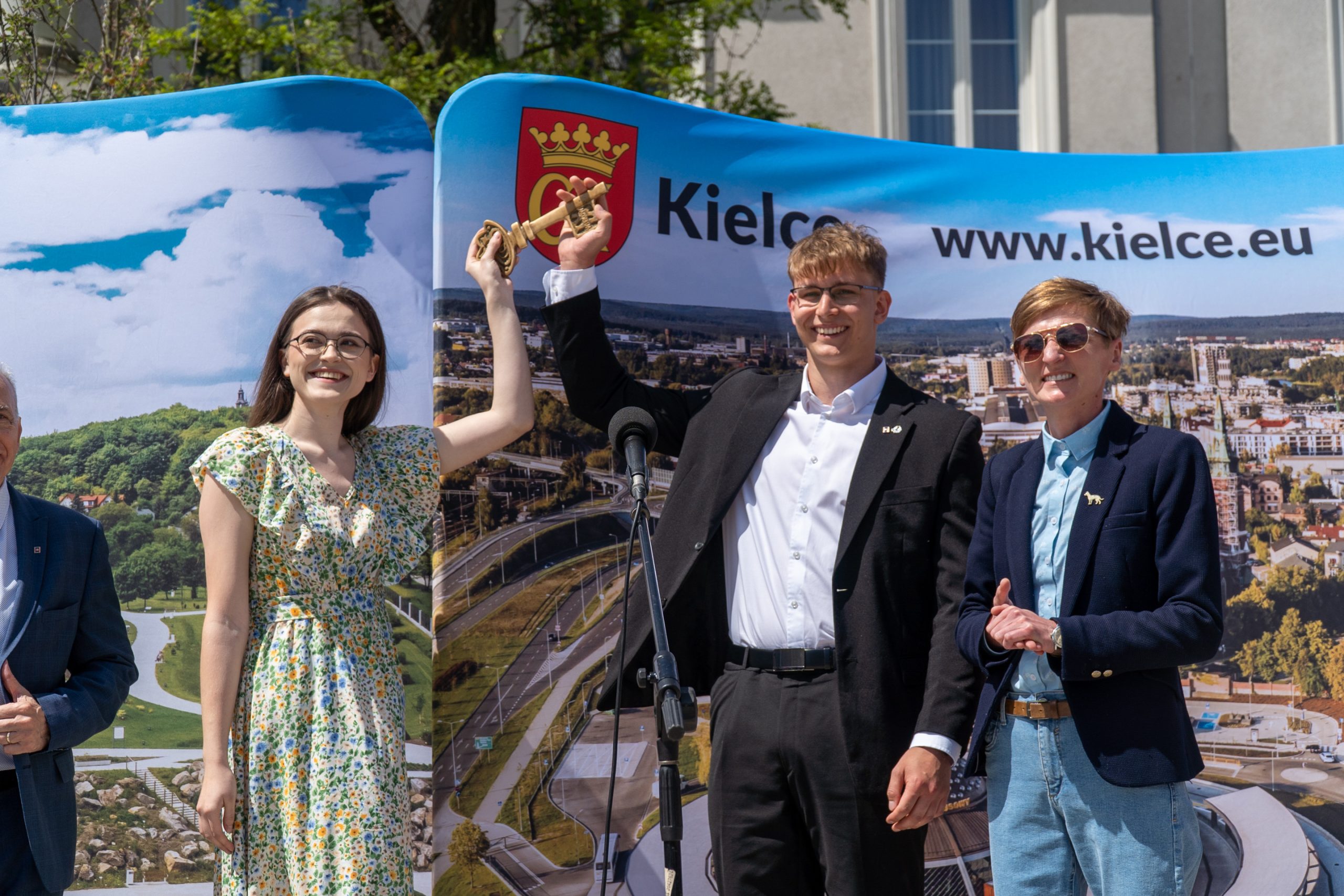 Klucze do Miasta od prezydentki Kielc Agaty Wojdy odebrali przewodniczący studenckich samorządów Sylwia Nawrot z UJK i Adrian Resztak z PŚk.