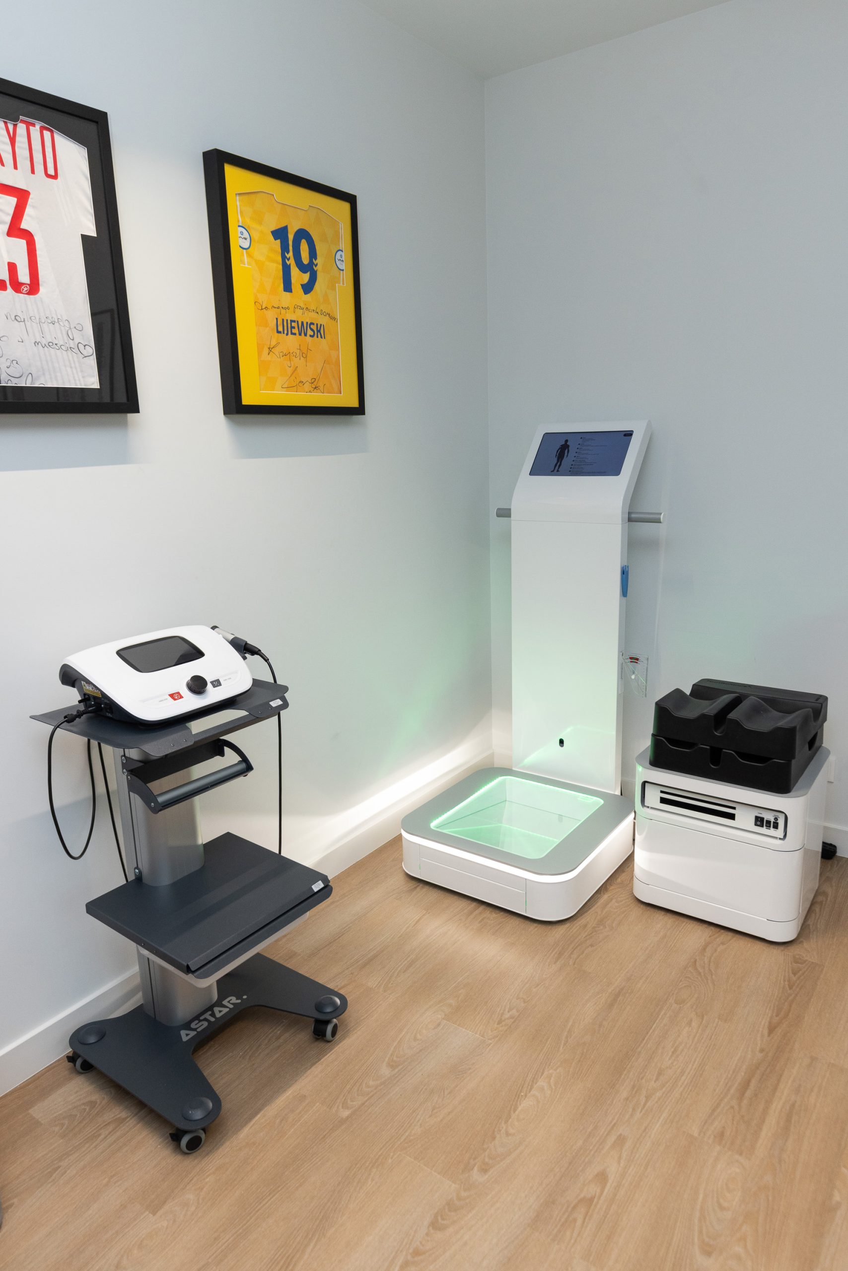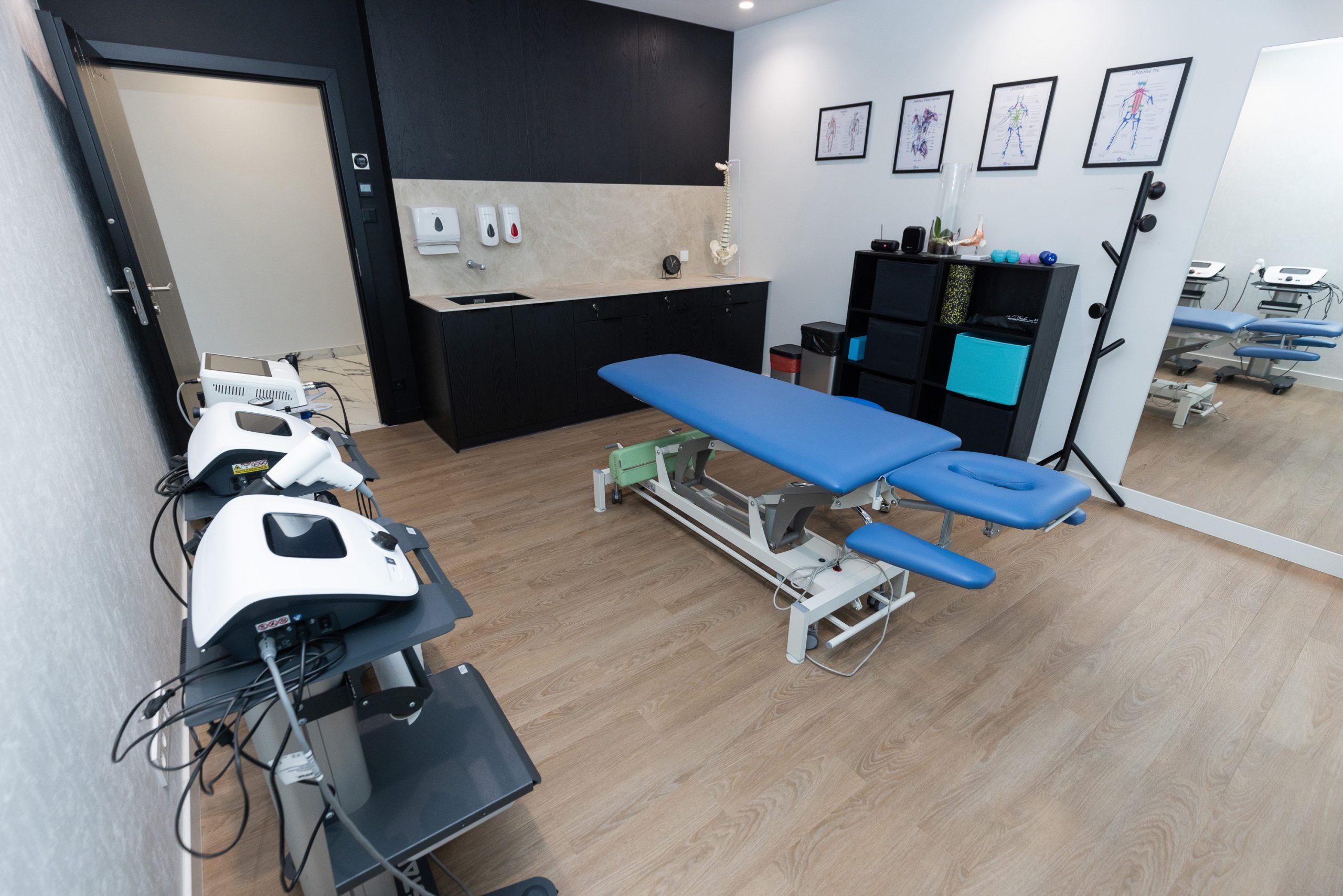 Gabinet został wyposażony w najnowszy sprzęt, umożliwiający prowadzenie terapii na najwyższym poziomie. Kuźnia Zdrowia nawiązała również współpracę z uznanymi partnerami: Mizuno, Footbalance oraz Fly Sky, aby zapewniać dostęp do innowacyjnych rozwiązań wspierających proces rehabilitacji i treningu.