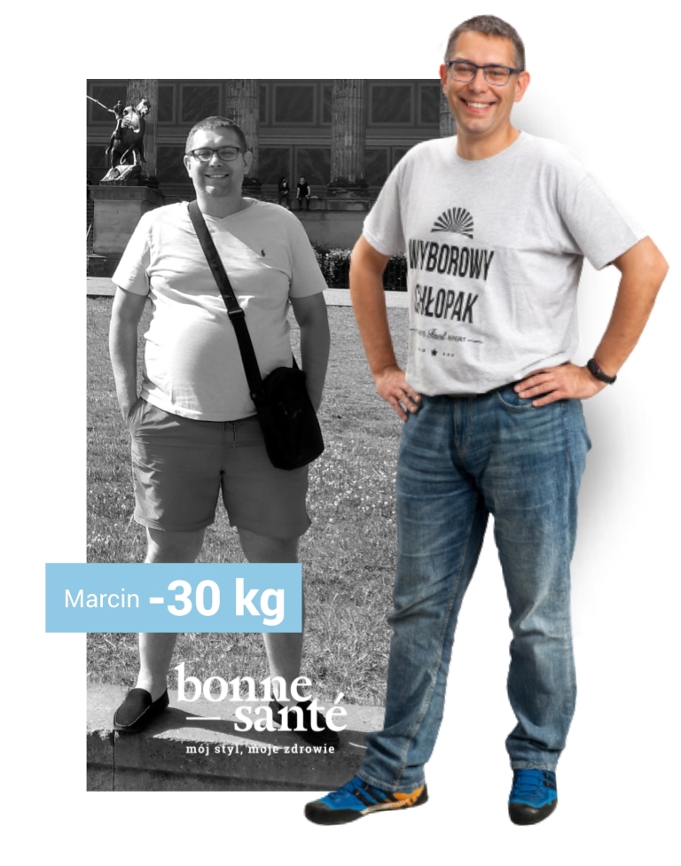 Pan Marcin może być świetną inspiracją dla osób, które zastanawiają się czy warto dążyć do wymarzonej sylwetki. „Bez wątpienia dużą motywacją dla pana Marcina były widoczne gołym okiem efekty diety, które pozwoliły na osiągnięcie absolutnego sukcesu. Cała przemiana pod moim okiem trwała 9 miesięcy. W tym czasie udało się zgubić 25,5kg. Mimo tego, że pan Marcin od kilku miesięcy nie jest już pod moją opieką nadal świetnie sobie radzi i samodzielnie zgubił kolejne 4,5kg. Kuracja w Bonne Santé to nie tylko odchudzanie, to przede wszystkim edukacja żywieniowa rozłożona w czasie, która pomaga wypracować zdrowe nawyki na całe życie.” – mówi dietetyk Anna Pięta.